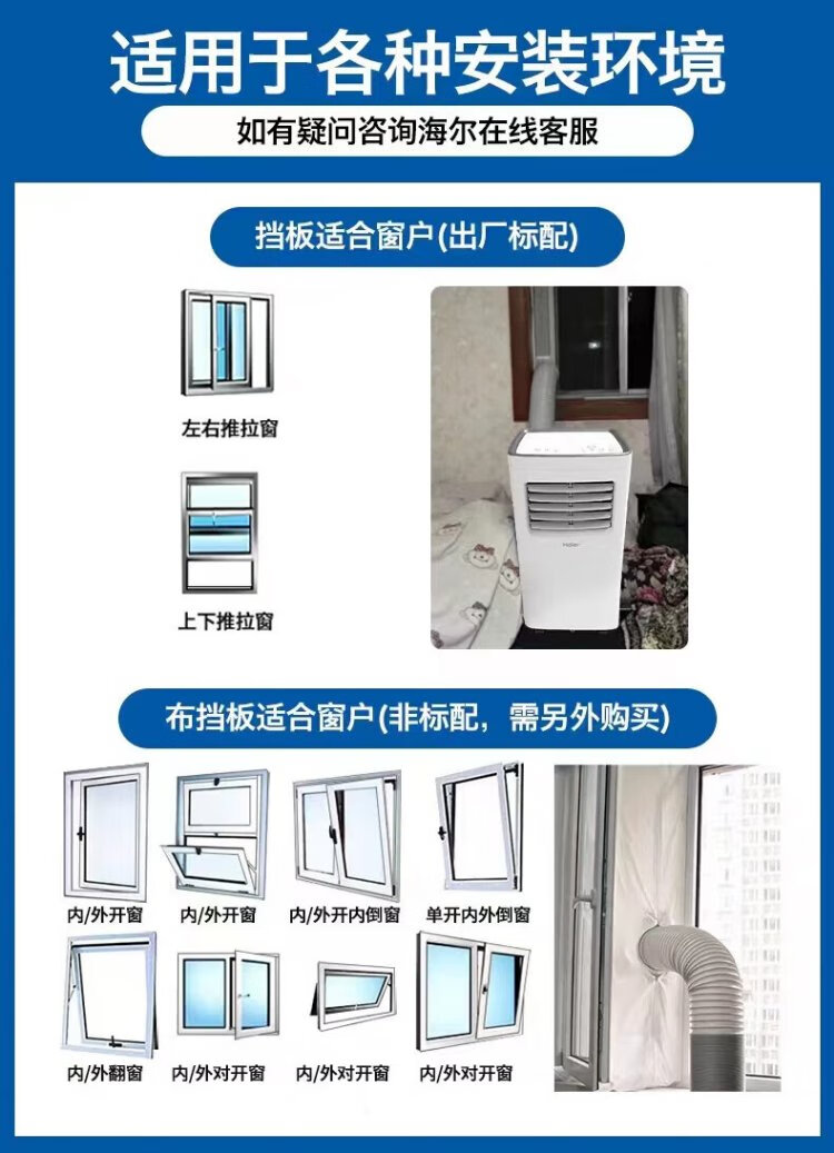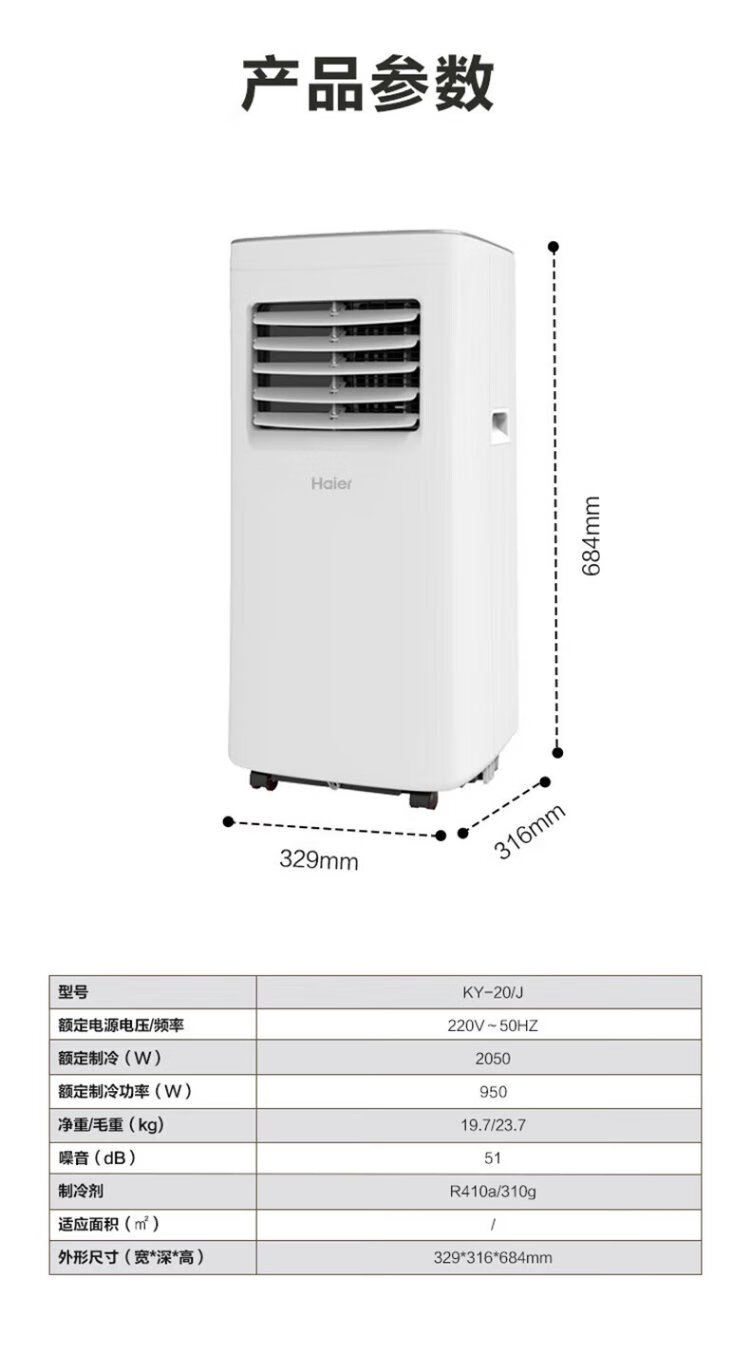 Haier mobile air conditioner large 1 HP single cooling movable air conditioner all-in-one machine without outdoor unit installation-free dormitory kitchen rental living room small air conditioner KY-20/J