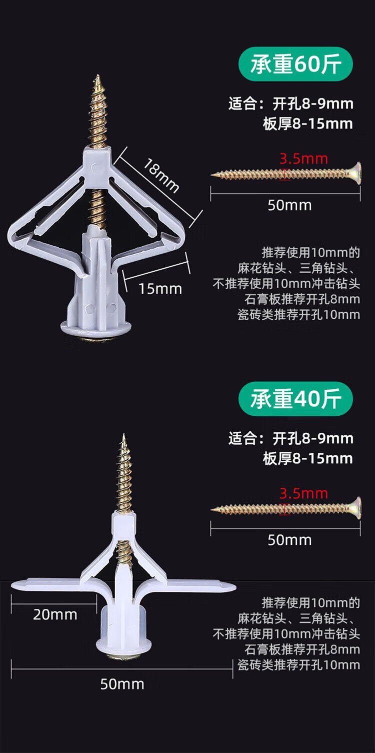 Beifote butterfly type expansion screw self-tapping screw bolt expansion tube gypsum board hollow board wall plug butterfly type expansion screw