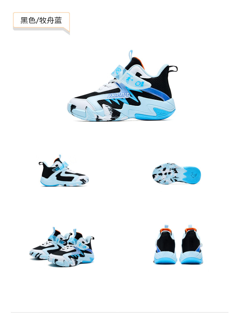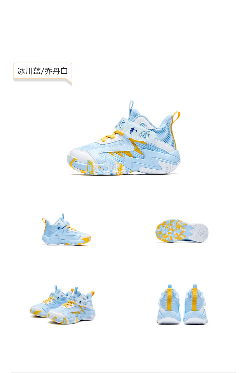 Jordan children's basketball shoes children's spring and autumn sports shoes boys' dense mesh training children's shoes Glacier Blue/Jordan White 28