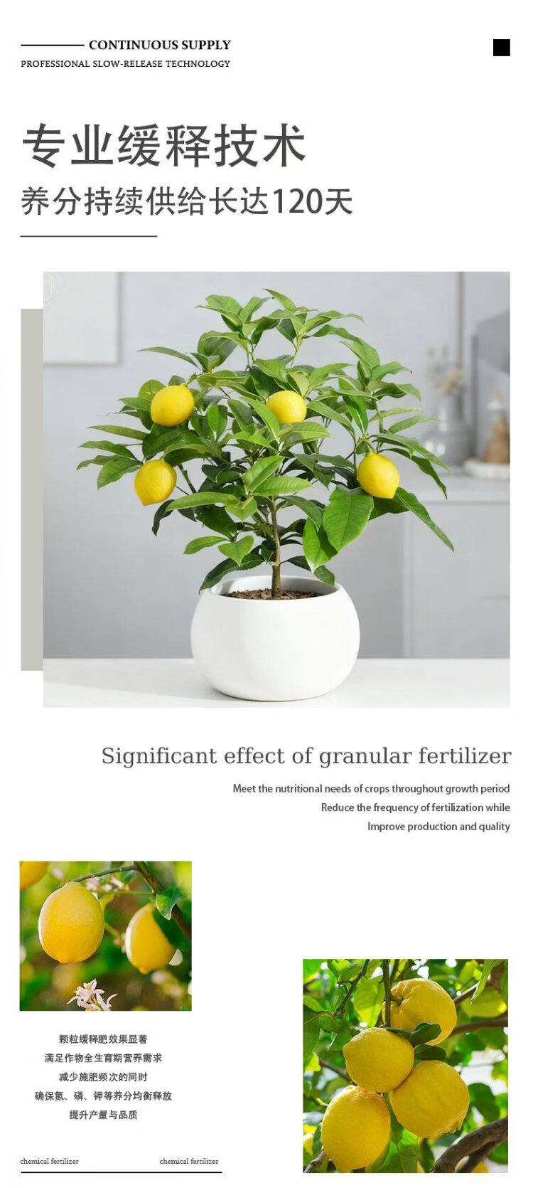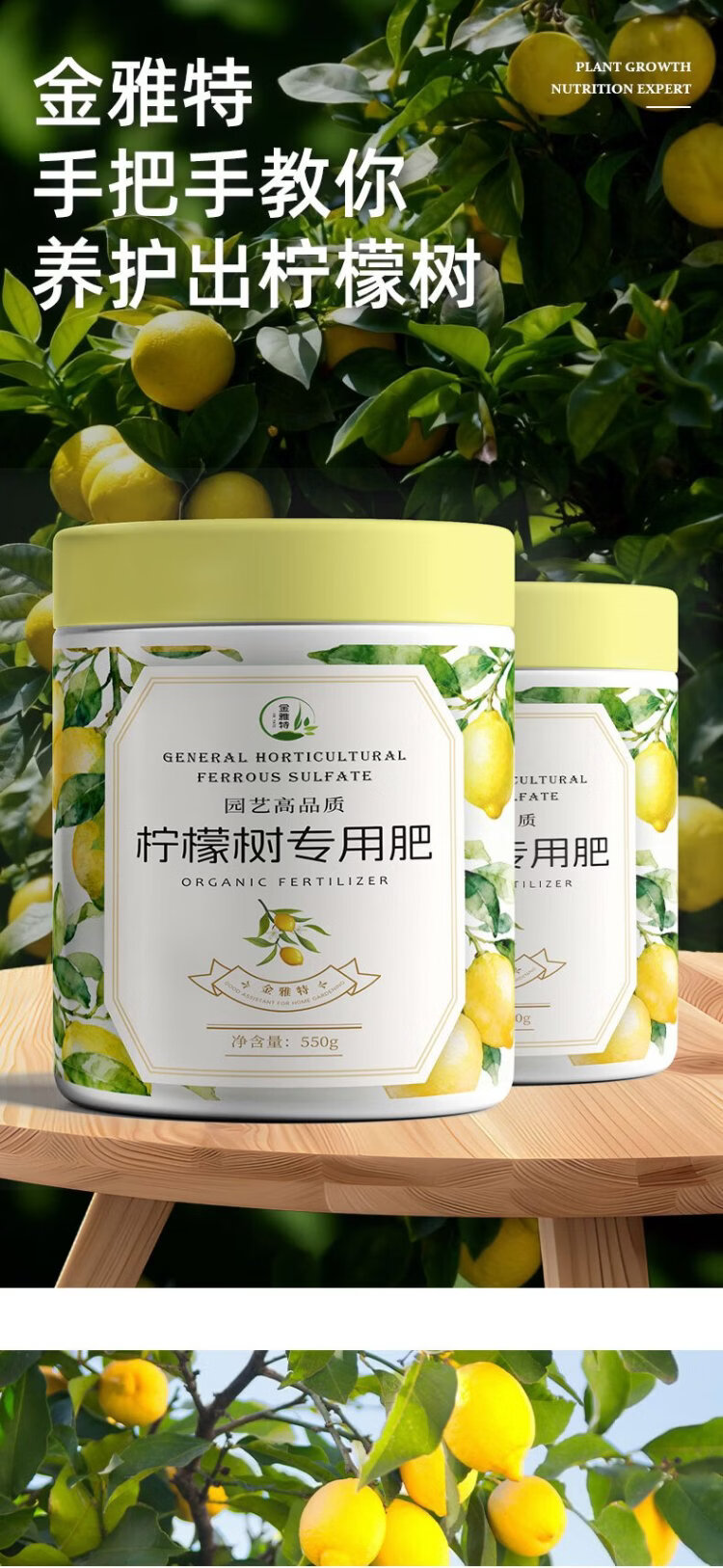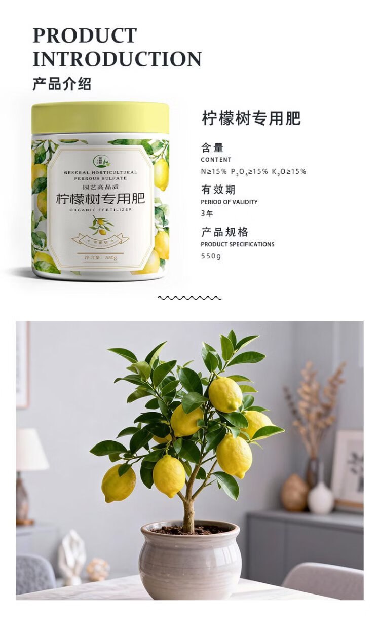 Jinyate lemon tree special fertilizer nitrogen, phosphorus and potassium ternary compound fertilizer to prevent yellow leaves household green plant potted slow-release fertilizer 550g