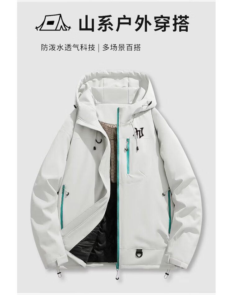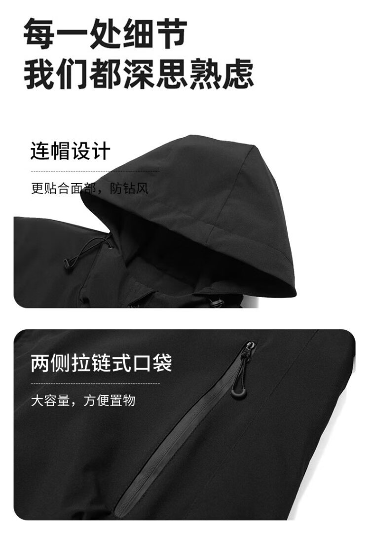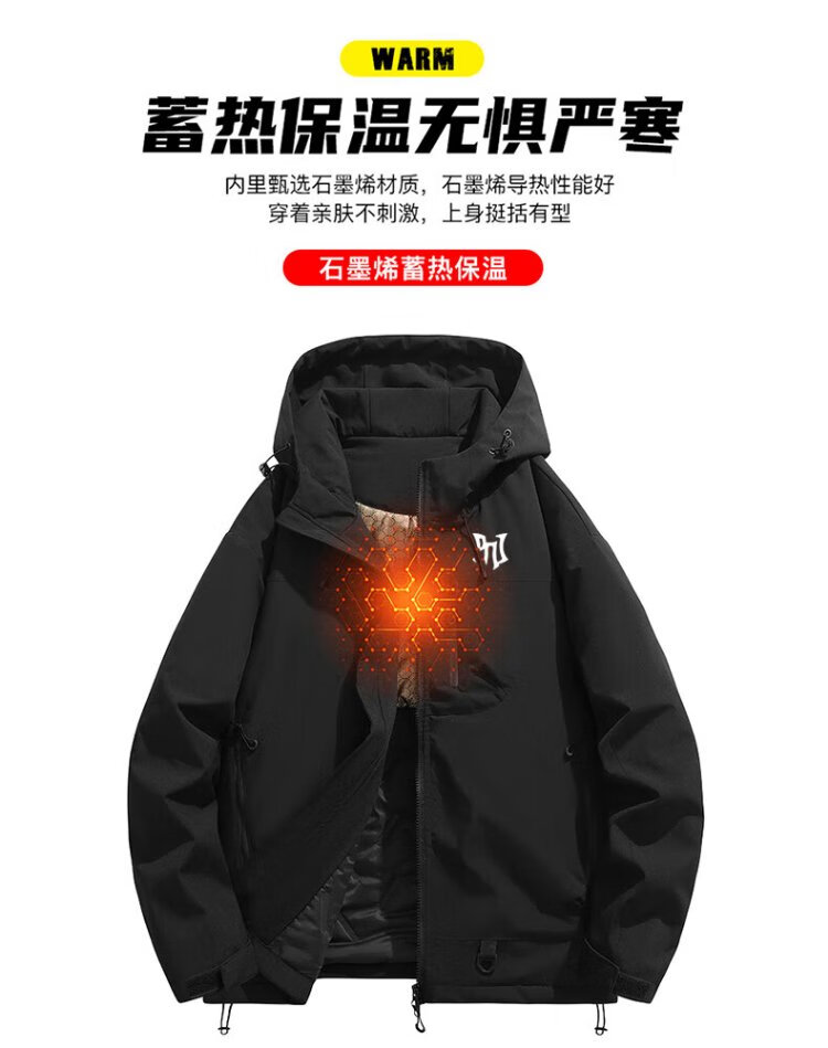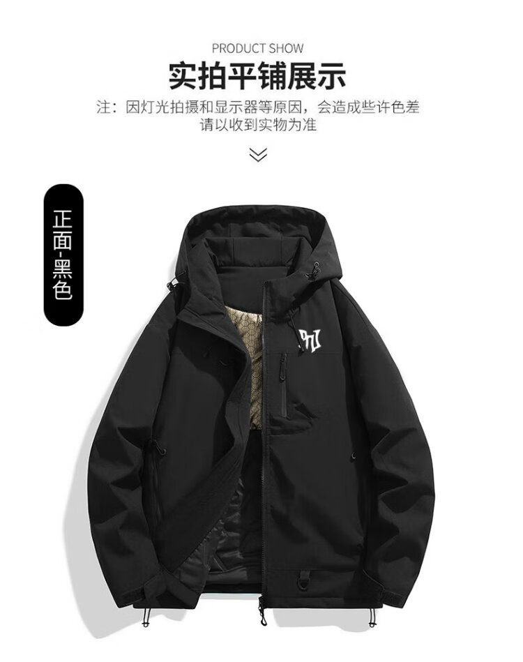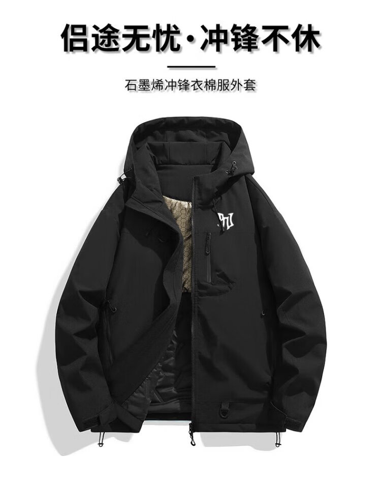 PNJ cotton jacket for men in autumn and winter, warm and windproof cotton jacket, outdoor casual jacket, black 3XL