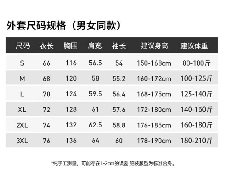 China (cm) 160-165/84-86 165-170 / 88-90 167-172 / 92-96 168-173 / 98-102 170-176 / 106-110