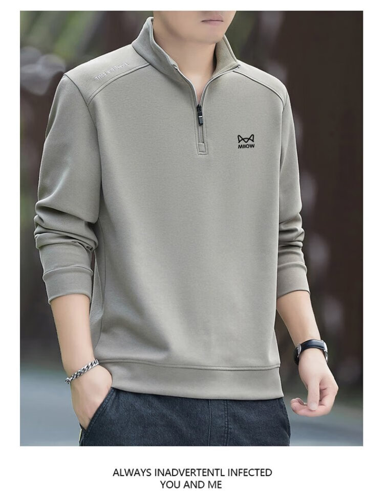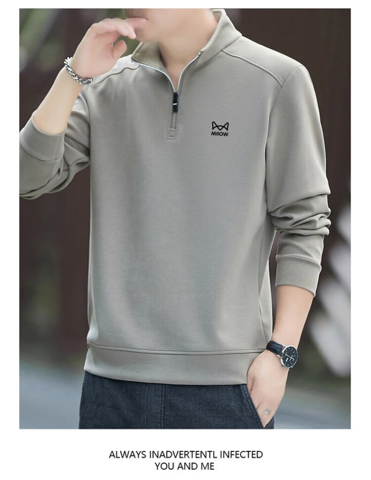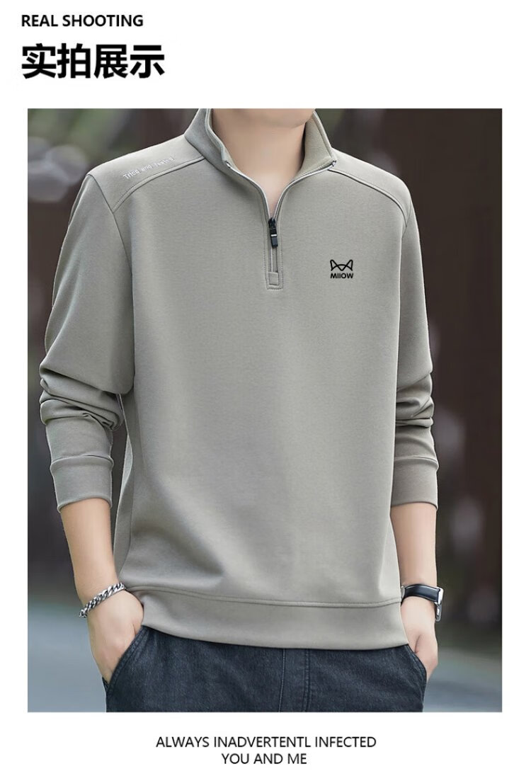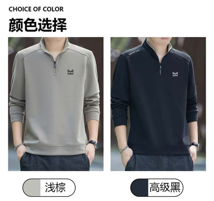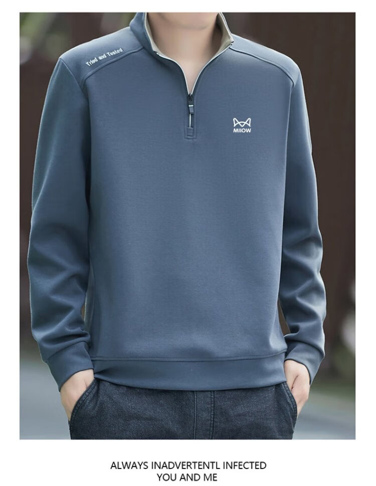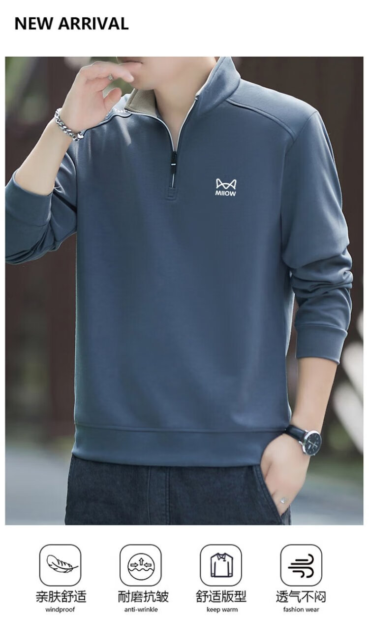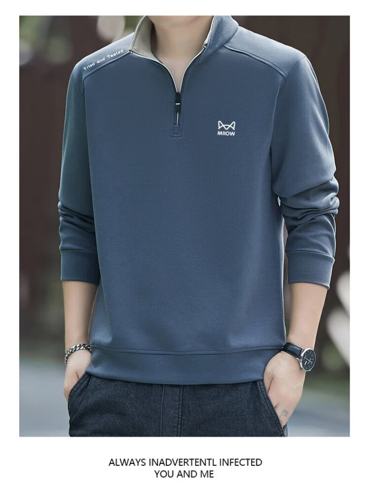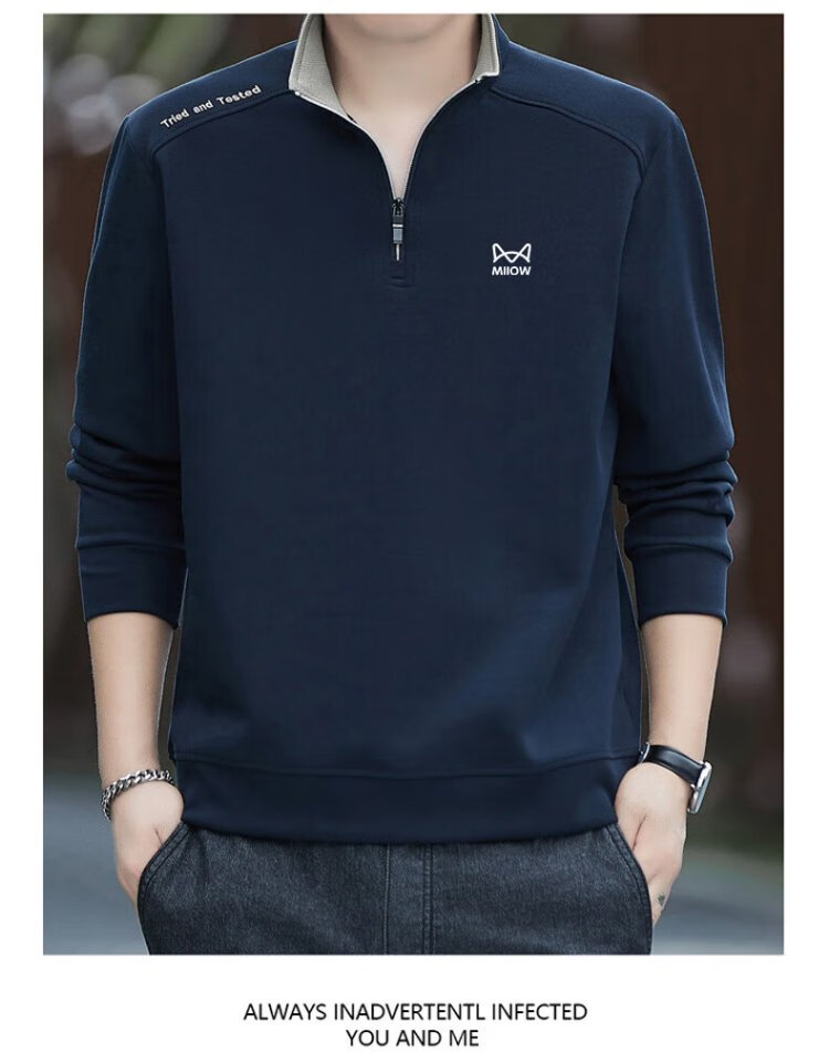 Catman Sweatshirt Men's Autumn and Winter Plus Velvet Warm Trendy Half Open Collar Large Size Casual Top Navy Blue 3XL