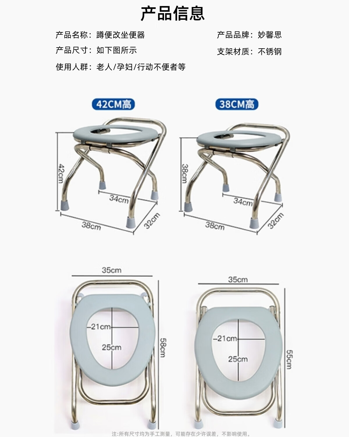 Miaoxinsi simple folding mobile toilet for the elderly, squatting toilet, elderly pregnant women sitting on the toilet, toilet chair and toilet stool