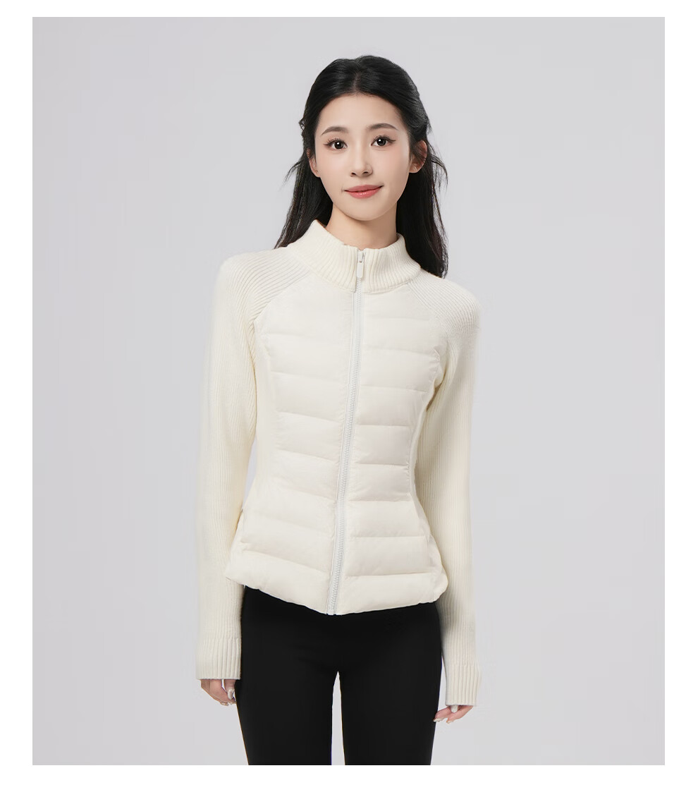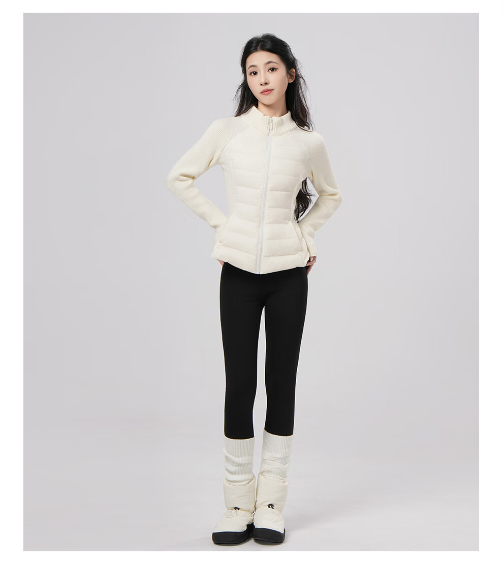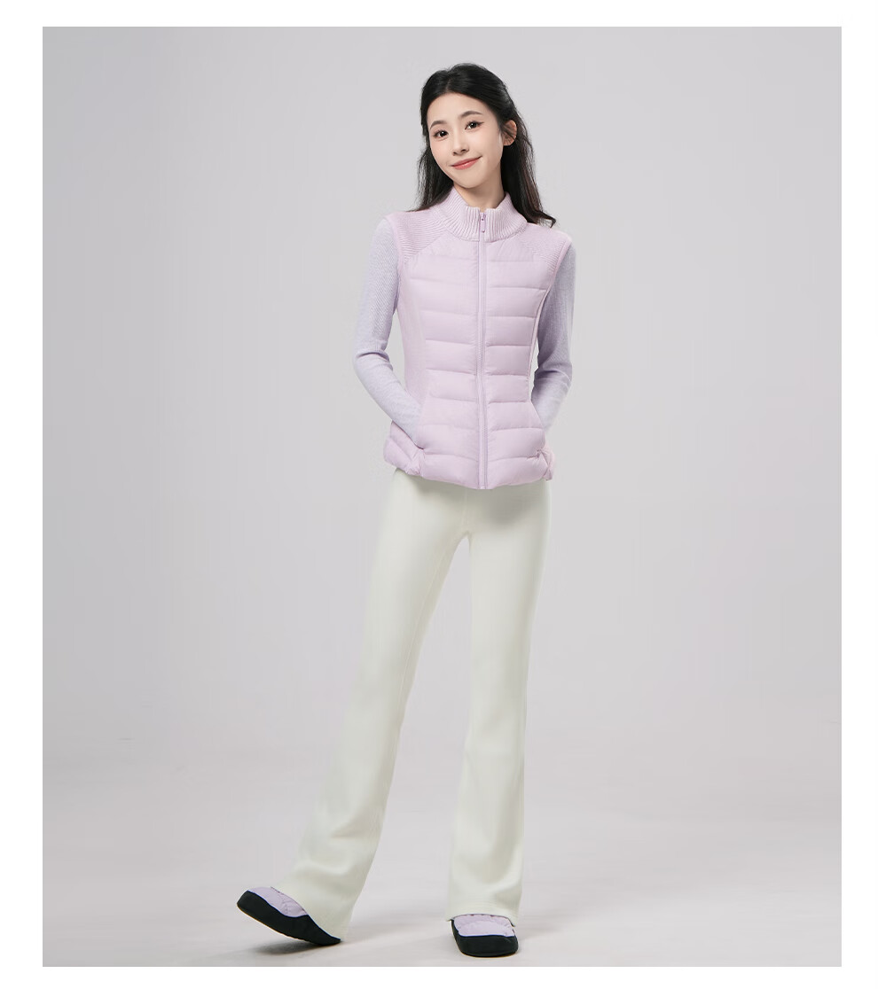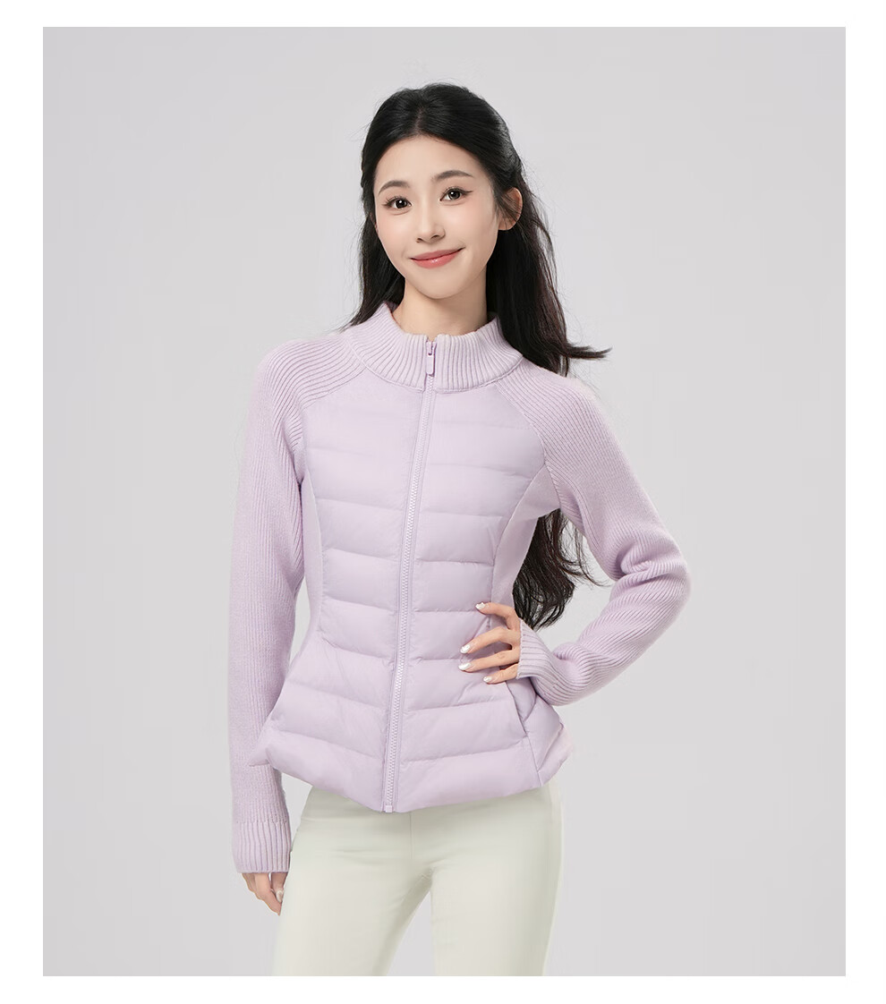 Aiwugo Dance Wear Winter Ballet Practice Wear Women's White Duck Down Knitted Splicing Warm Sports Jacket Light Purple XL