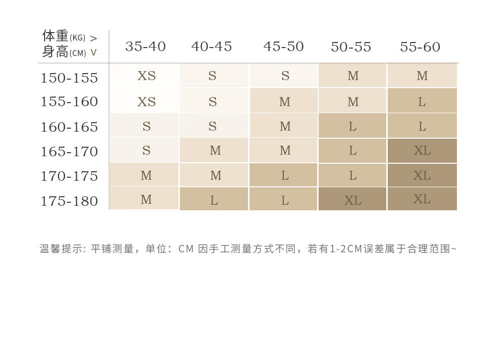 China (cm) 160-165/84-86 165-170 / 88-90 167-172 / 92-96 168-173 / 98-102 170-176 / 106-110