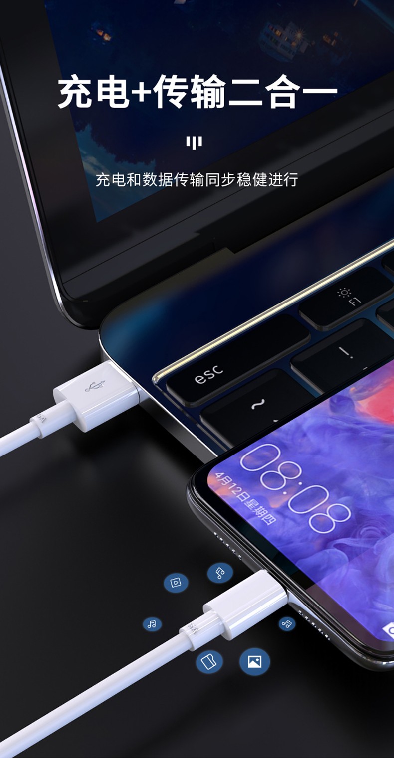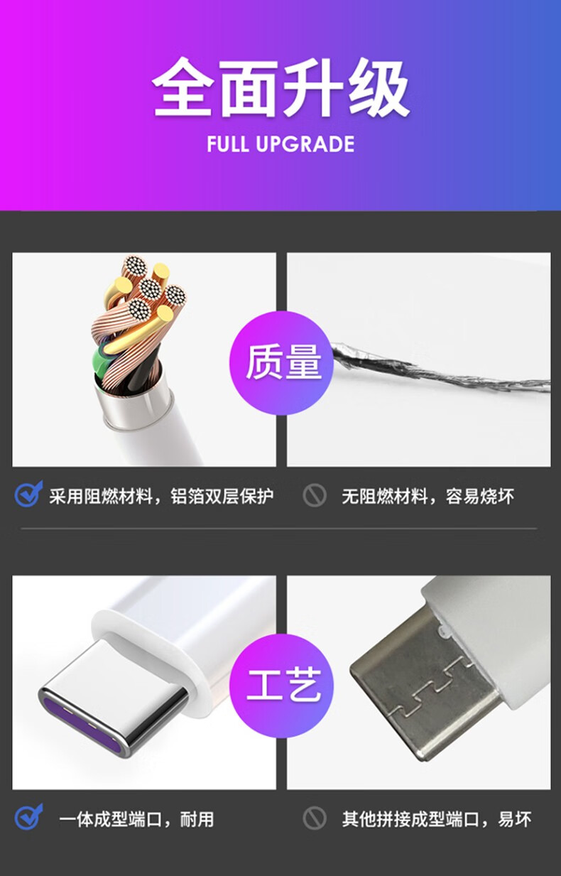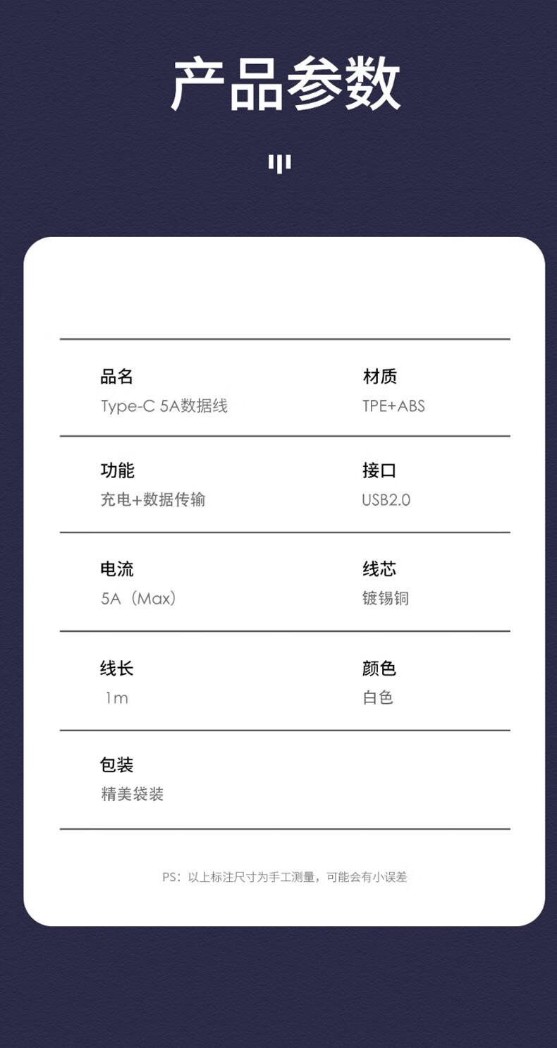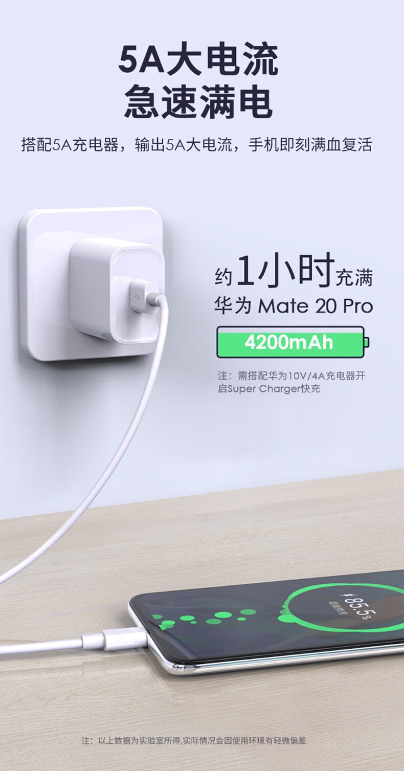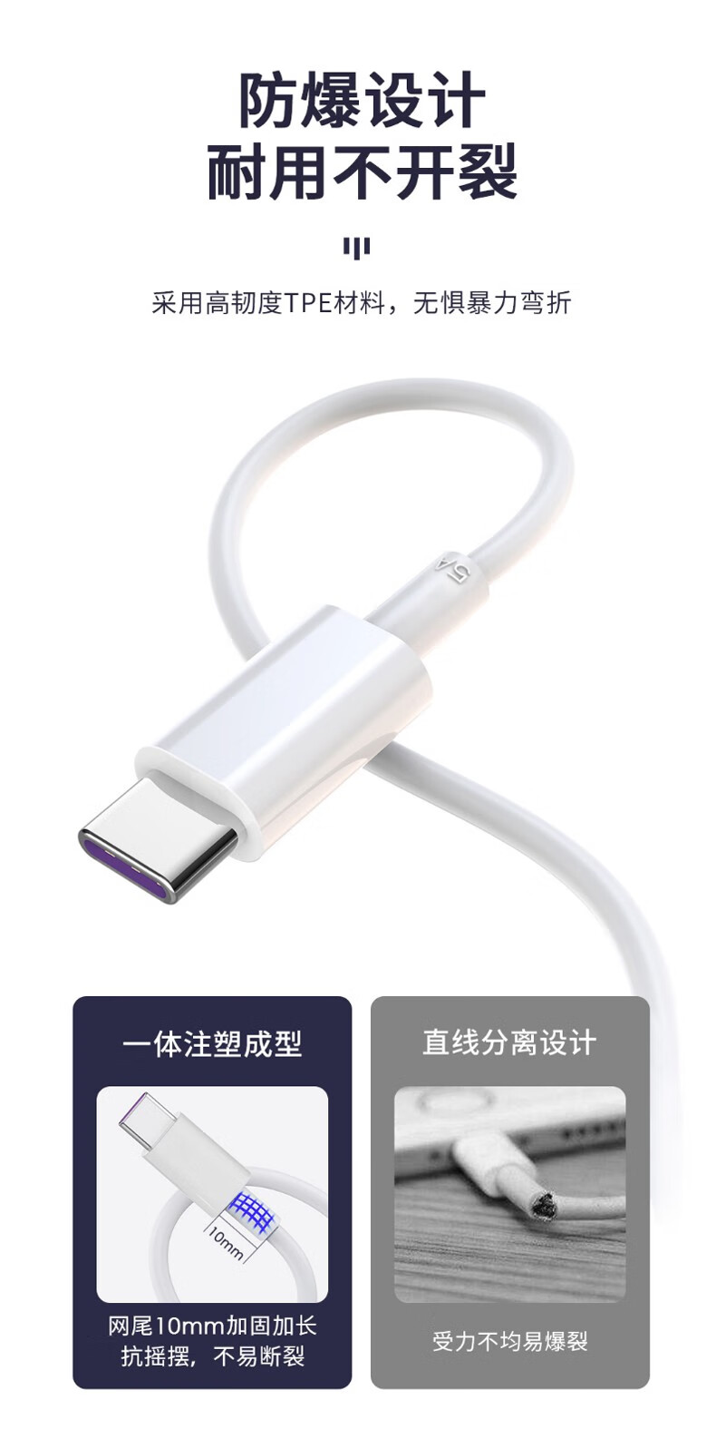 Schneiden data cable 5A is suitable for Type-C/Apple fast charging lightning charging cable t-c Android power cable universal Huawei Honor Apple iPad Xiaomi Type-C white 5A fast charging cable