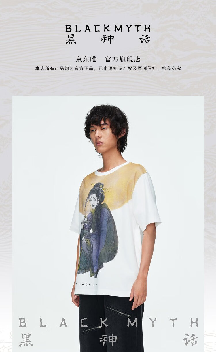 Black Myth Aoyama Ambition short-sleeved T-shirt Black Myth Goku official peripheral clothing Men and women same style print casual loose L