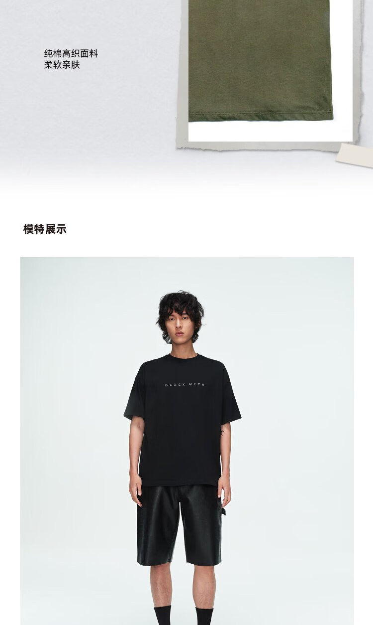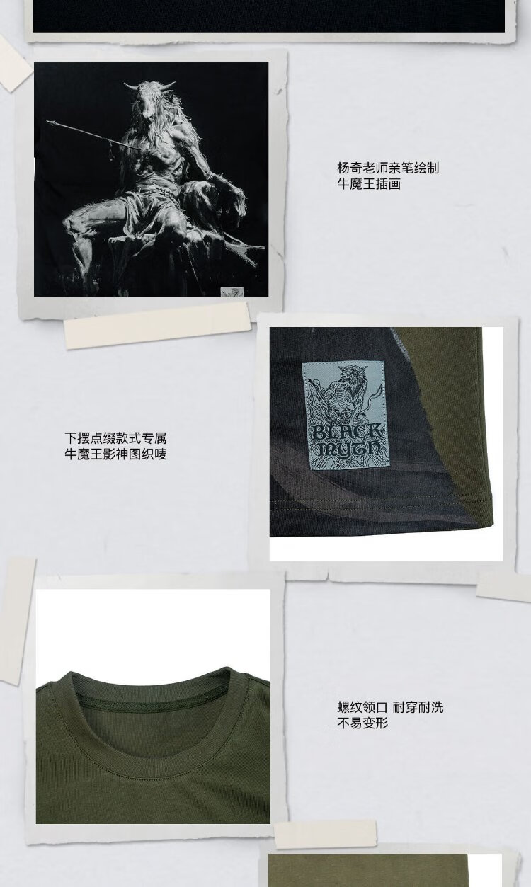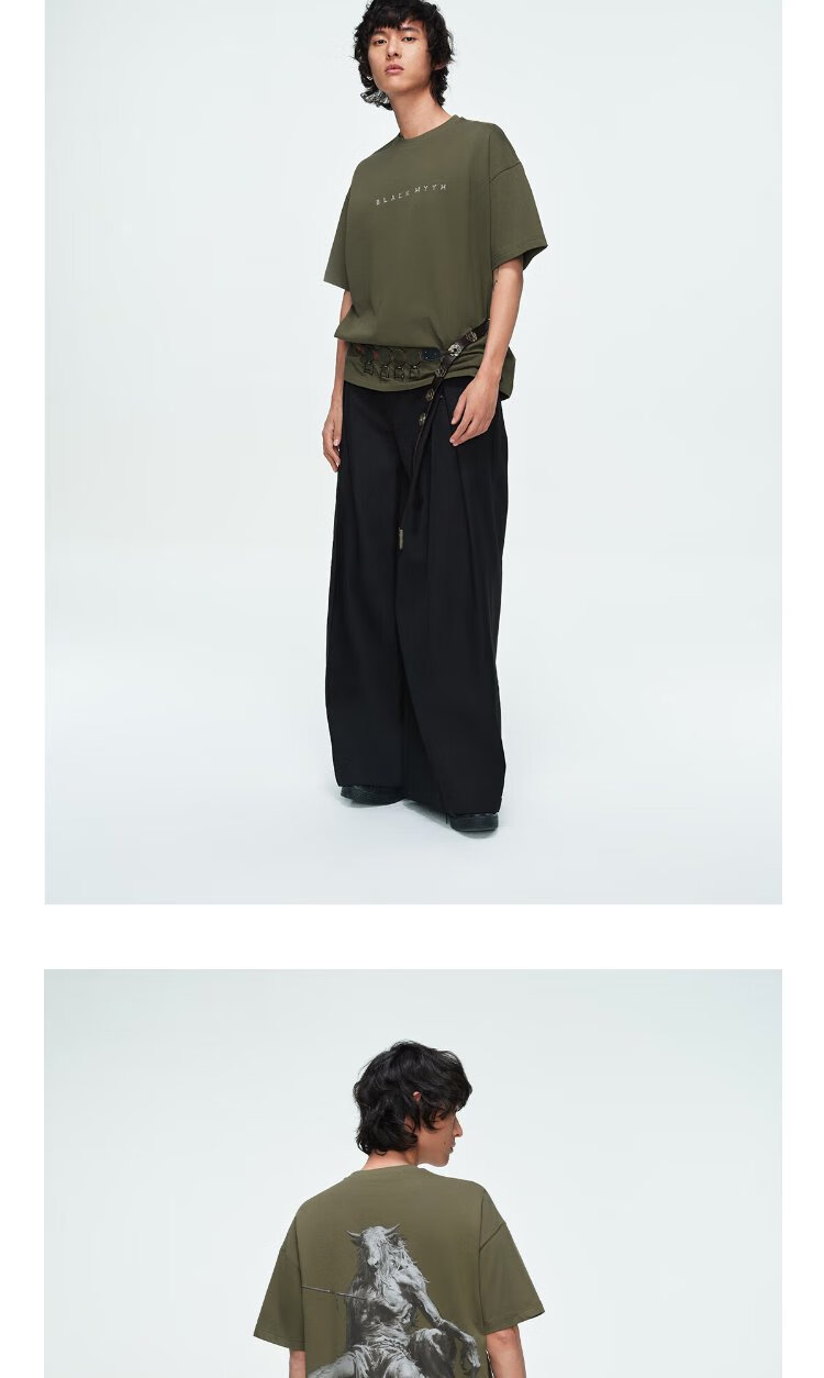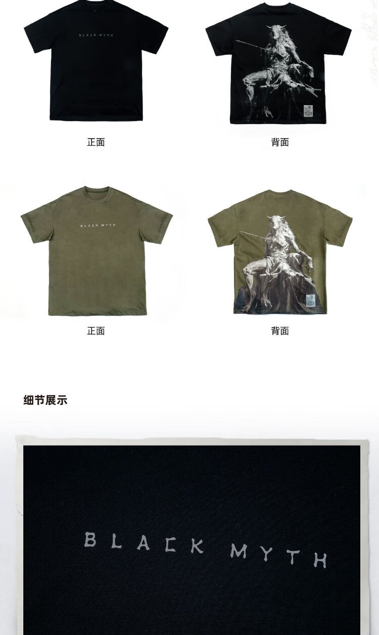 Black Myth Bull Demon King short-sleeved T-shirt Black Myth Goku official peripheral clothing for men and women, casual, olive green L