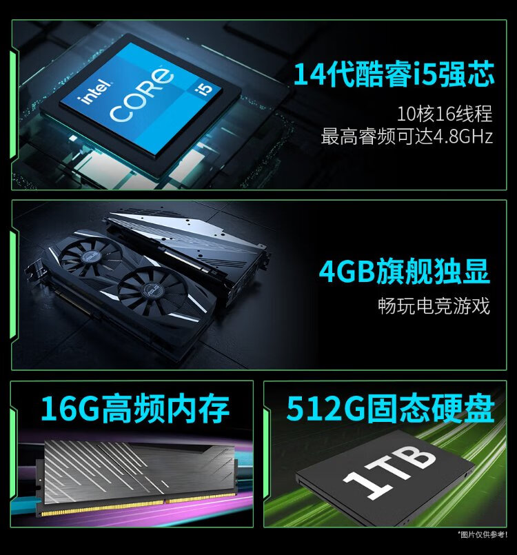 Five Color Fish 14th generation Core i5-14450HX 16G 512G solid state 4G independent display office commercial home gaming desktop computer desktop host complete set 27 inches