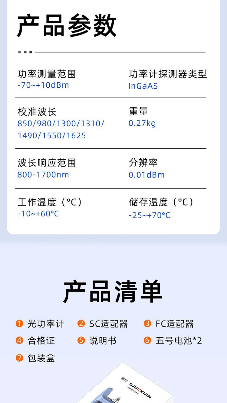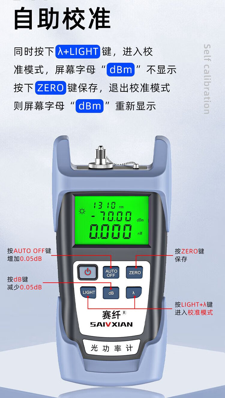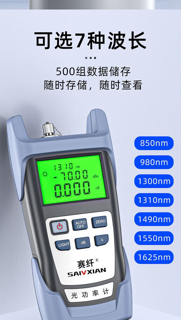 Sai Fiber high-precision optical power meter light attenuation tester fiber optic detector battery model measurement range -70 +10dBm
