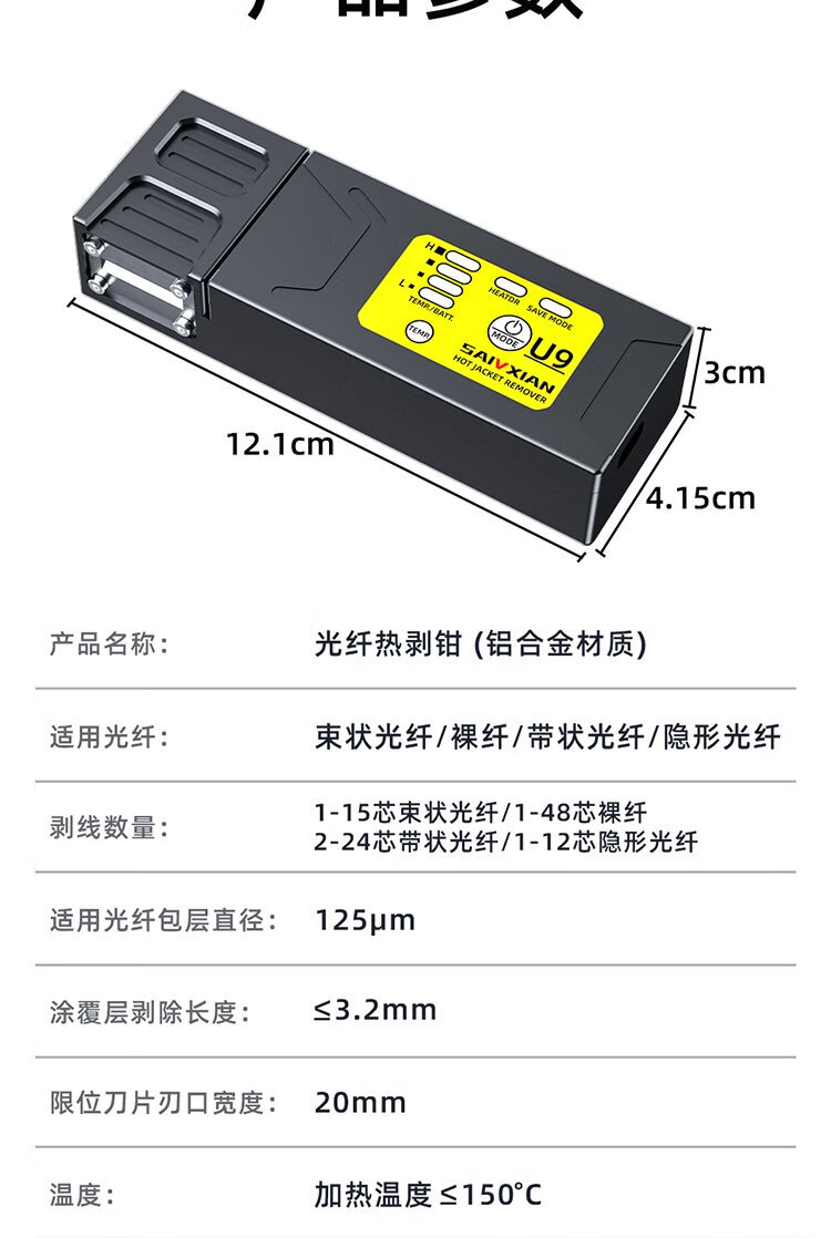 Sai Fiber Optical Fiber Thermal Stripper U9 Thermal Stripping Pliers Wire Stripping Pliers Can Strip Ribbon Fiber Bundles Bare Fiber Invisible Fiber