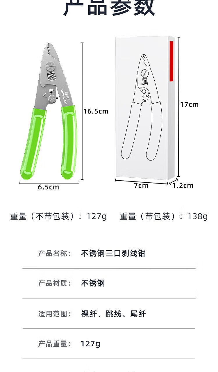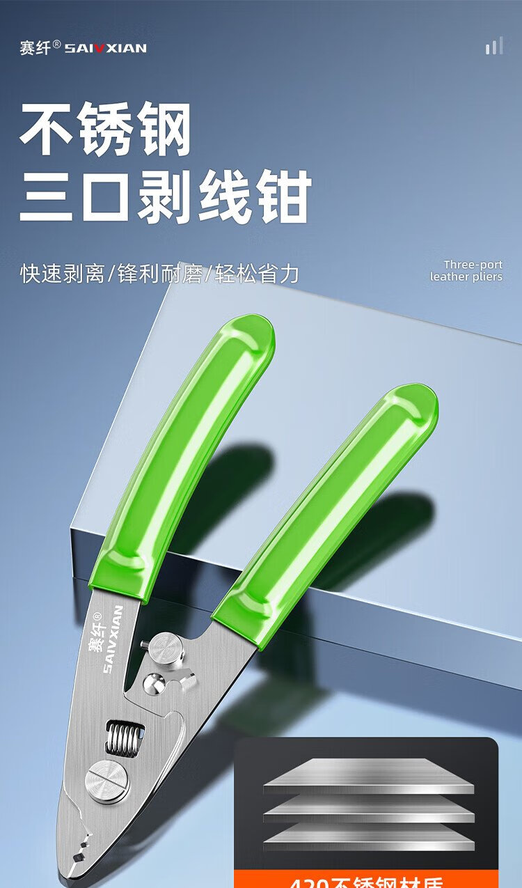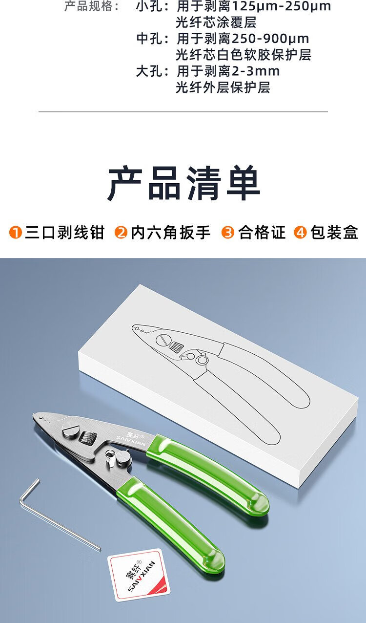 Fiber optic fiber Miller pliers stainless steel three-port Miller pliers jumper pigtail stripping pliers optical cable coating stripping pliers