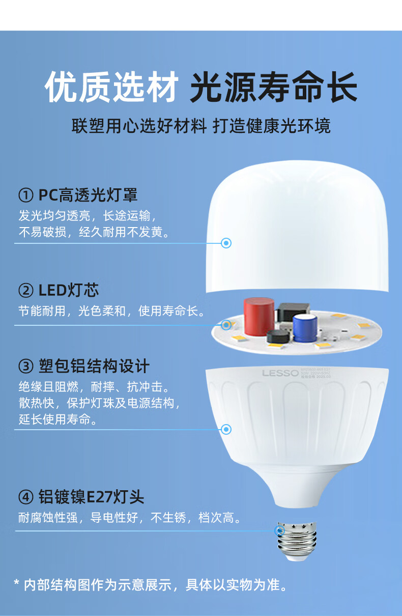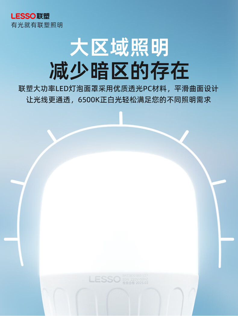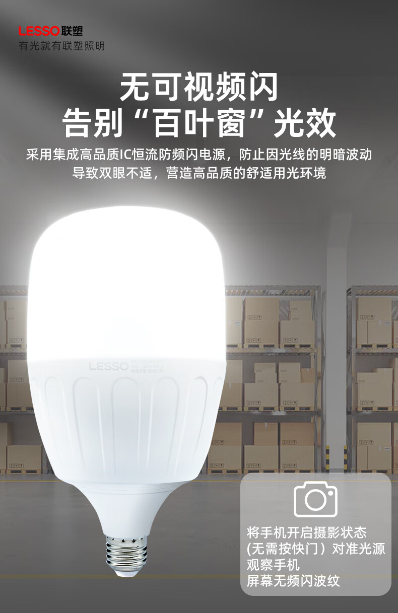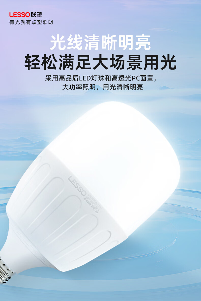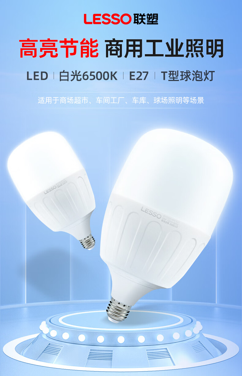 Lesso LED energy-saving light bulb cylindrical bulb E27 large screw socket 50W high power property commercial factory lighting white light 6500k