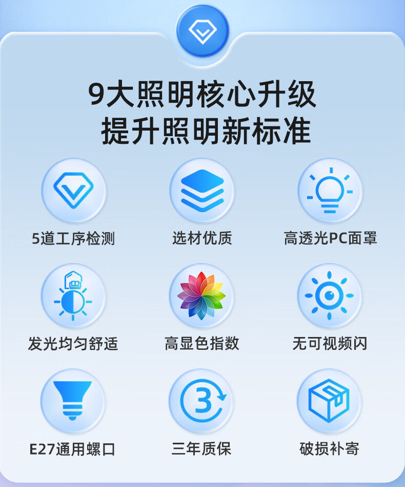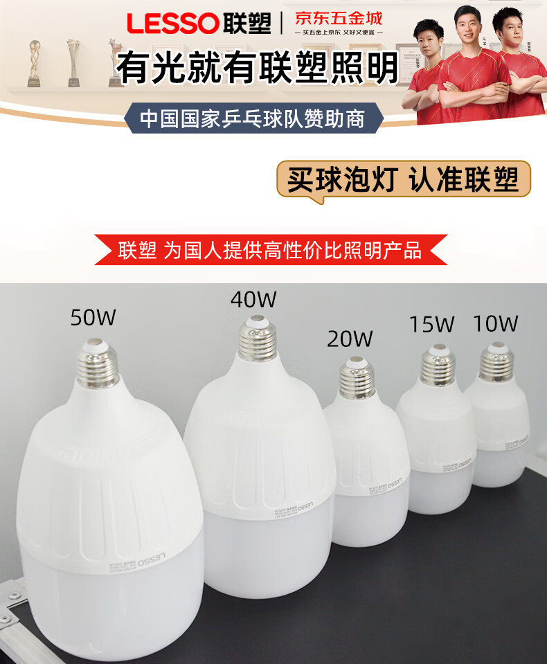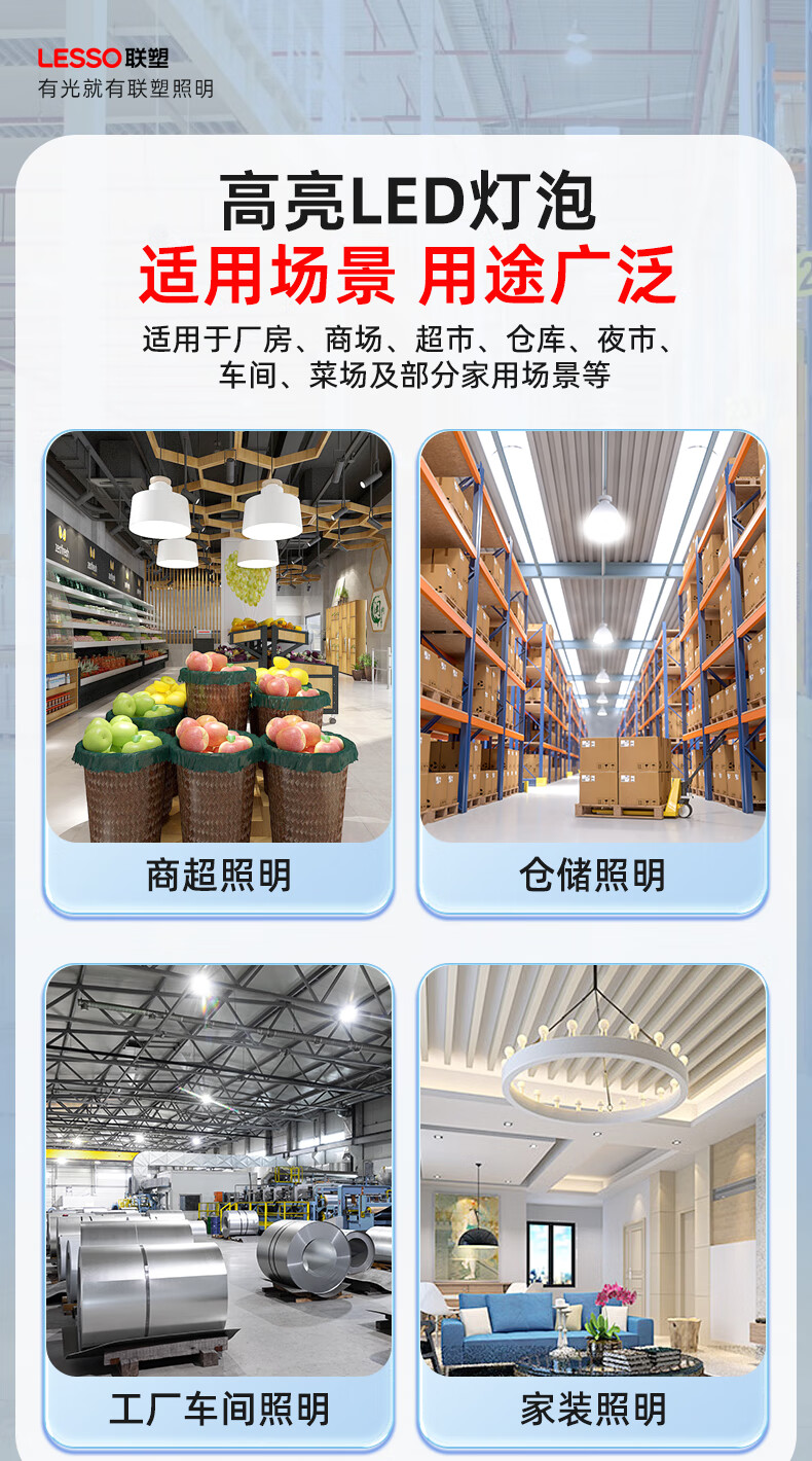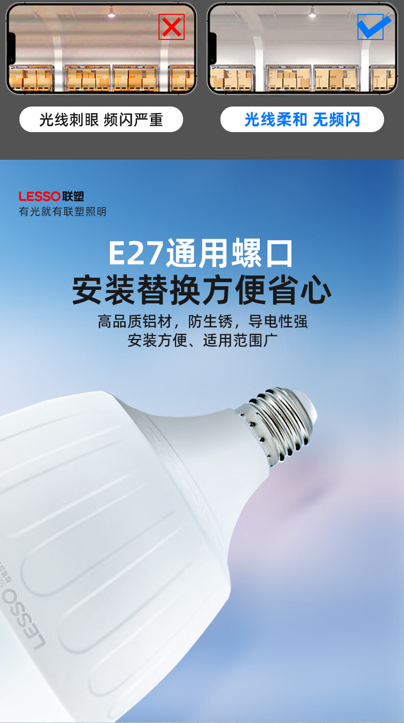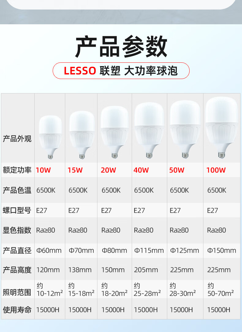 Lesso LED energy-saving light bulb cylindrical bulb E27 large screw socket 50W high power property commercial factory lighting white light 6500k