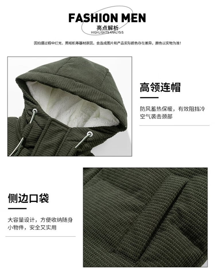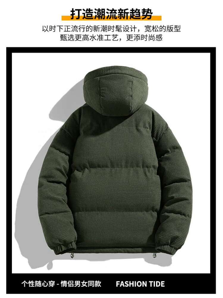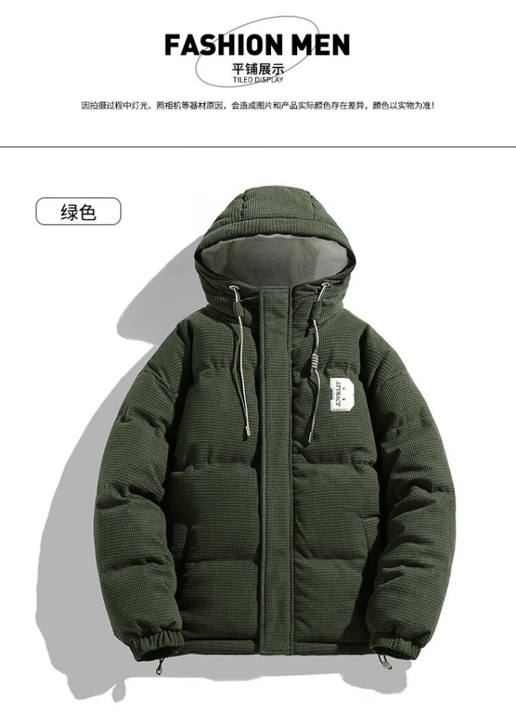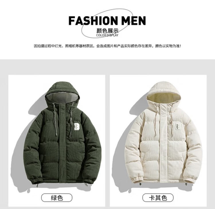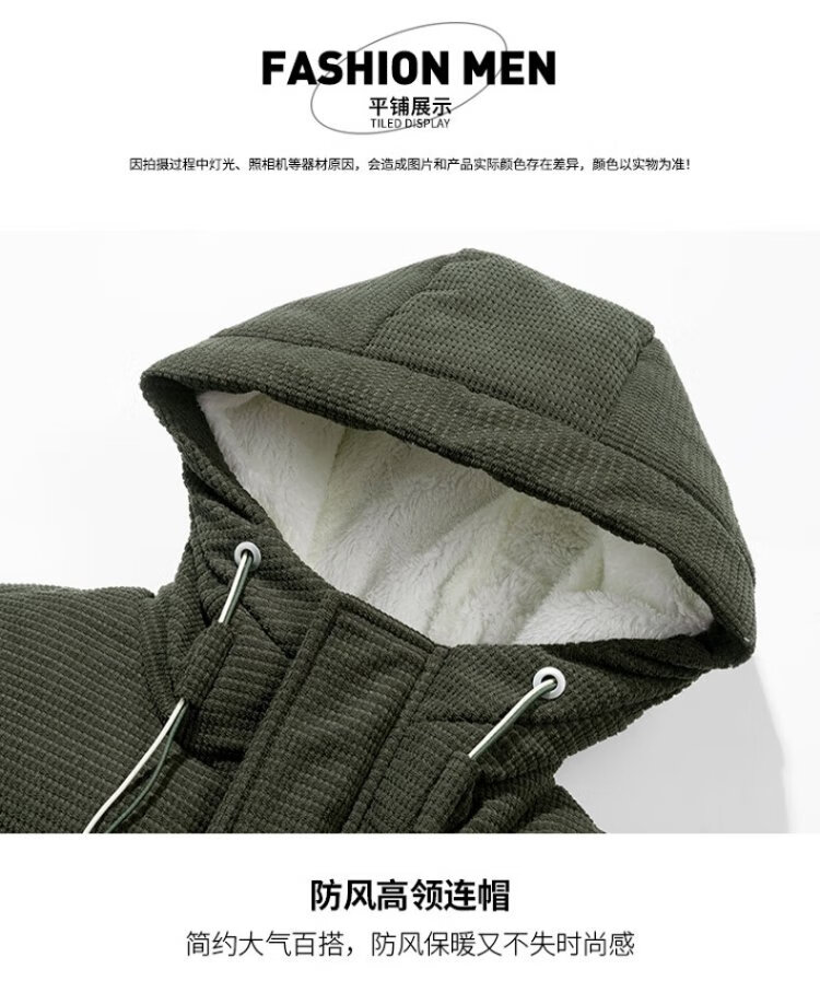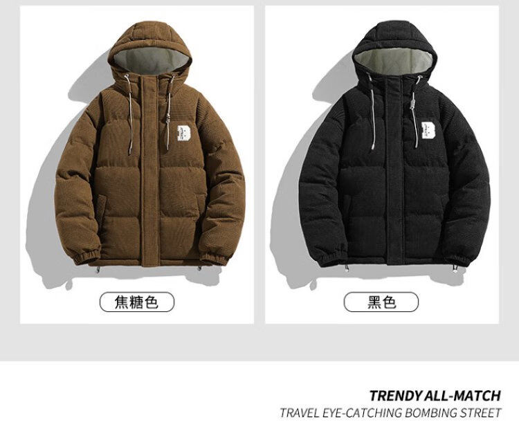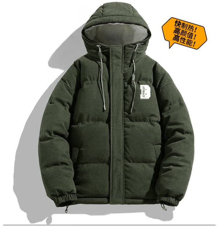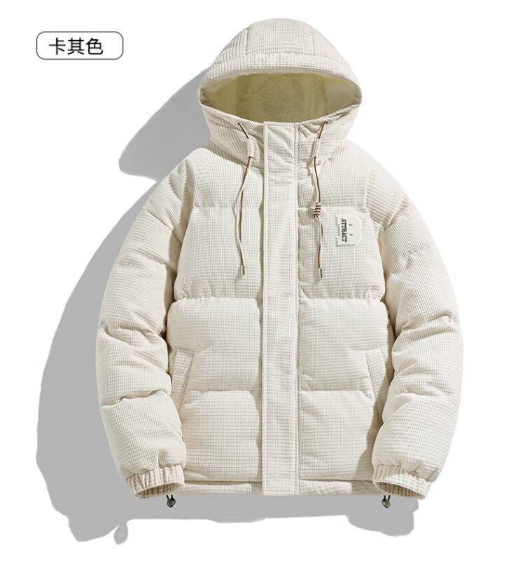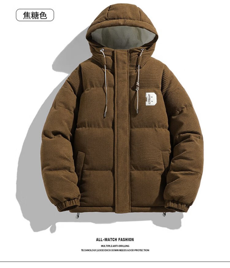 Jeanswest Outdoor Sports Cotton Jacket Men's Winter Versatile Hooded Cotton Jacket Plus Velvet Thickened Windproof Warm Jacket Caramel Color XL