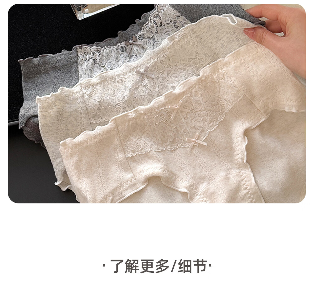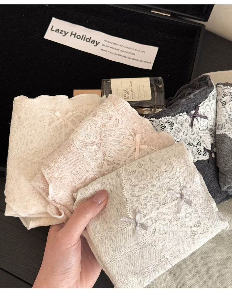 Inner companion 3 pairs of sweet pure cotton underwear for women 10a antibacterial crotch mid-waist girls' lace triangle shorts L