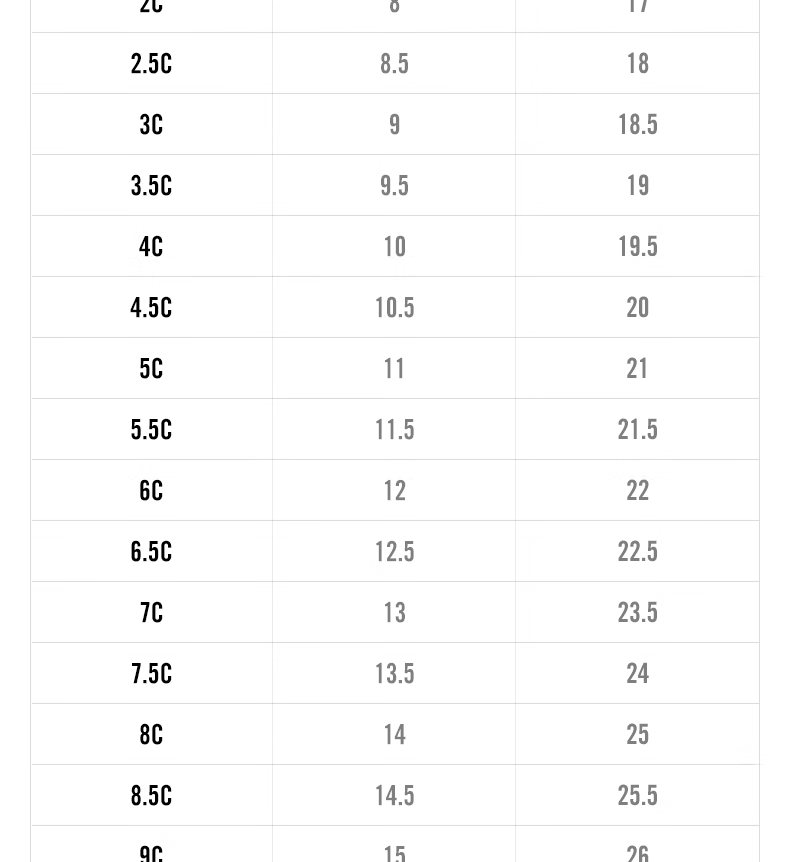 China (cm) 36 - 37 38 - 39 40 - 42 43 - 44 45 - 47