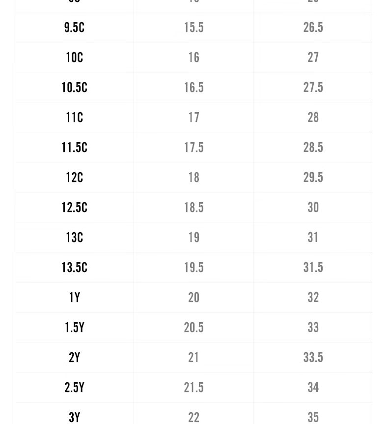 USA 5 5.5 6 7 7.5 8.5 9.5 10 10.5 12 13 14 15.5