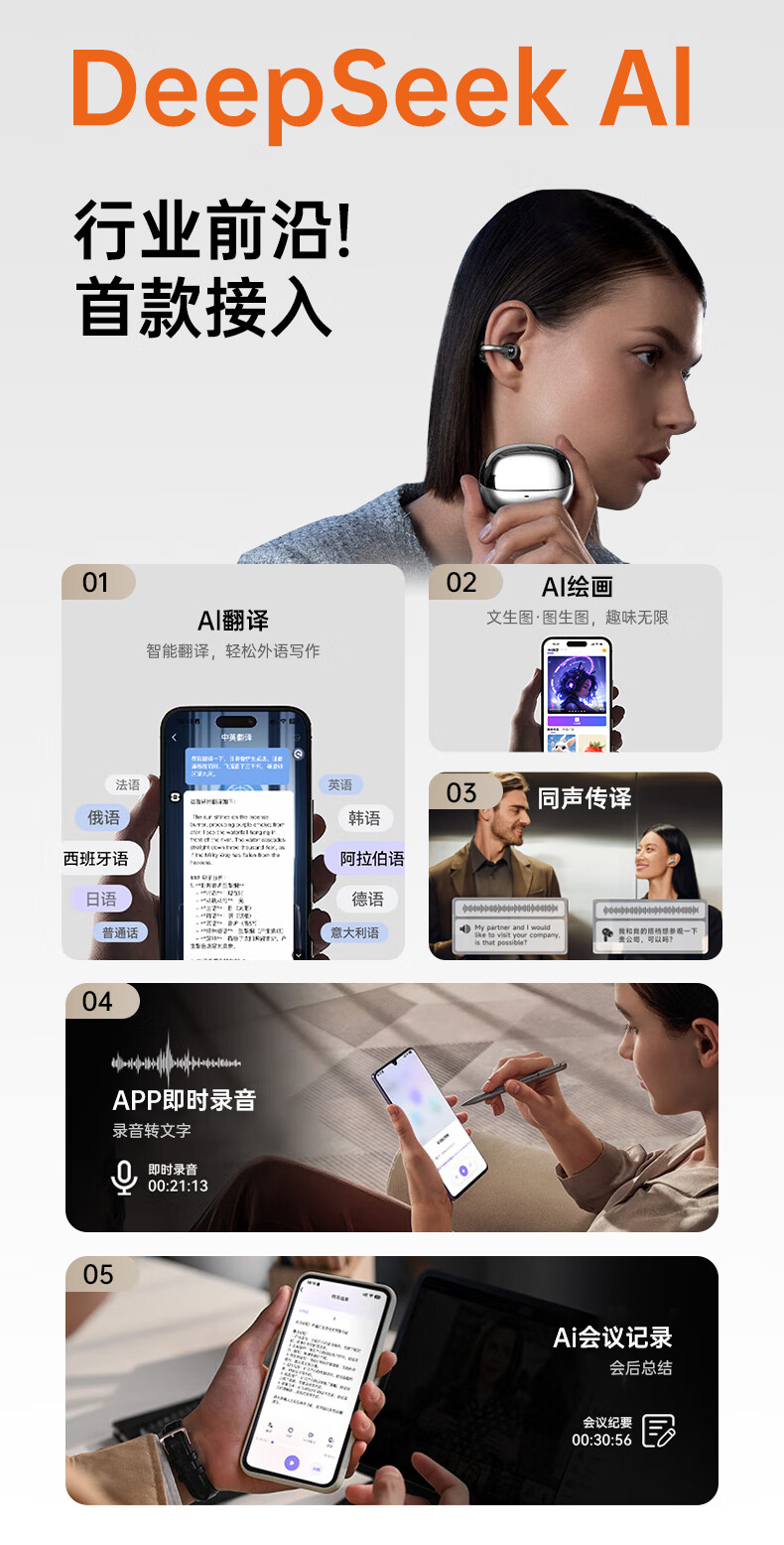 Viken 2025 latest model丨Harman Kardon level AI bone conduction Bluetooth headset ear clip type concept sports running wireless open ear hanging anti-sweat cycling ultra-long battery life
