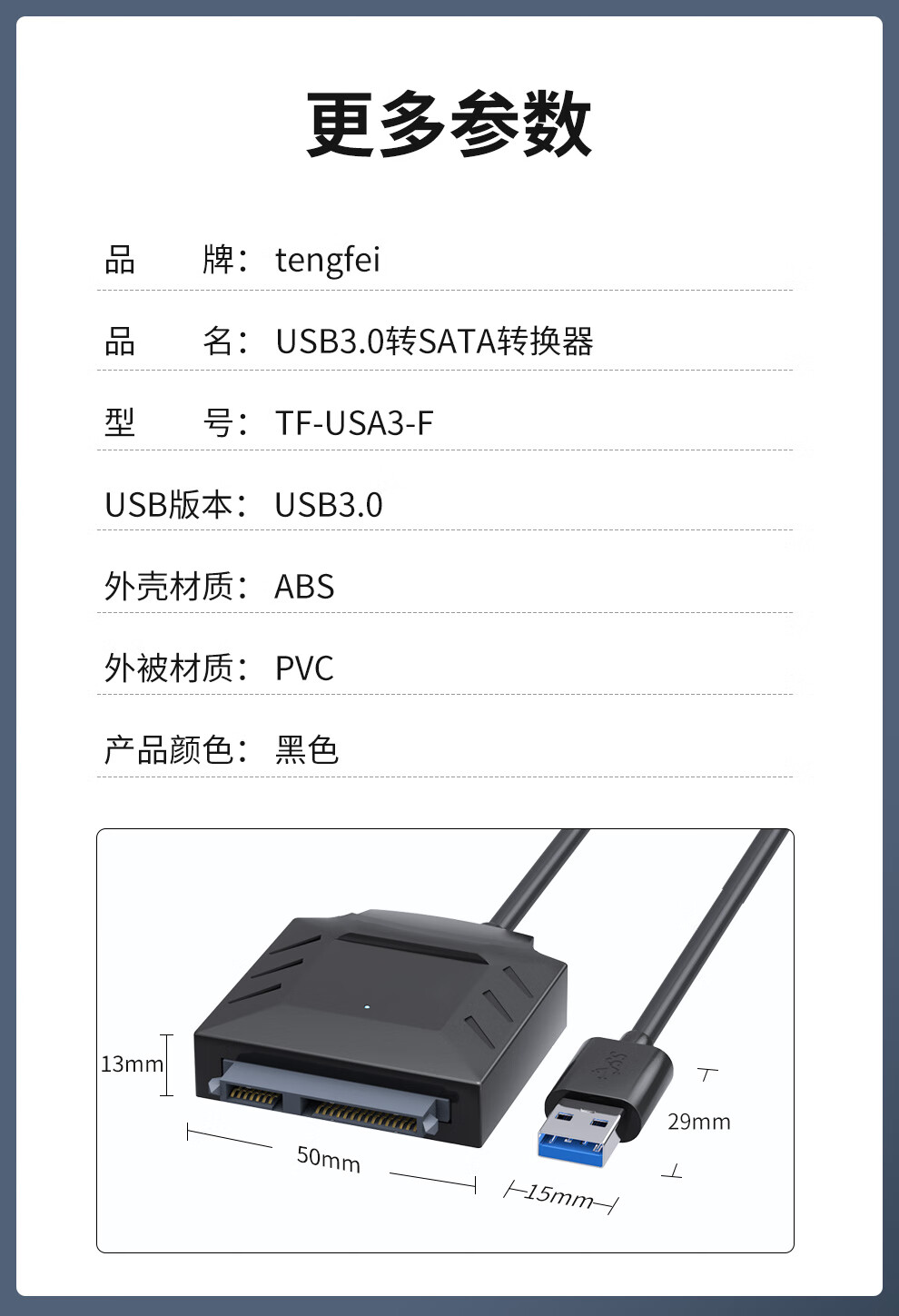 Tengfei USB3.0转SATA转换器2.5/3.5英寸固态机械硬盘盒转接头数据连接线适用笔记本电脑台式机易驱线
