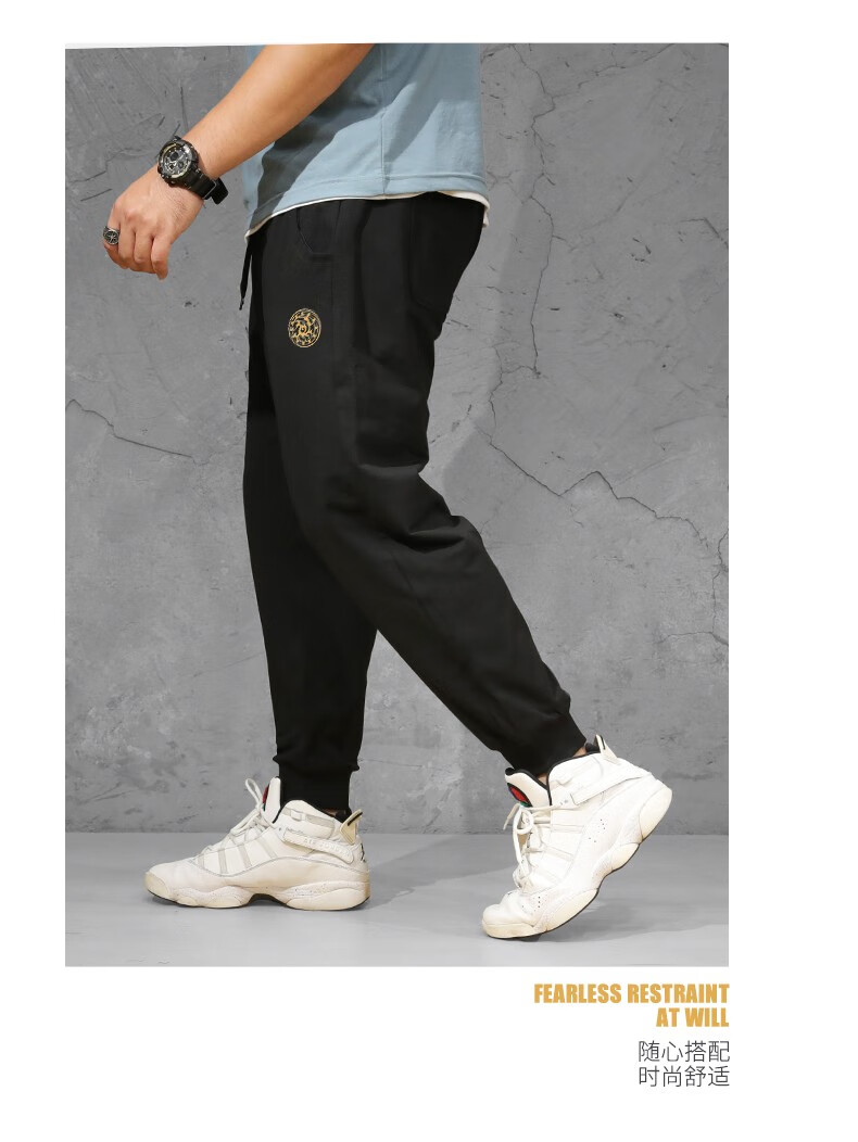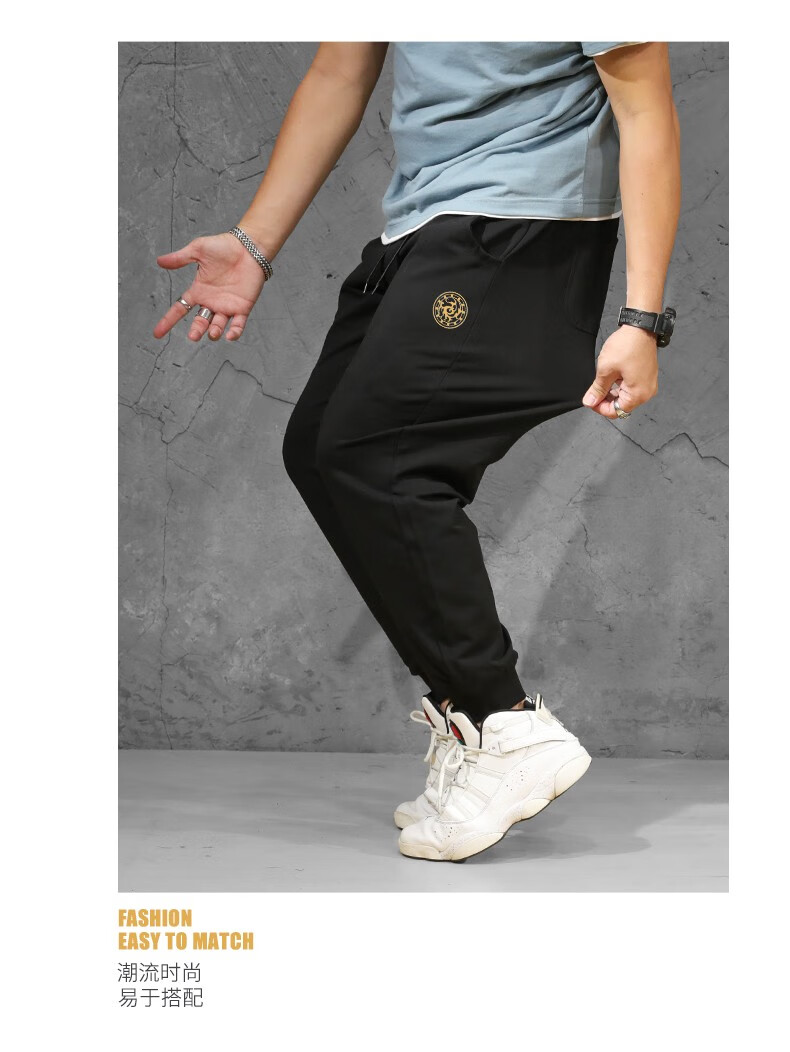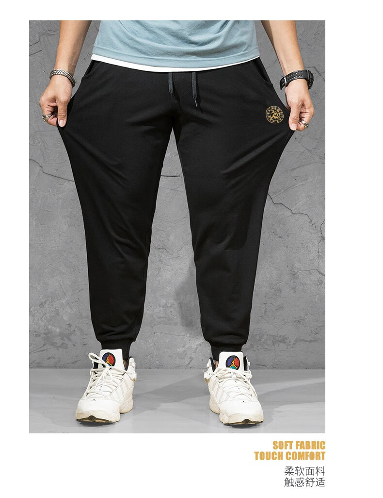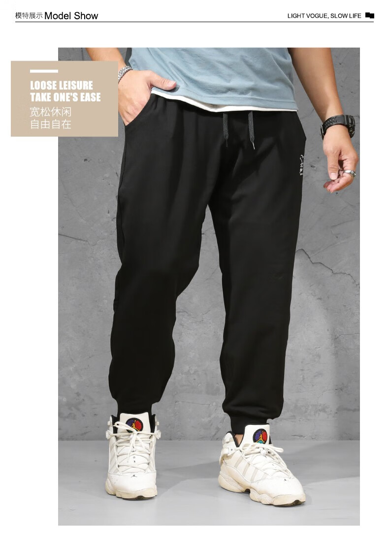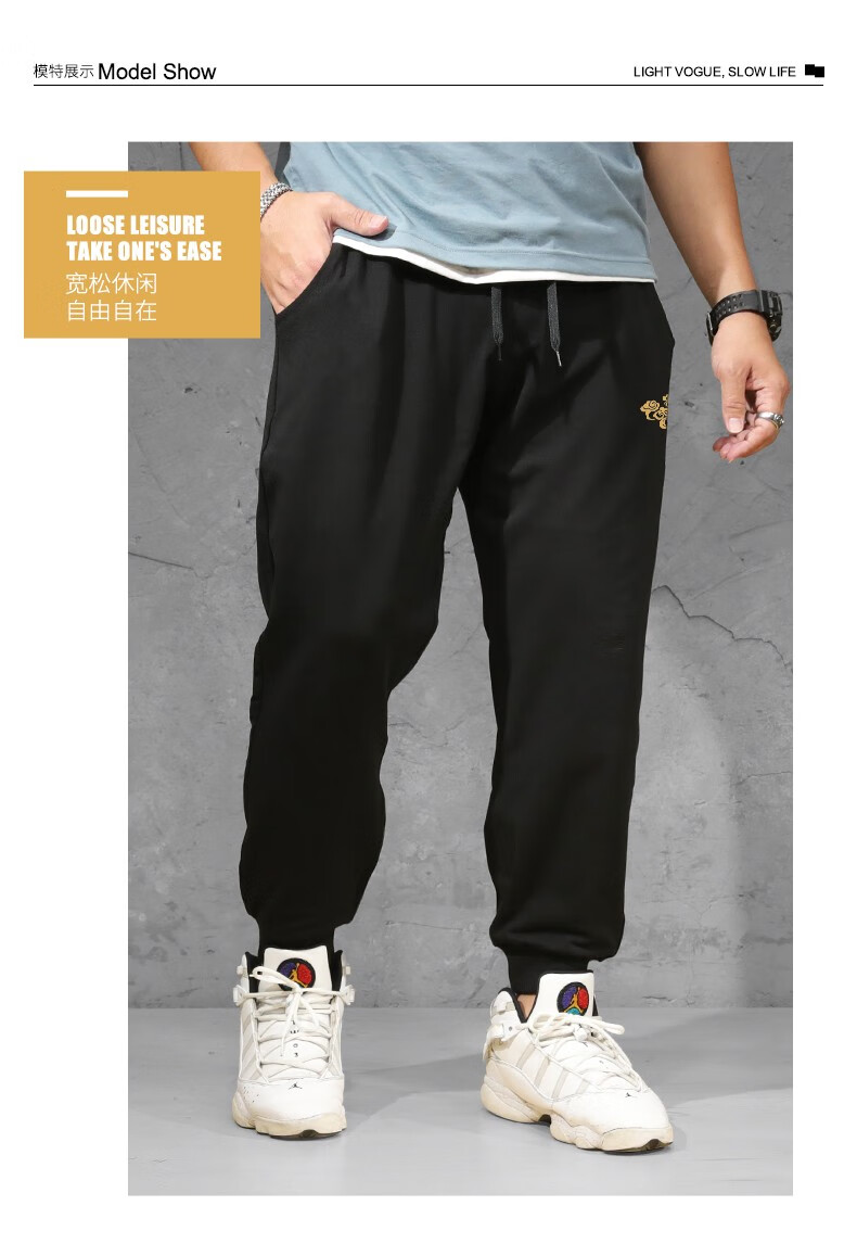 Fat Brother Large Size Men's Casual Pants Men's Spring and Autumn Loose Fat Men's Leg Pants Men's Plus Fat Fat Men's Sports Trousers Black Plus Velvet Style 4XL 220-250Jin Jin is equal to 0.5 kg