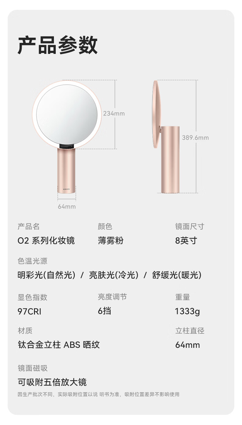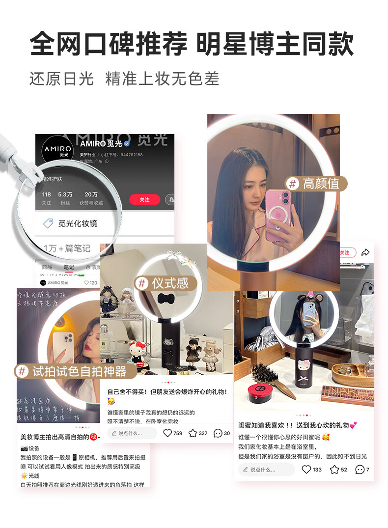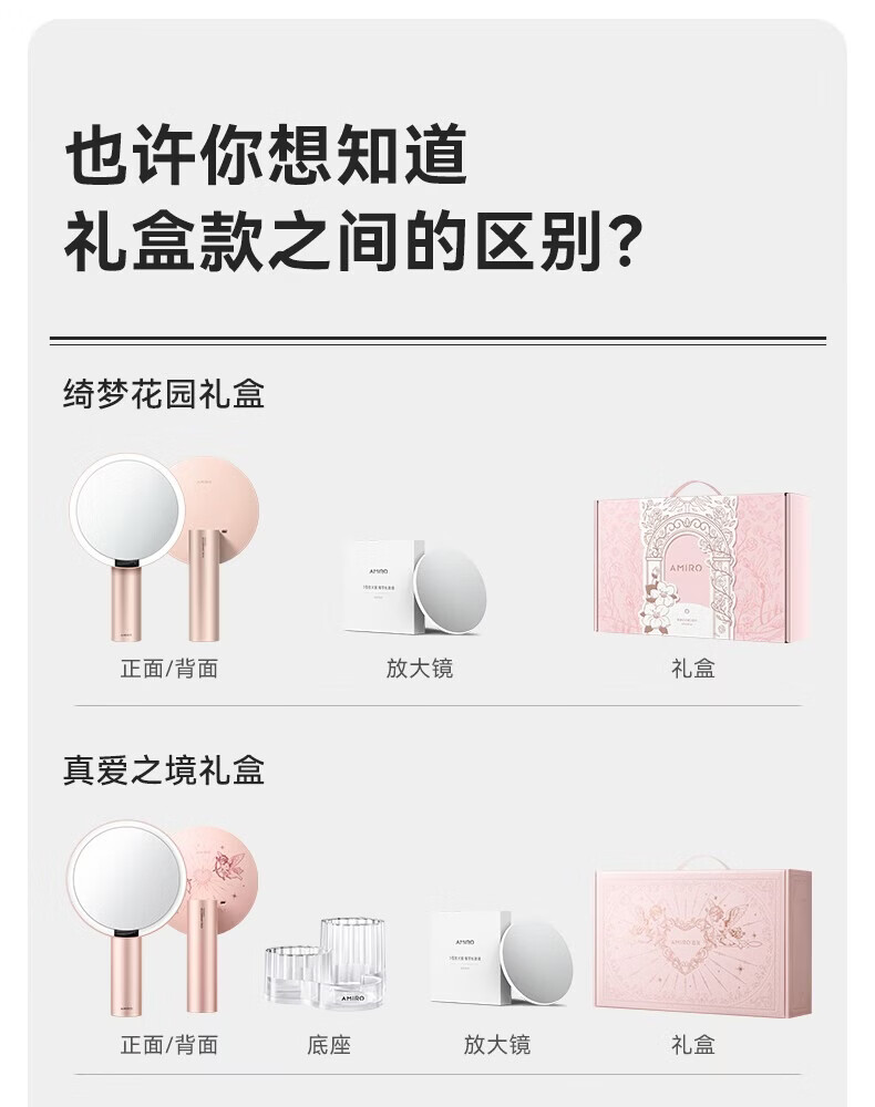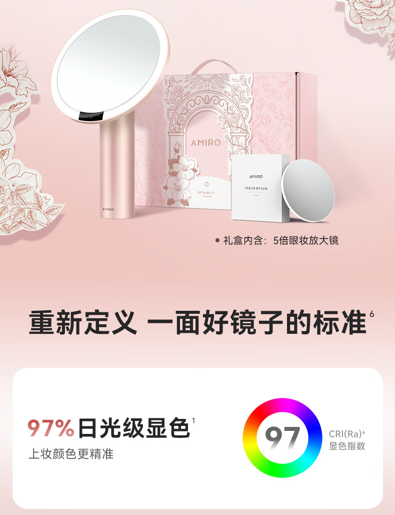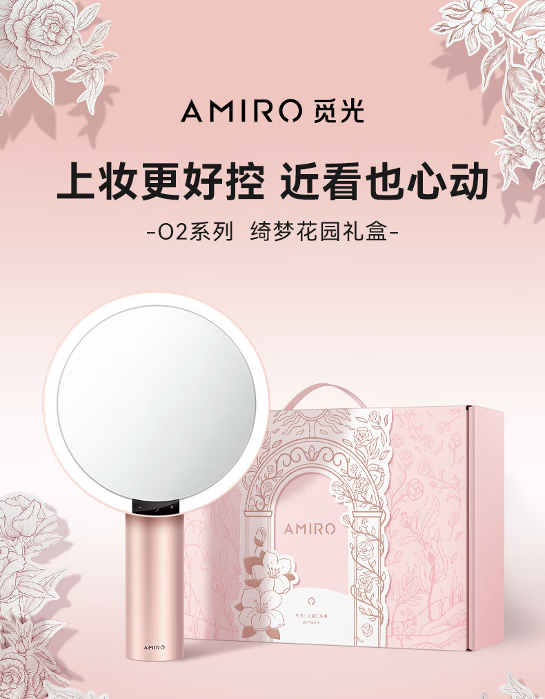 AMIRO makeup mirror with light LED smart high-definition sun mirror O2 Dream Garden Gift Box Mist Powder