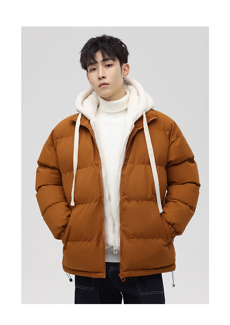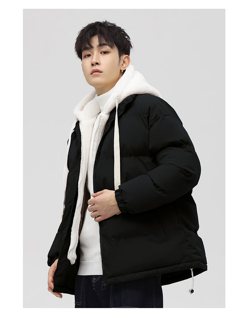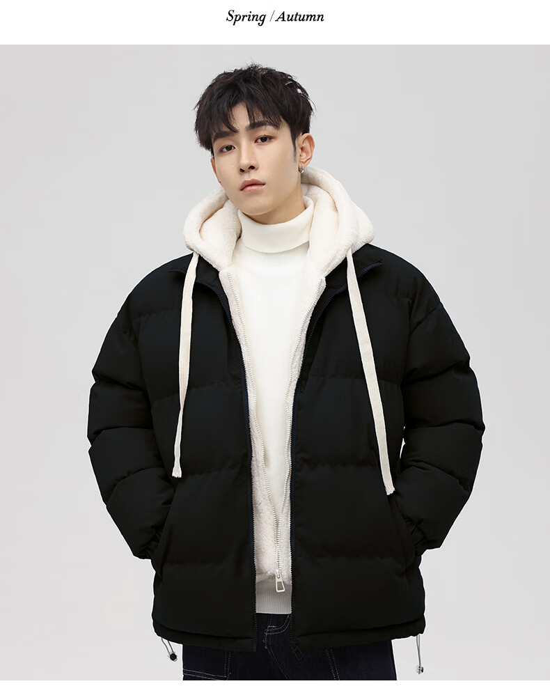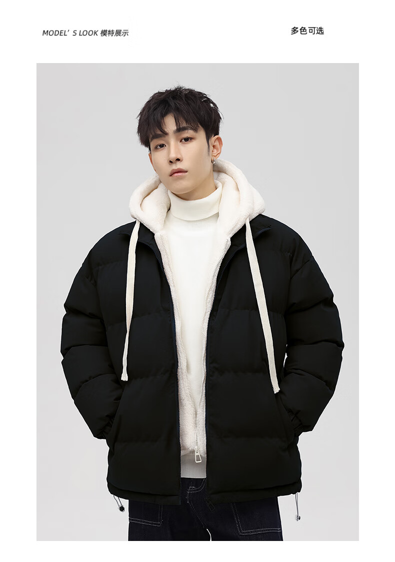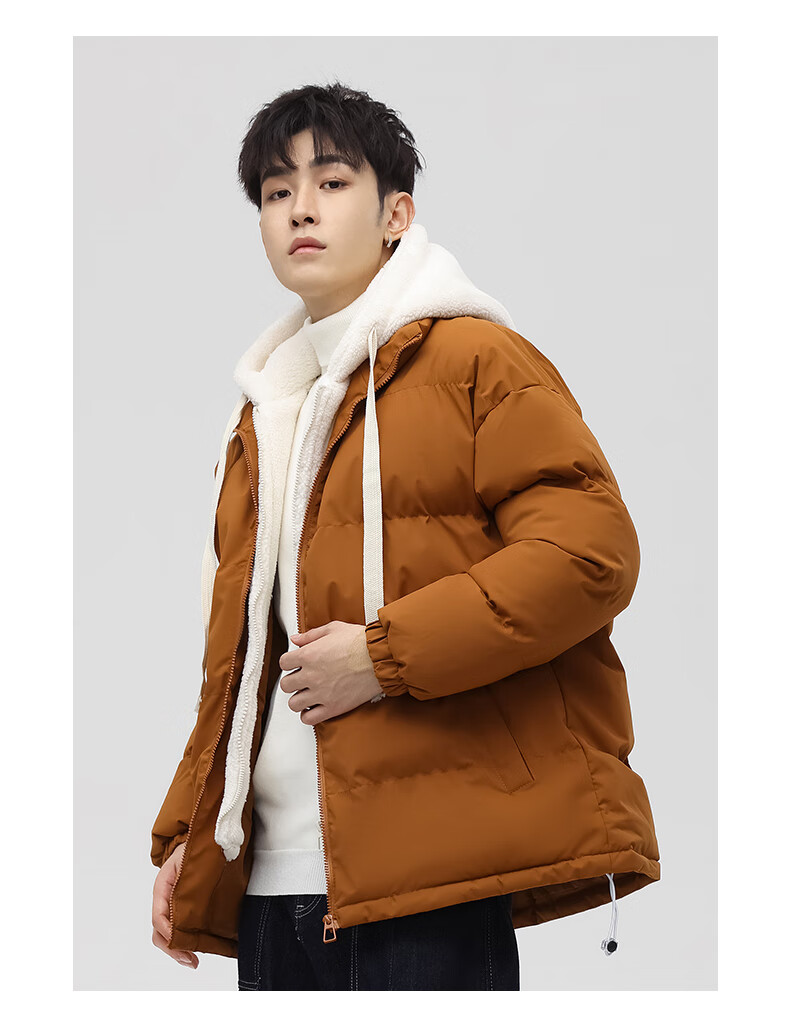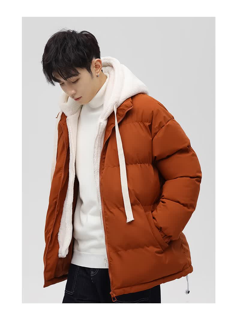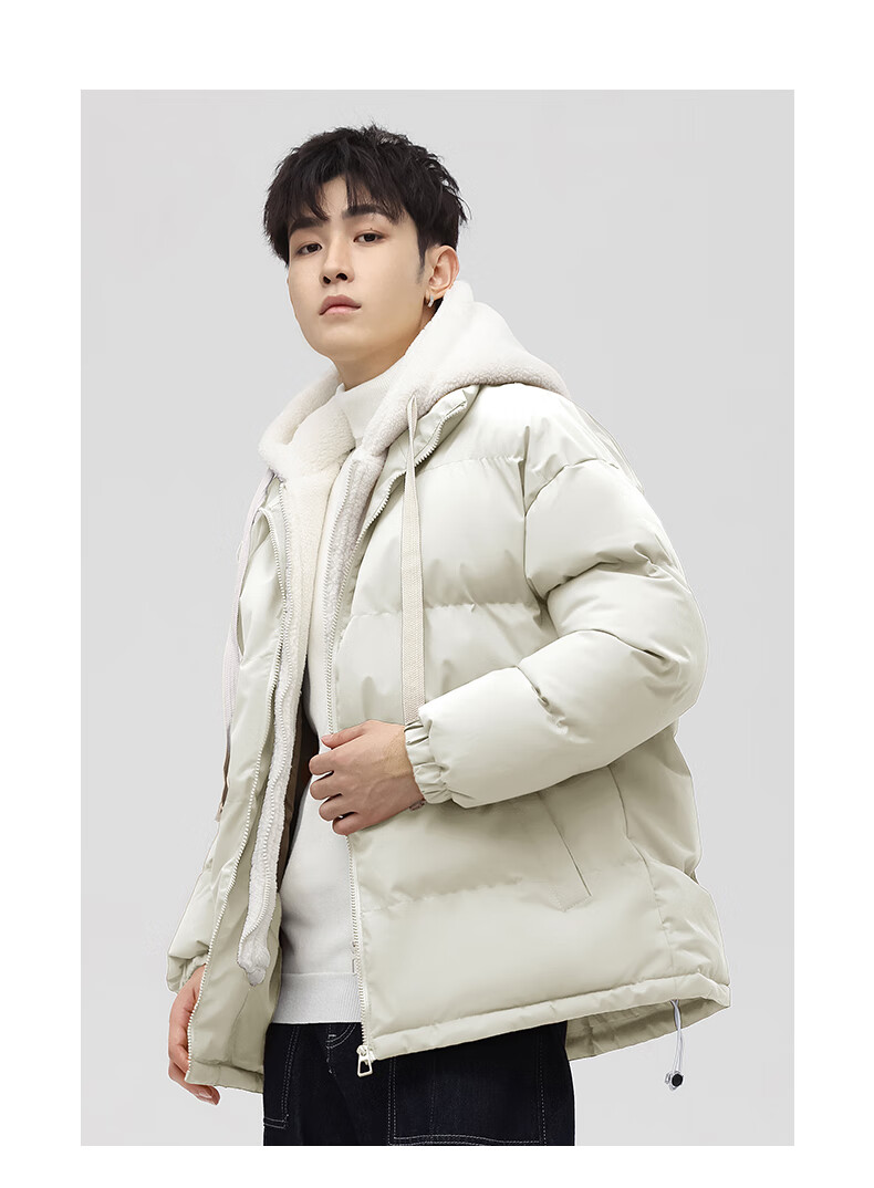 Baleno fake two-piece hooded cotton coat for men, autumn and winter casual loose commuting versatile warm and slim lamb velvet bread coat
