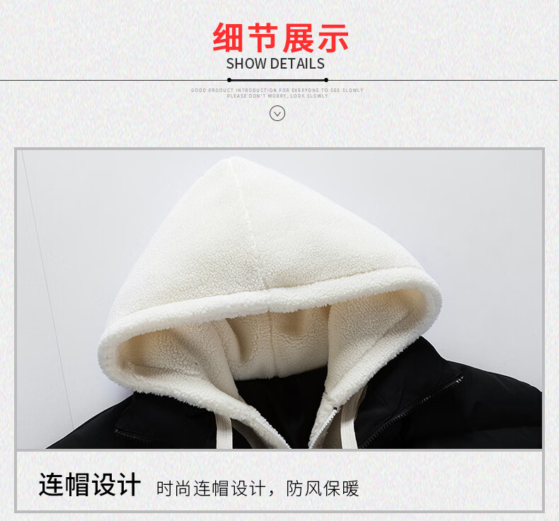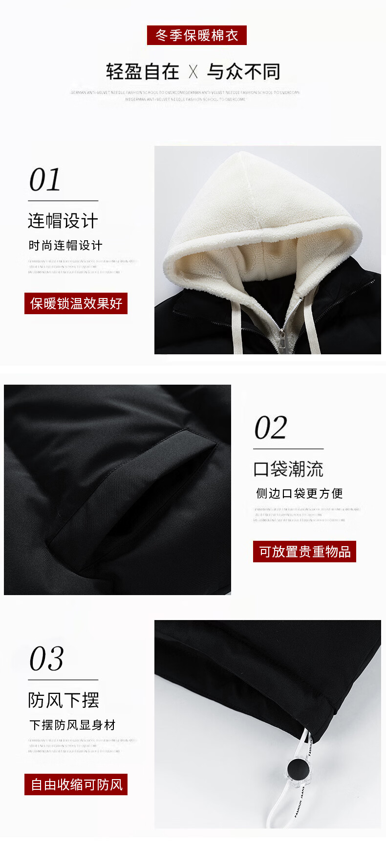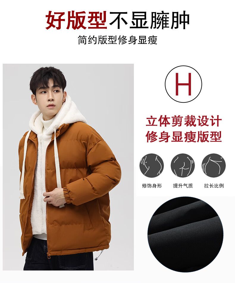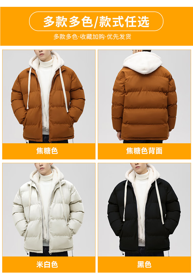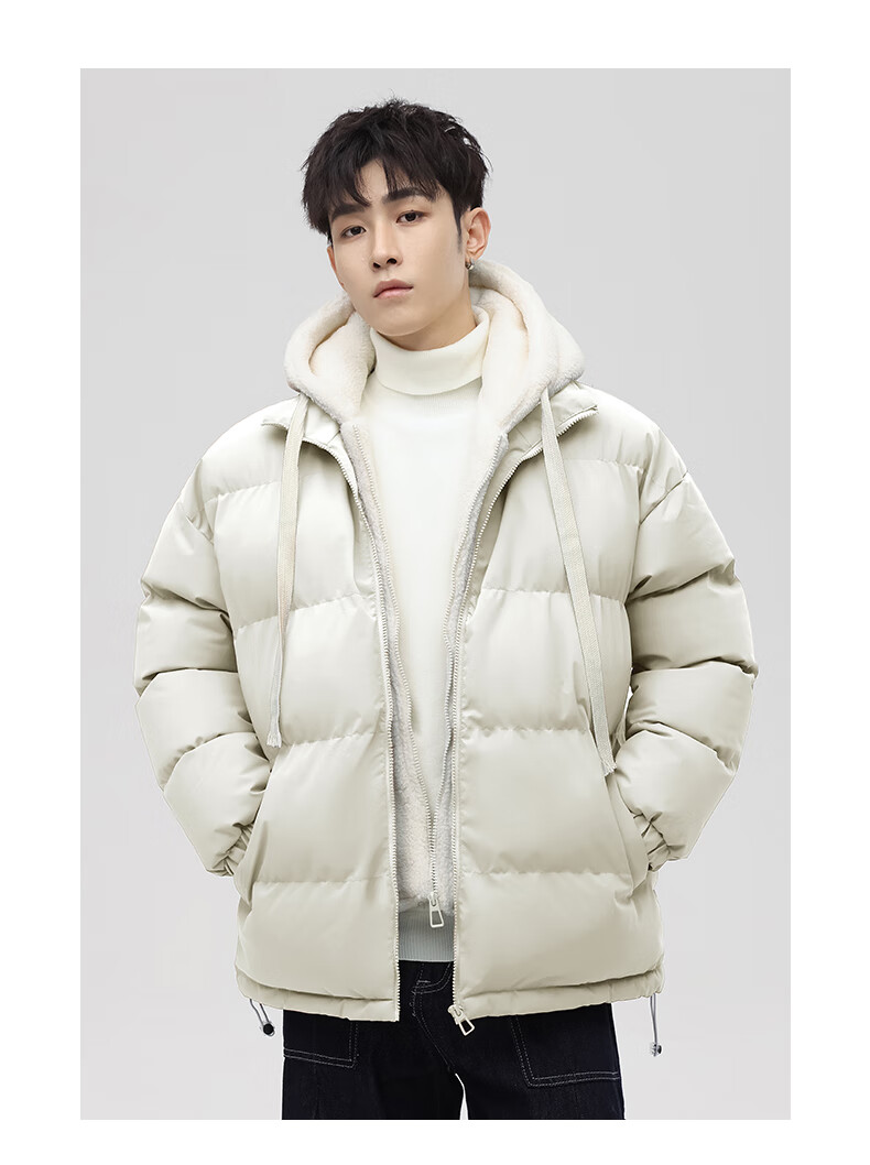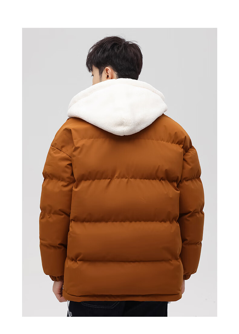 Baleno fake two-piece hooded cotton coat for men, autumn and winter casual loose commuting versatile warm and slim lamb velvet bread coat