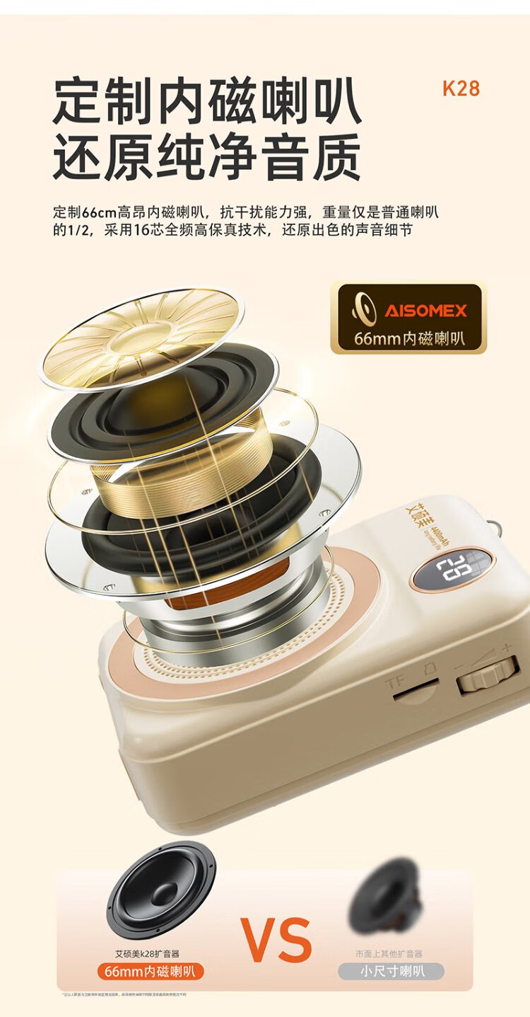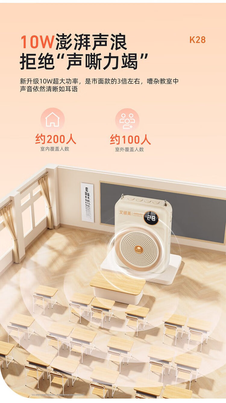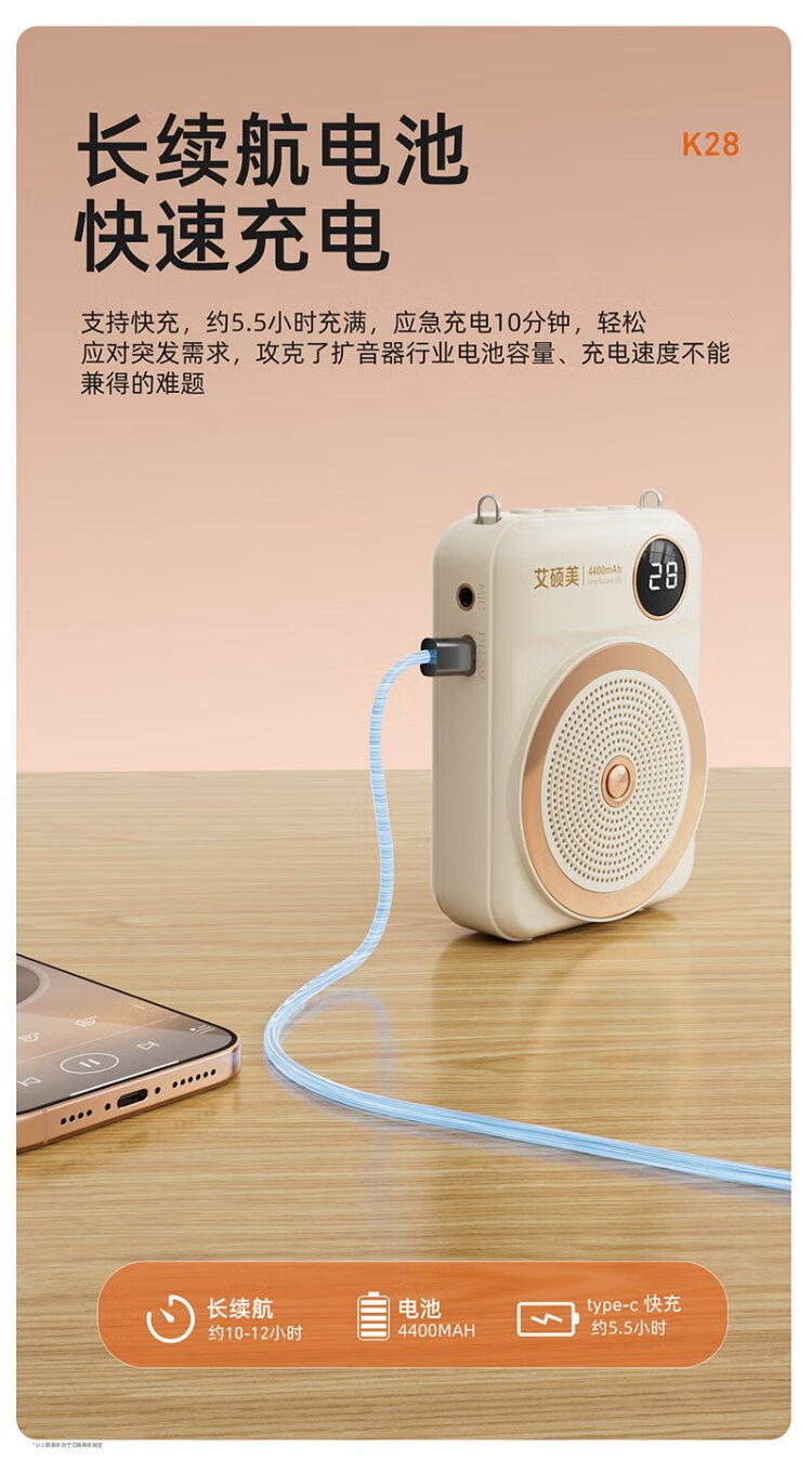 Aishomei K28 Little Bee Amplifier Teacher's Special Class Teaching Anti-Screaming Microphone Outdoor Tour Guide Shopping Guide Recording Explanation Small Speaker High-Power Speaker