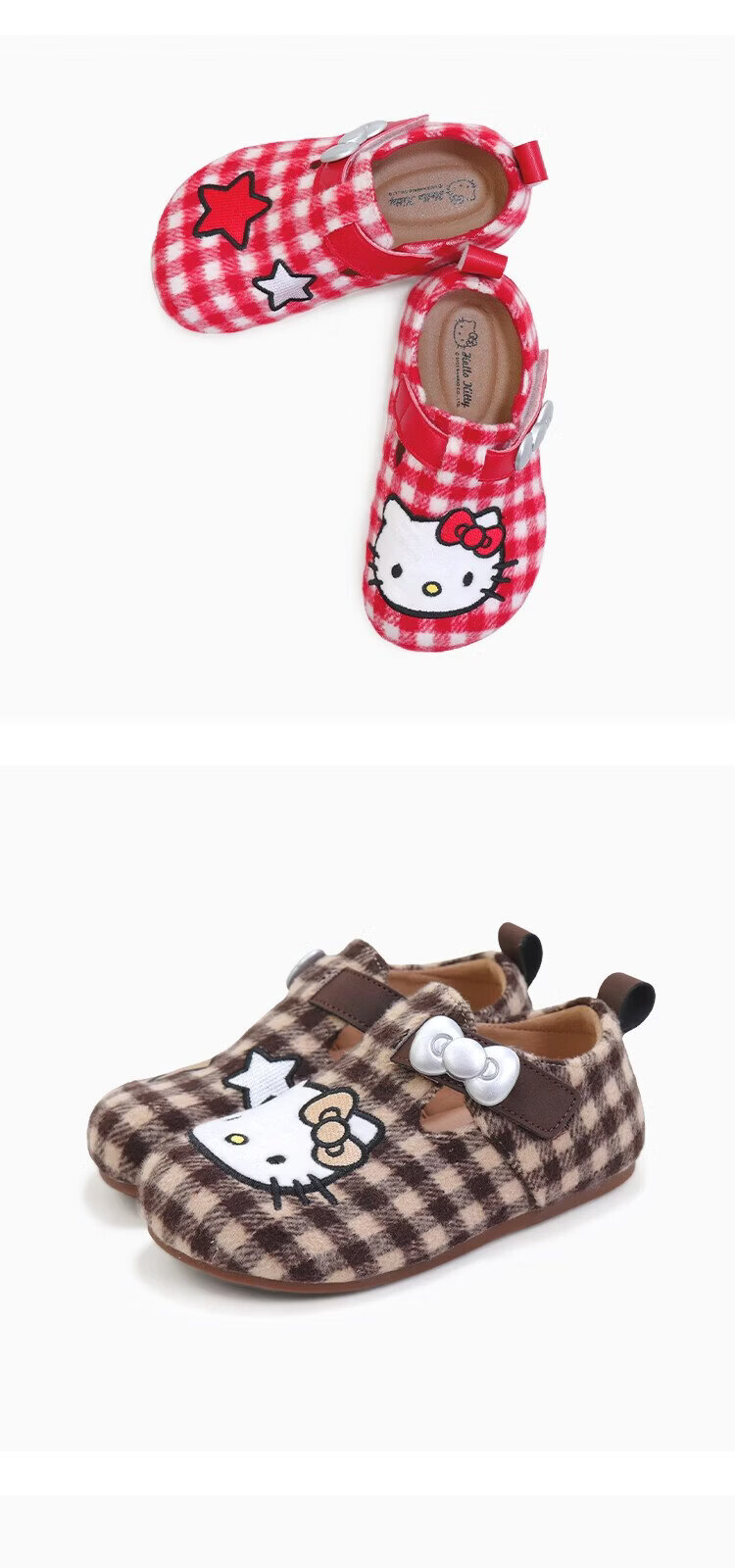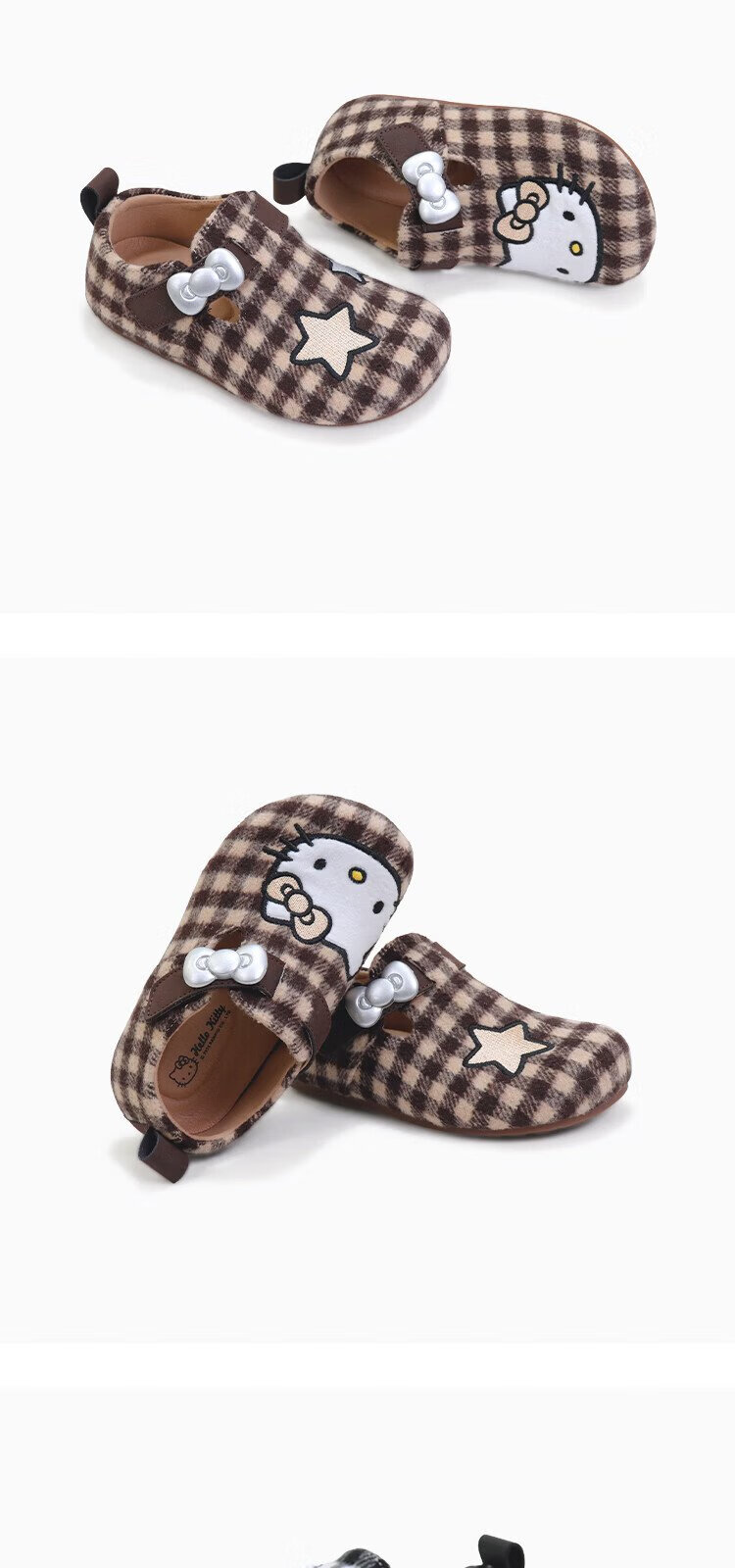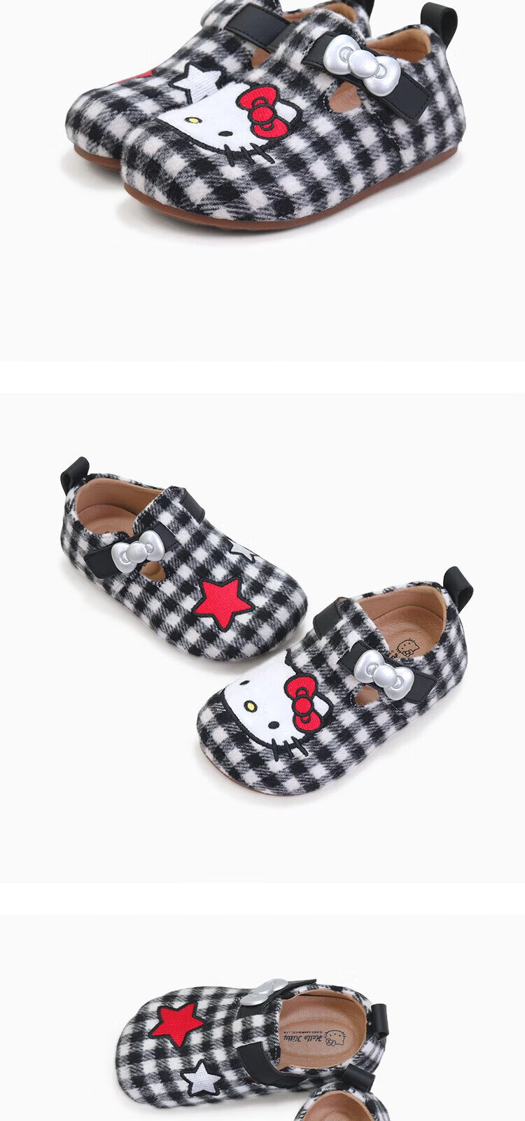 Hello Kitty children's shoes girls leather shoes girls children's fashion Birkenstock shoes princess plaid shoes 7100 black 24