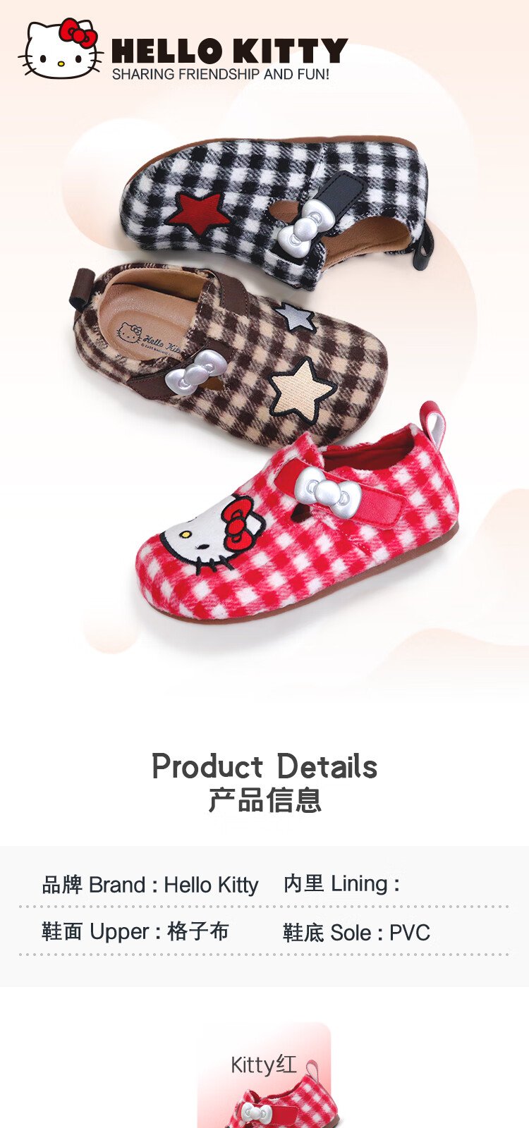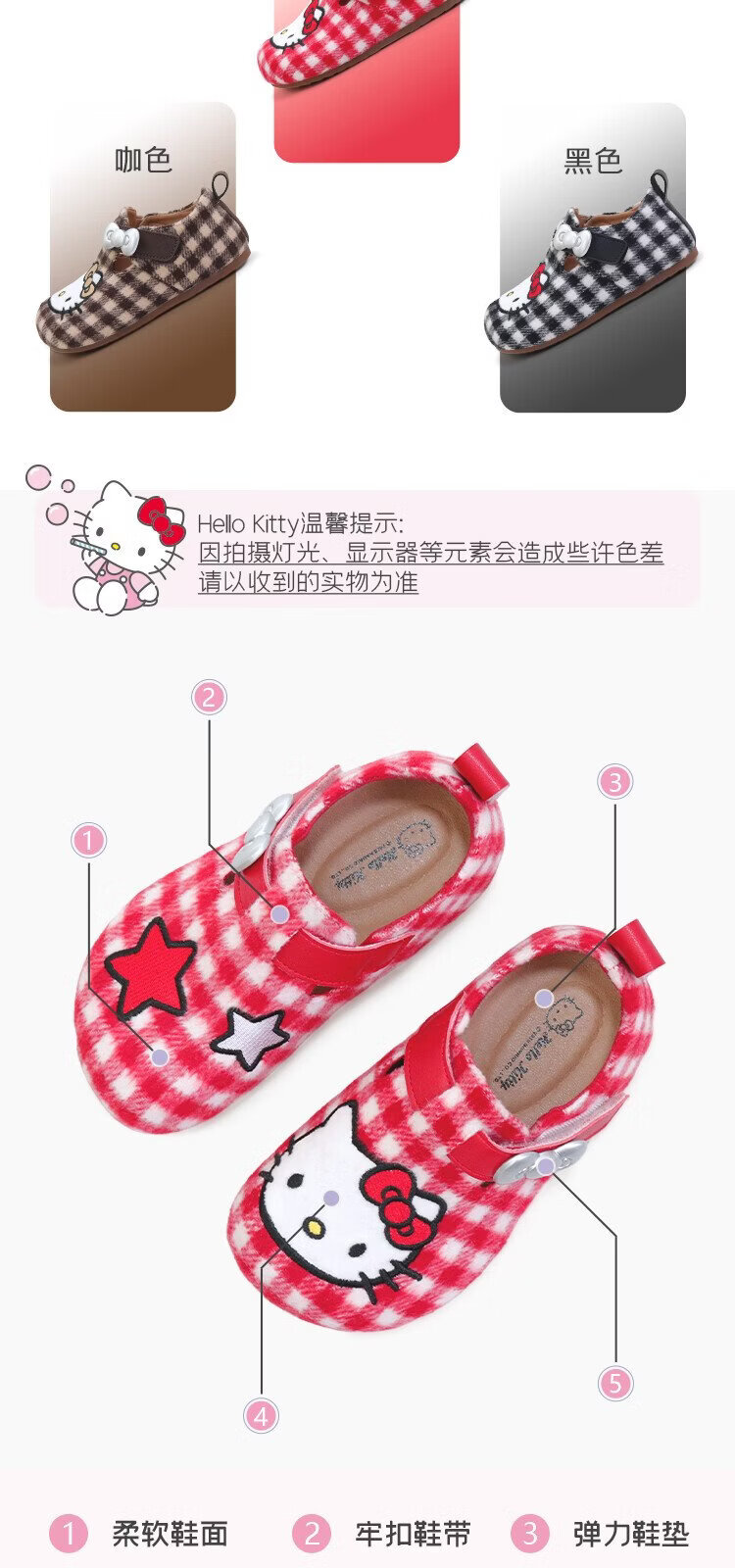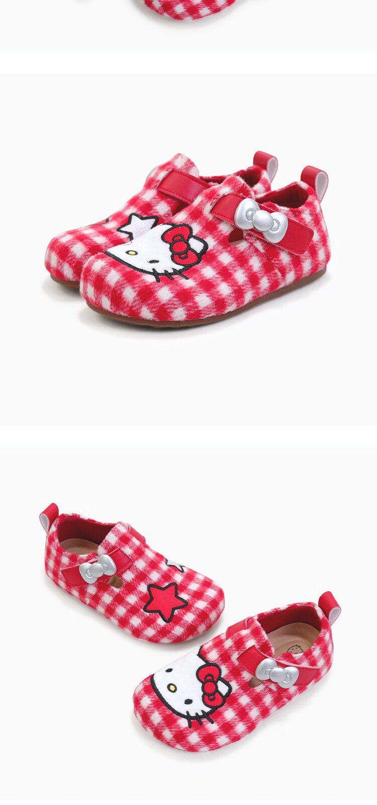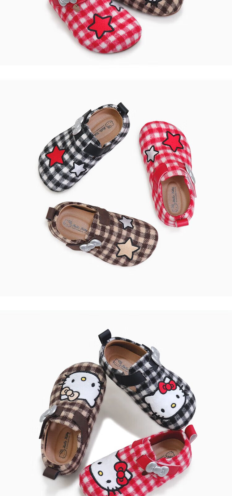 Hello Kitty children's shoes girls leather shoes girls children's fashion Birkenstock shoes princess plaid shoes 7100 black 24