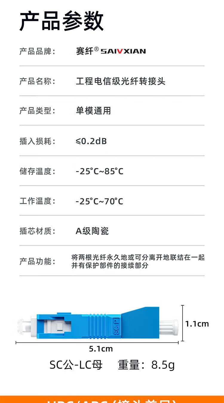 Sai Fiber Telecommunication Grade Fiber Adapter SC-LC Male and Female Fiber Coupler Round to Square Head Optical Power Red Light Pen Butt Connector