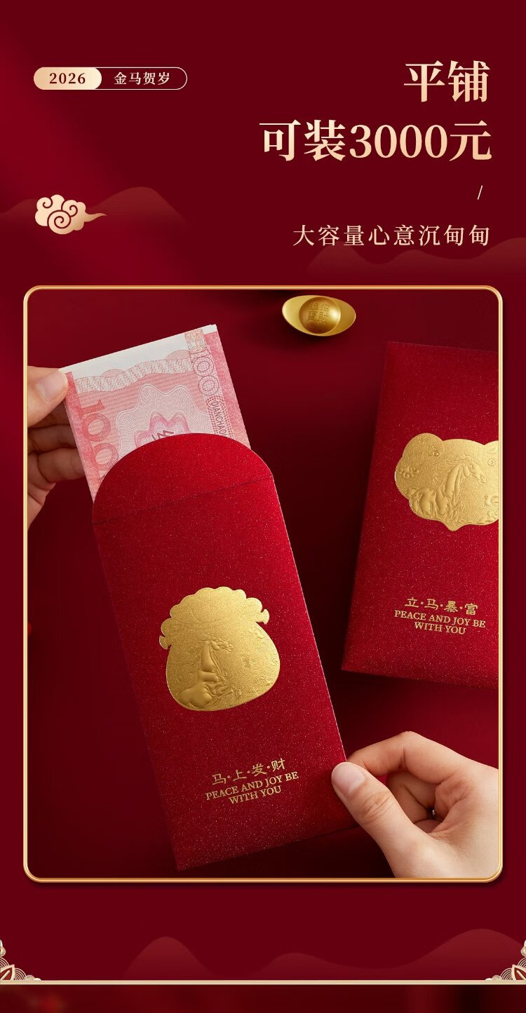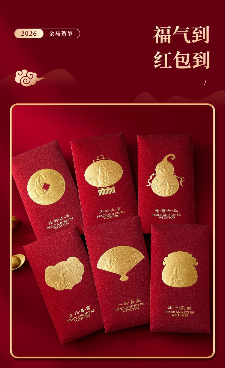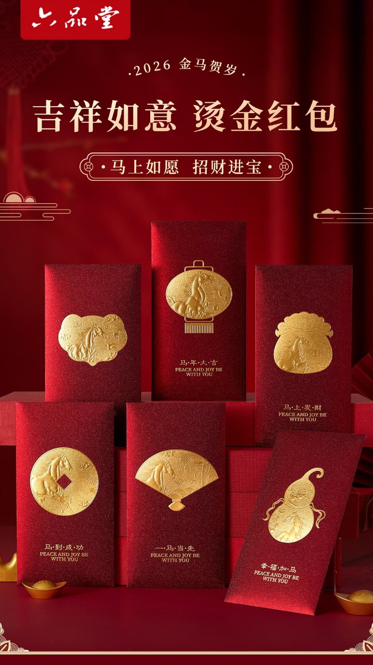 Liupintang 2026 new red envelope bag New Year's Eve personalized creative calligraphy universal red envelope for the Year of the Horse Spring Festival hot stamping high-end Fulu Koi 6 pieces