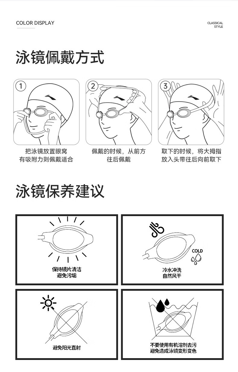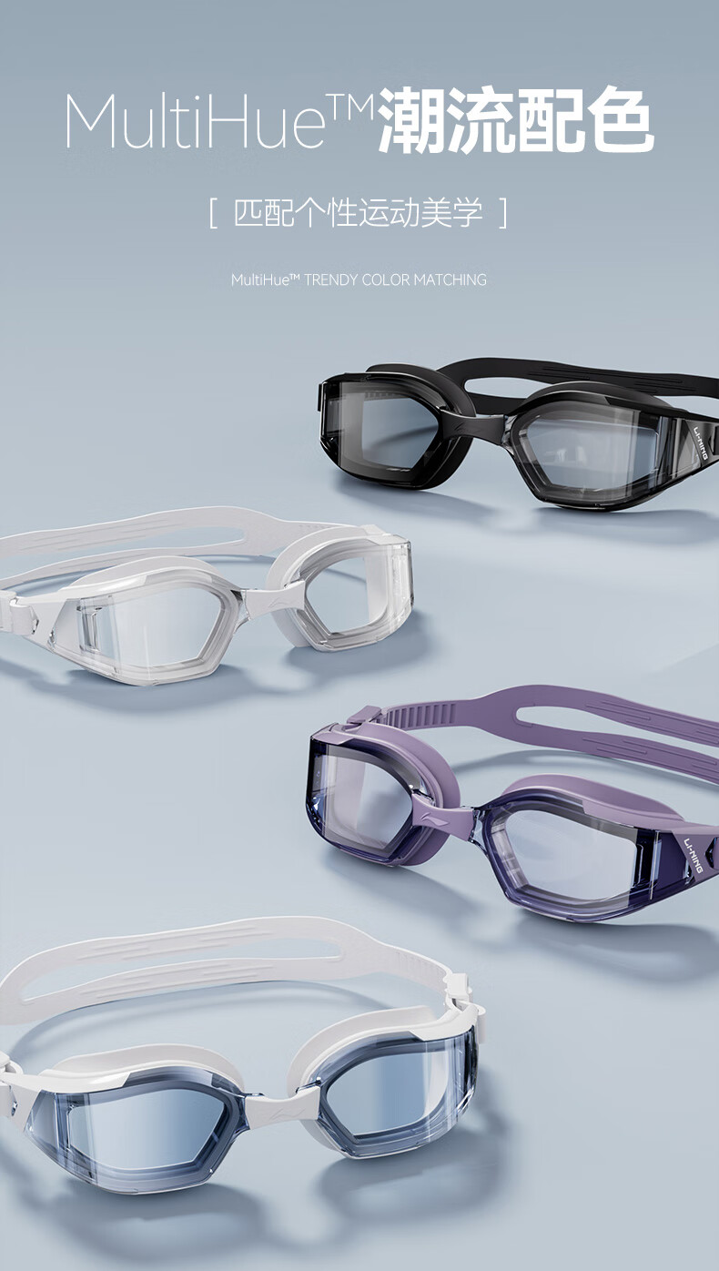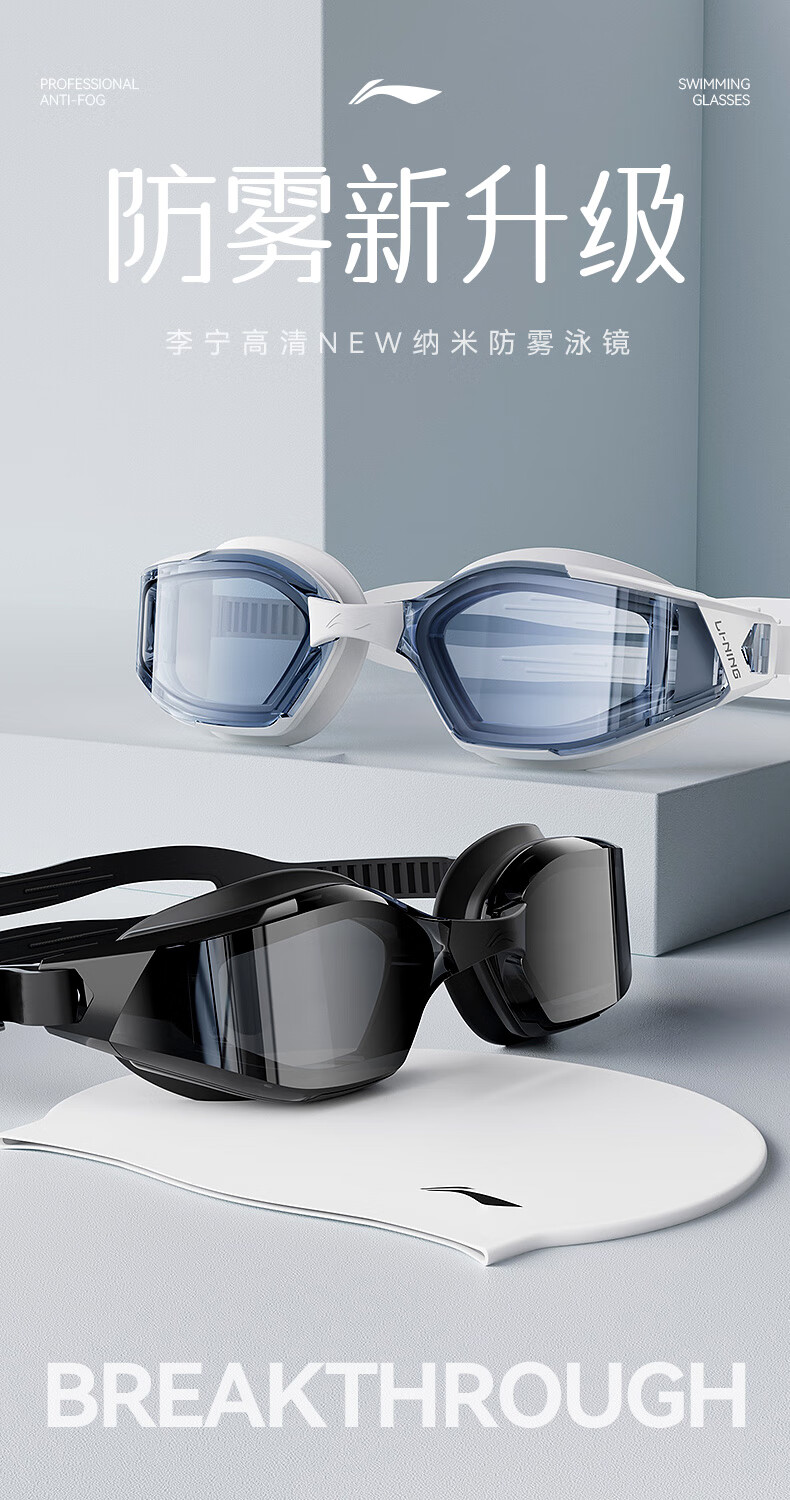 Li Ning (LI-NING) swimming goggles for men and women high-definition anti-fog swimming goggles professional high-end racing swimming goggles 2849 black