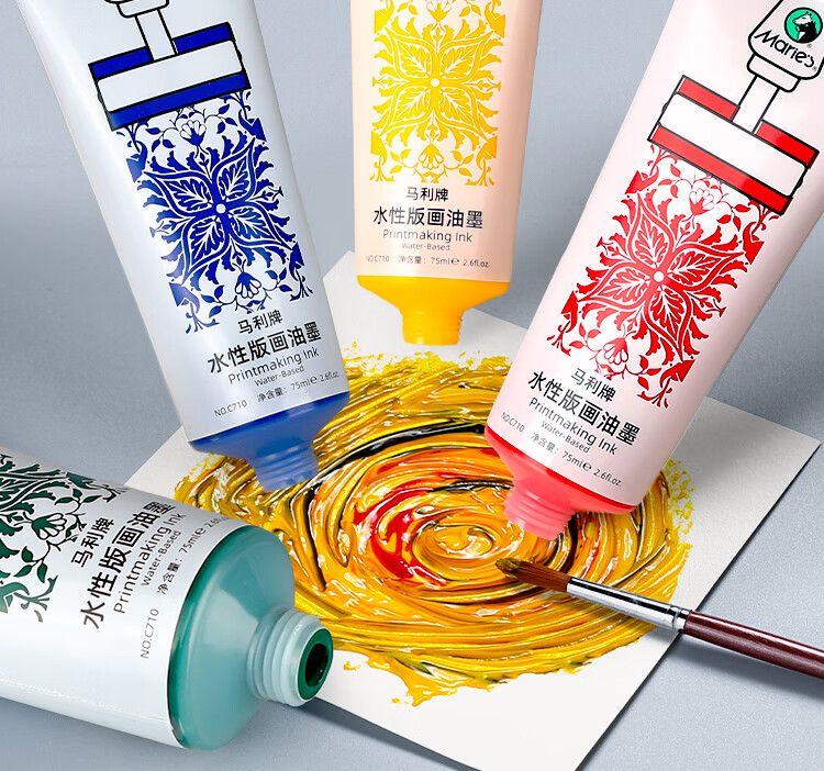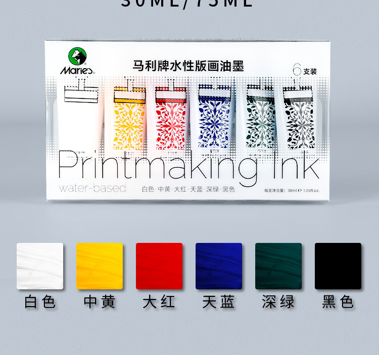 Marie s printmaking ink pigment 6 pack 30ml with tool water-based rubbing color 75ml printing material offset plate engraving embossed art special aesthetic education tool