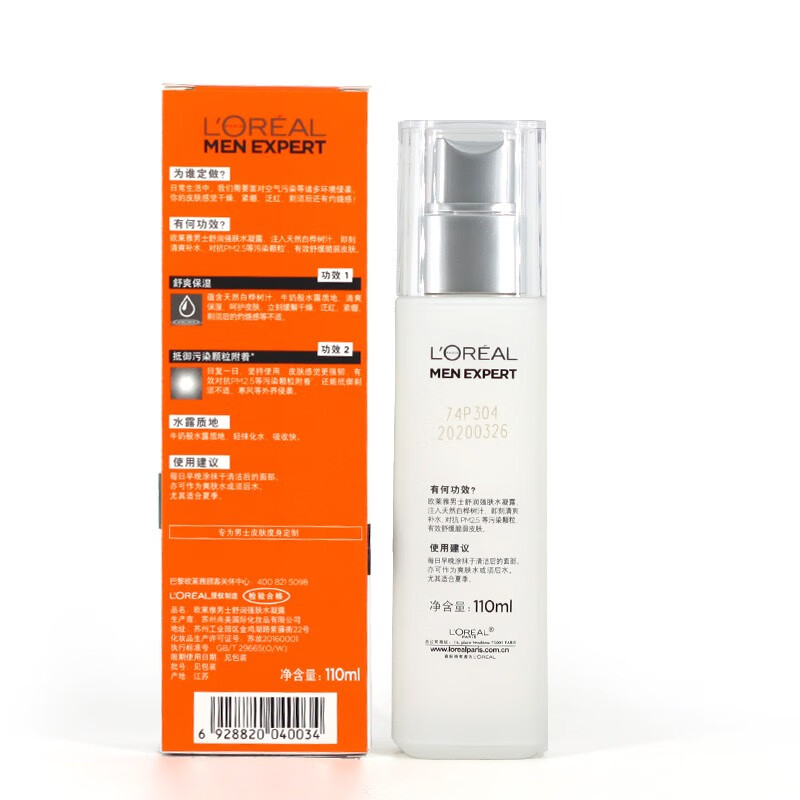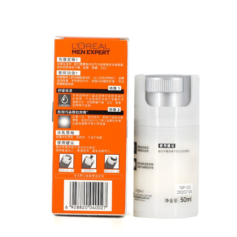 L'Oreal Men's Lotion Face Cream Refreshing, Moisturizing, Oil Controlling, Clearing Acne, Fading Acne Marks, Refreshing and Strengthening Lotion, Moisturizing and Moisturizing Water Energy Moisturizing Lotion 50ml