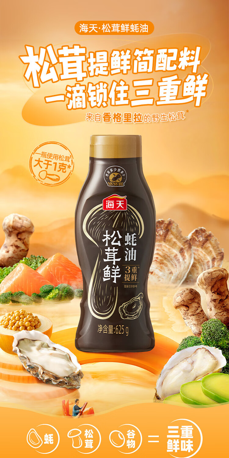 Haitian Oyster Sauce 625g, Matsutake Freshness Enhancement, Squeeze Packing, Triple Freshness Enhancement Technology, Dipping Seasoning