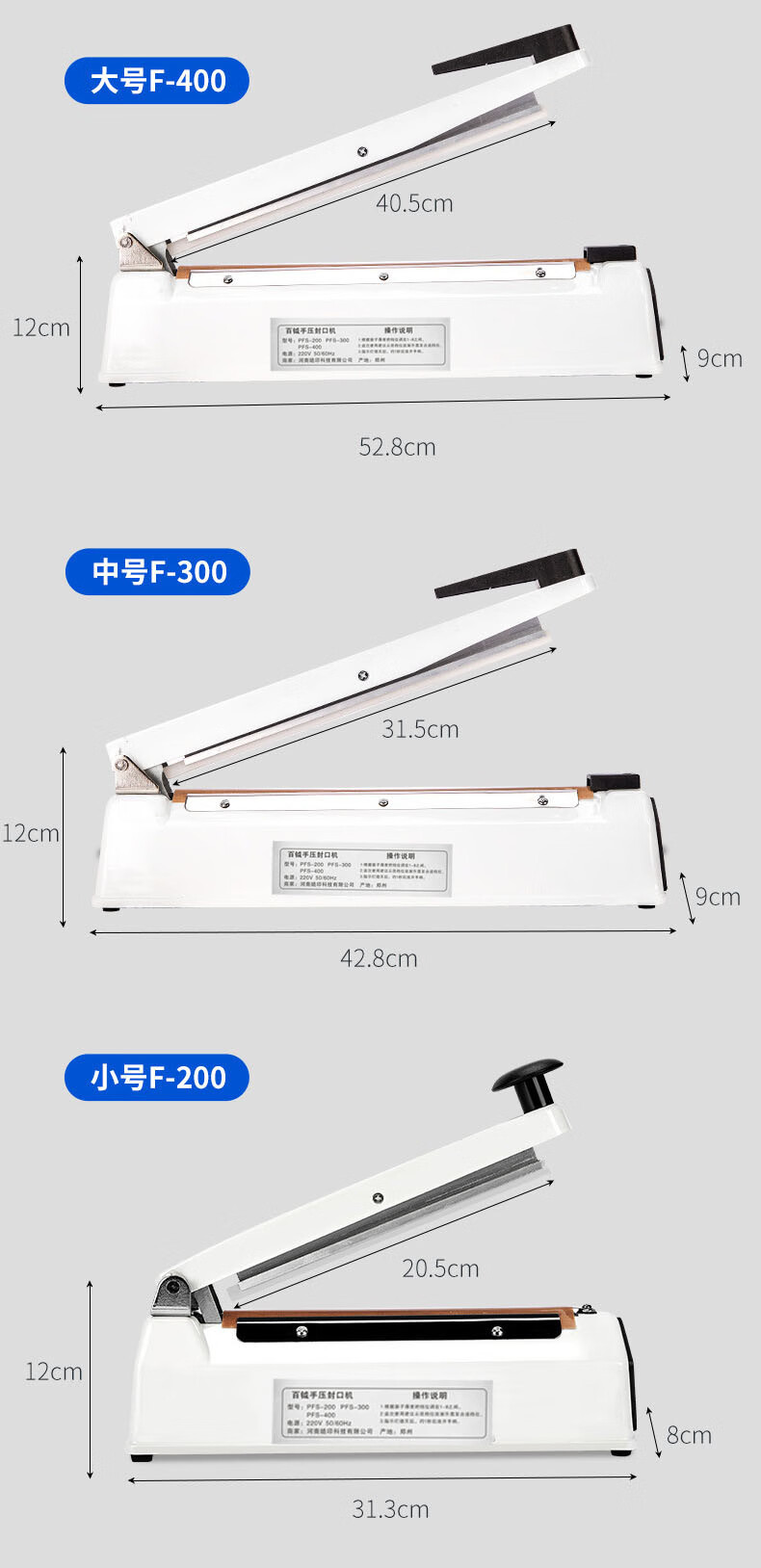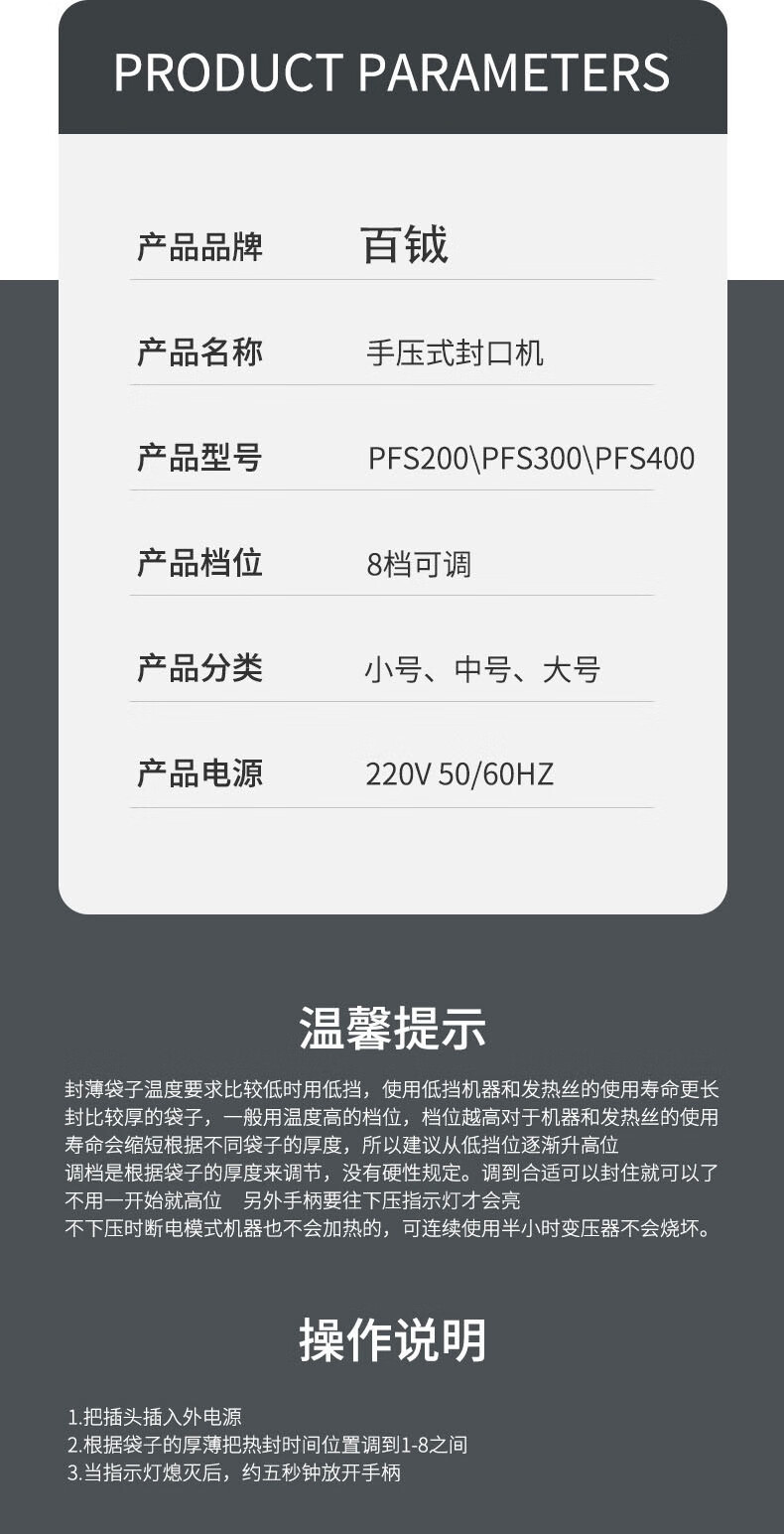 Baiyue hand pressure sealing machine plastic sealing machine 40CM heat sealing machine metal body commercial packaging machine aluminum foil bag food small tea moon cake film PFS-400