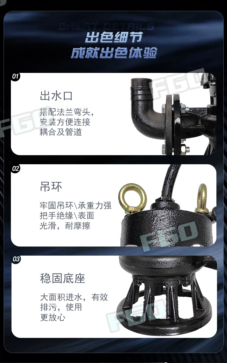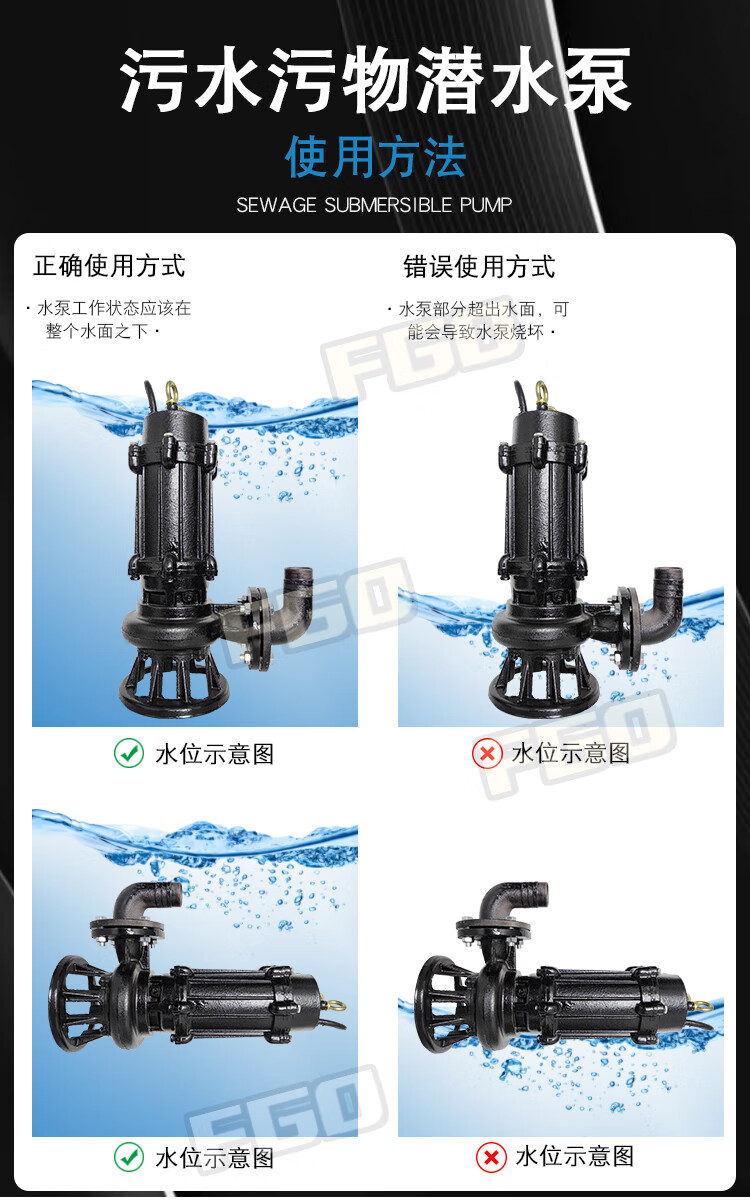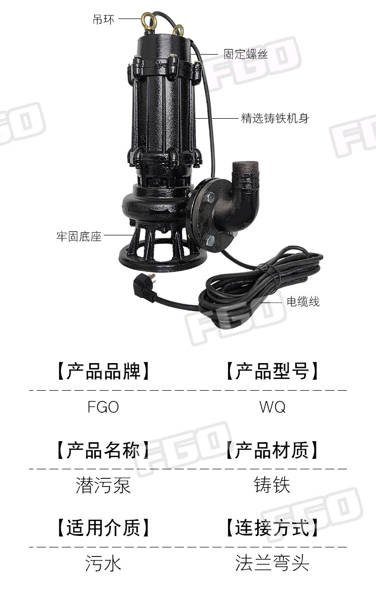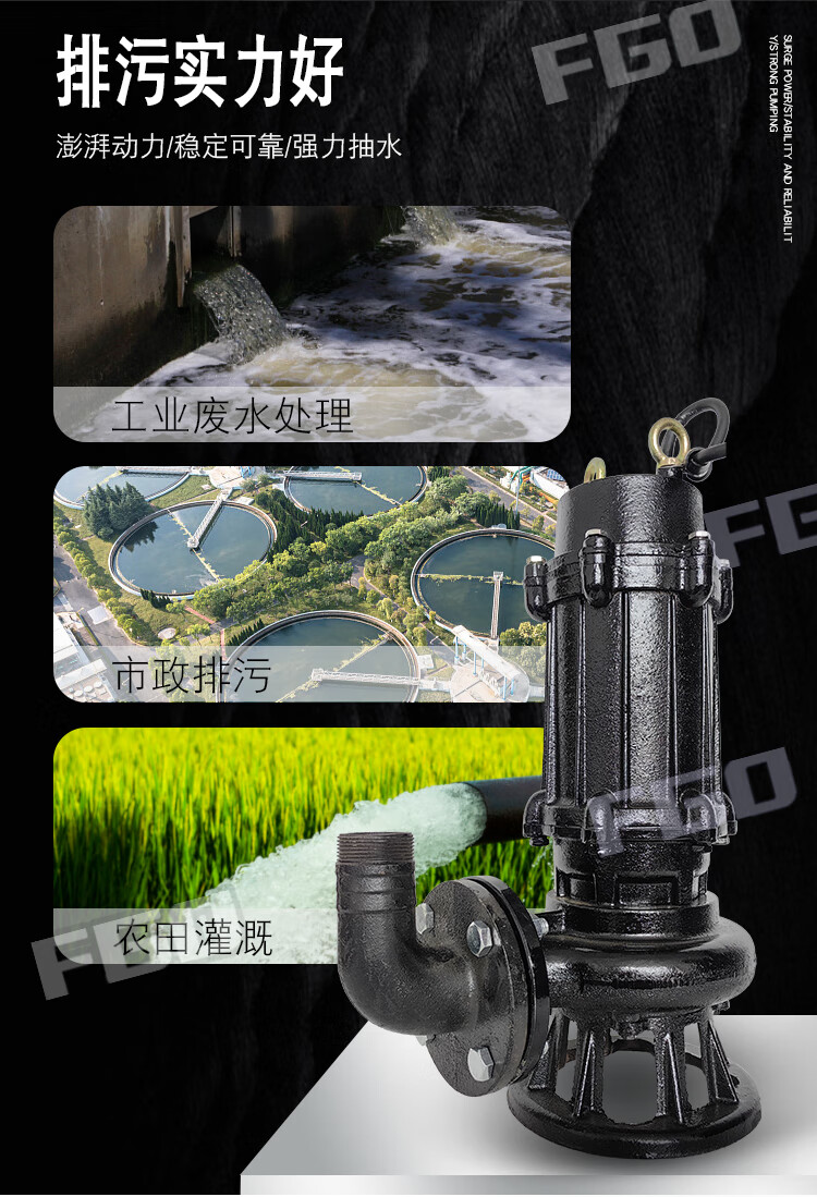 FGO flood control submersible sewage pump submersible sewage pump 380V 80WQ40-10-2.2kw