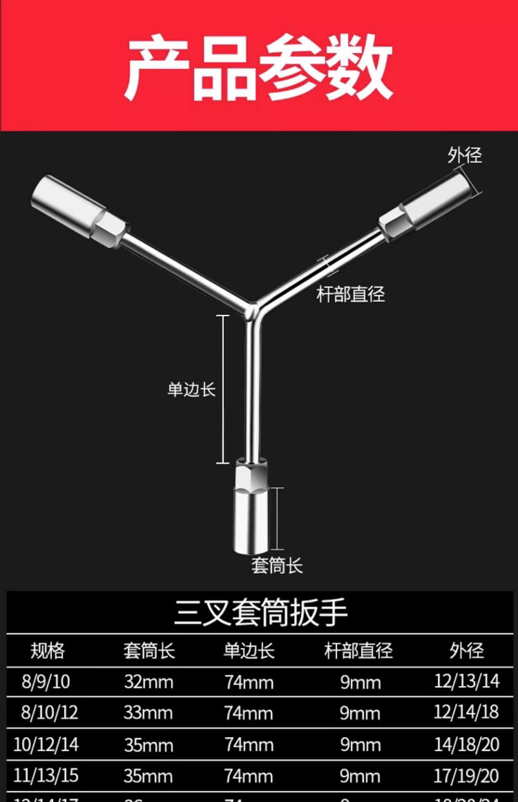 Factory No. 1 three-prong socket wrench 14*17*19 extended Y-type multi-purpose motorcycle triangle hand tool set