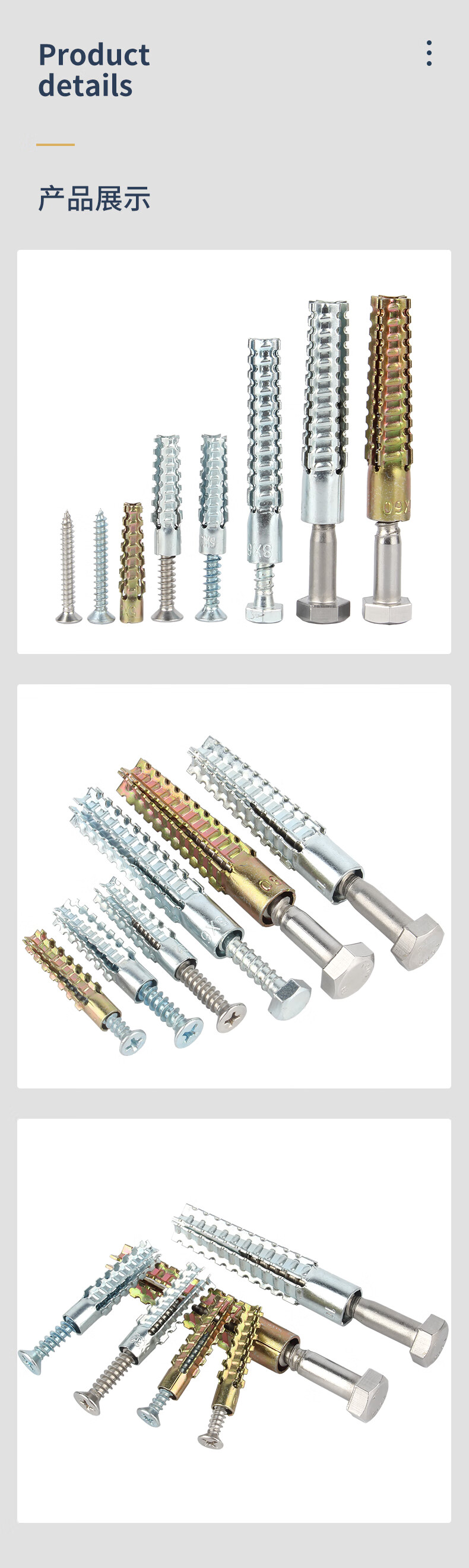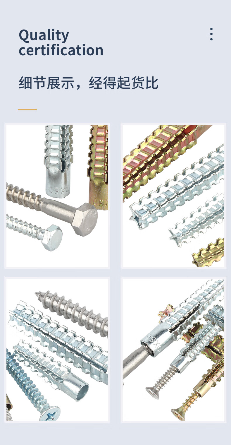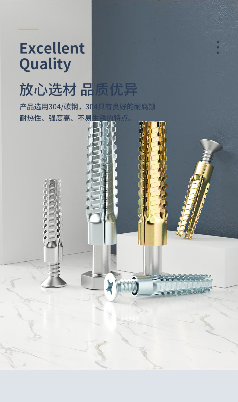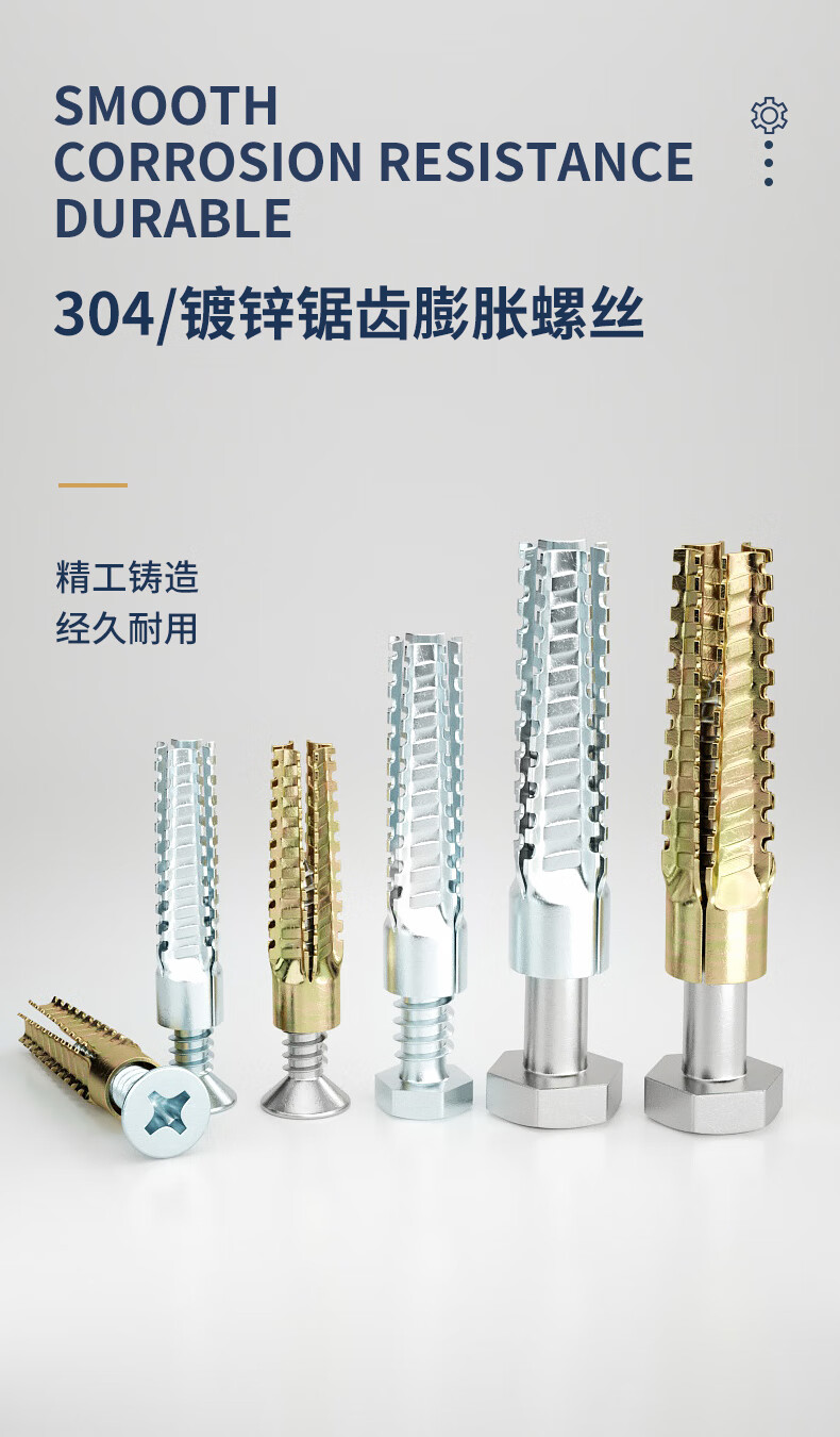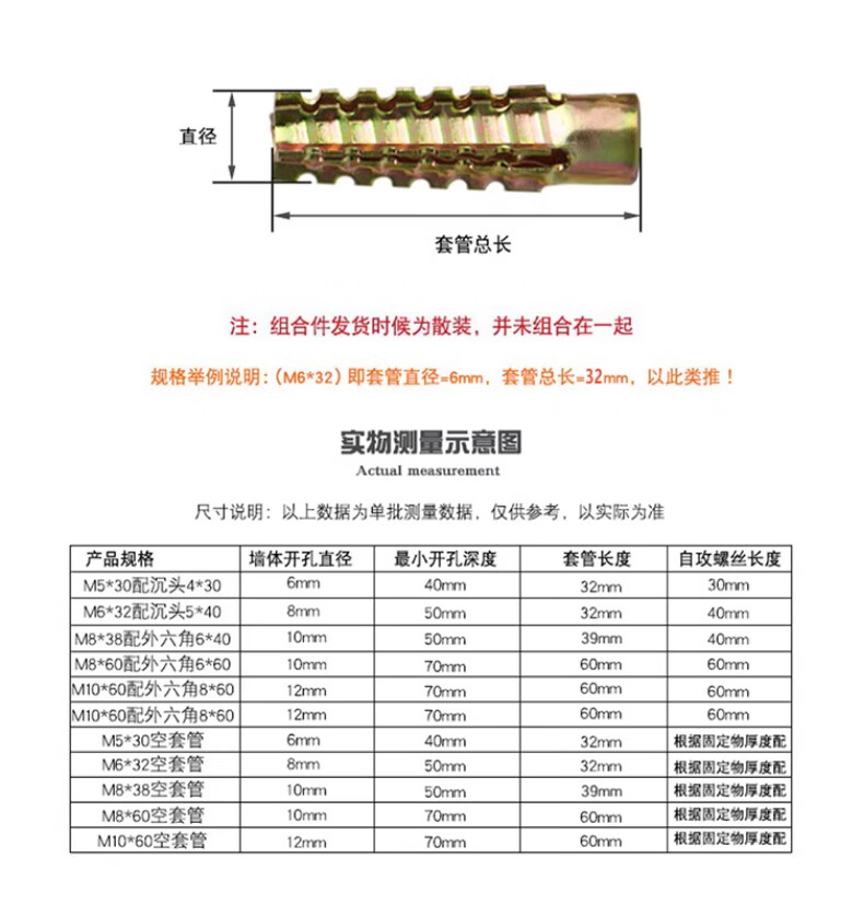 GUWANJI serrated expansion screws, gecko expansion self-tapping screws, anti-loosening metal expansion tubes, M6x32, 40 sets/pack, color zinc pipe + 304 cross