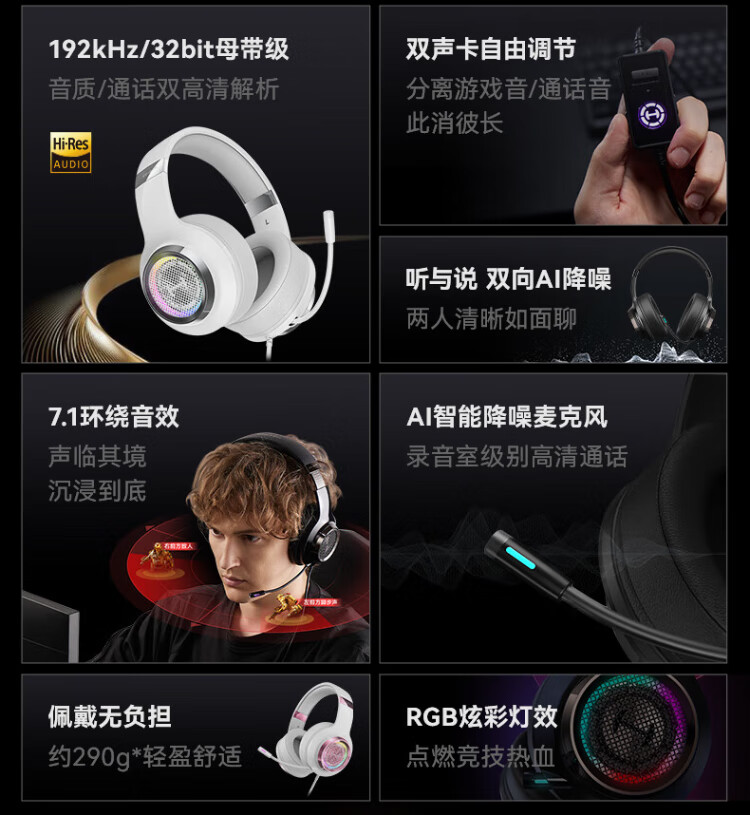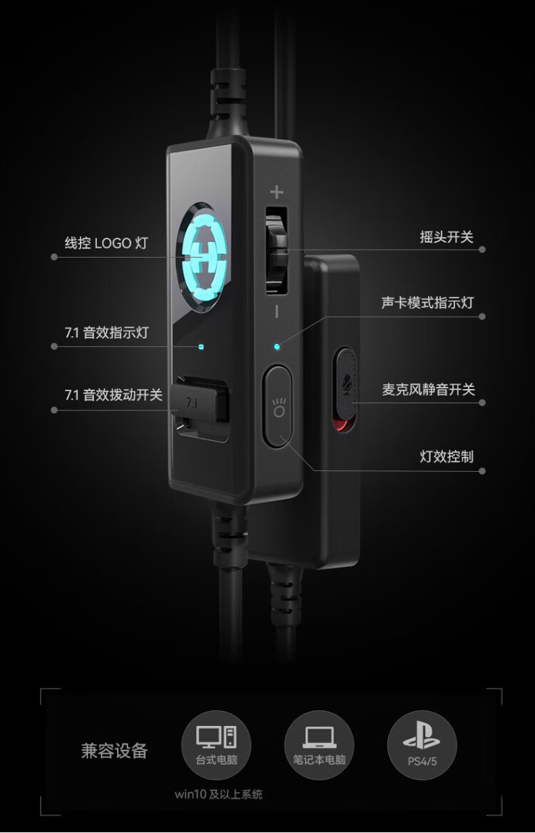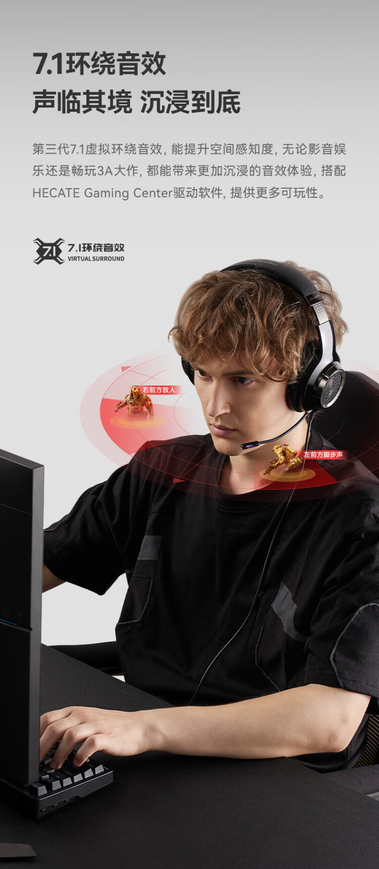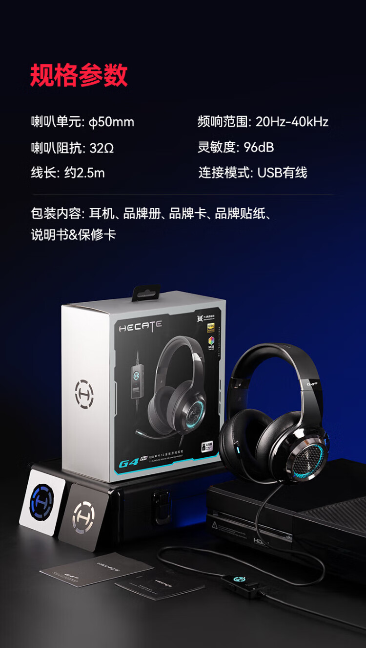 Edifier (EDIFIER) HECATE G4pro wired version head-mounted gaming headset USB7.1 channel wired computer fps headset noise reduction microphone cool black