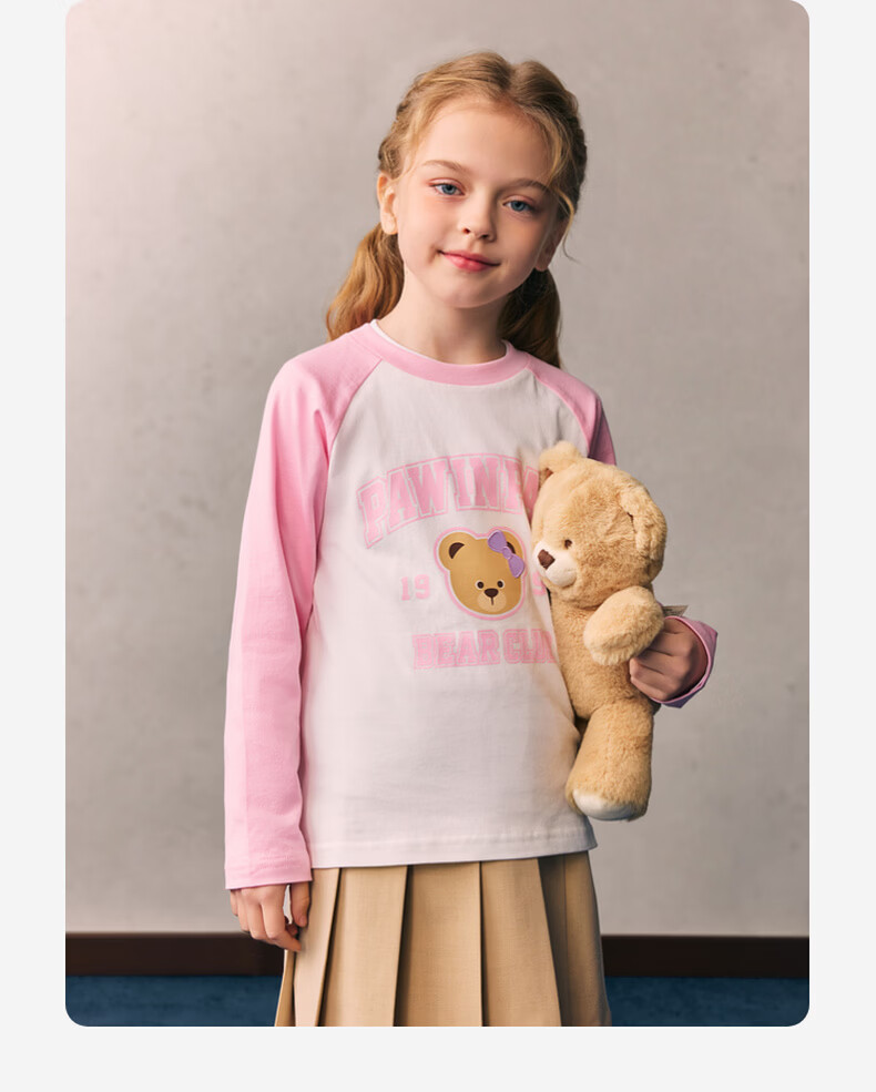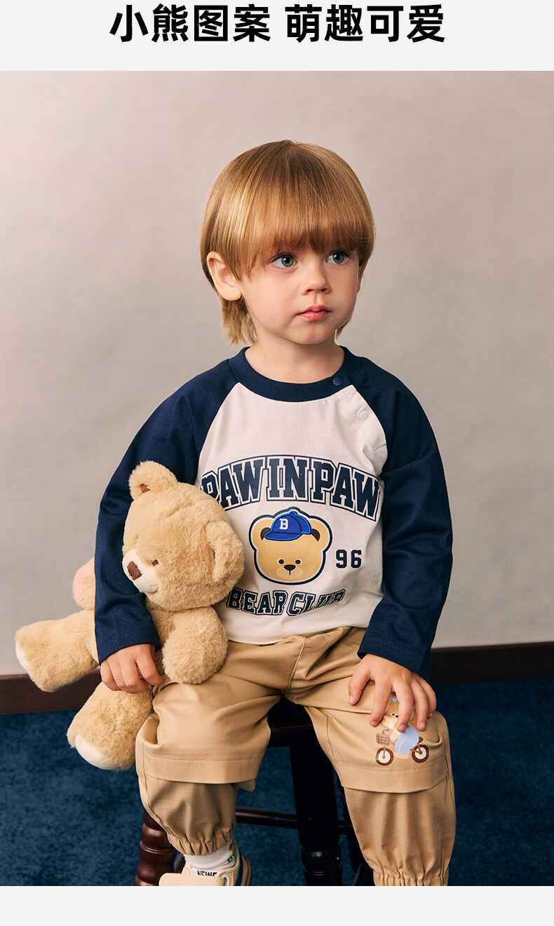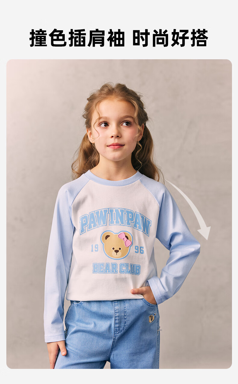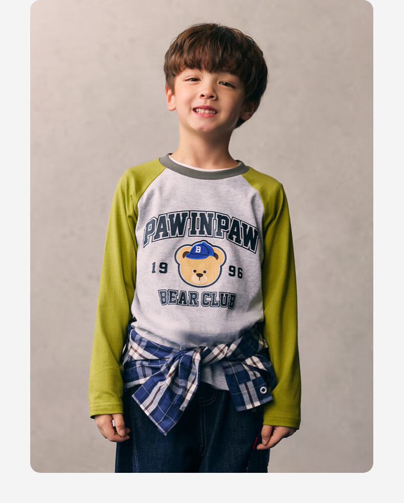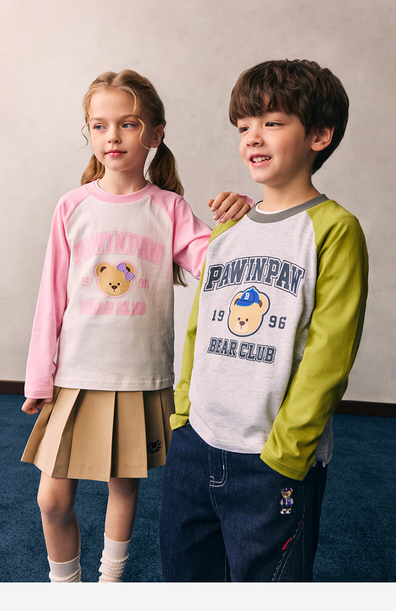 PawinPaw cartoon bear children's clothing 26 spring and summer new style for boys and girls round neck raglan sleeve T-shirt loose