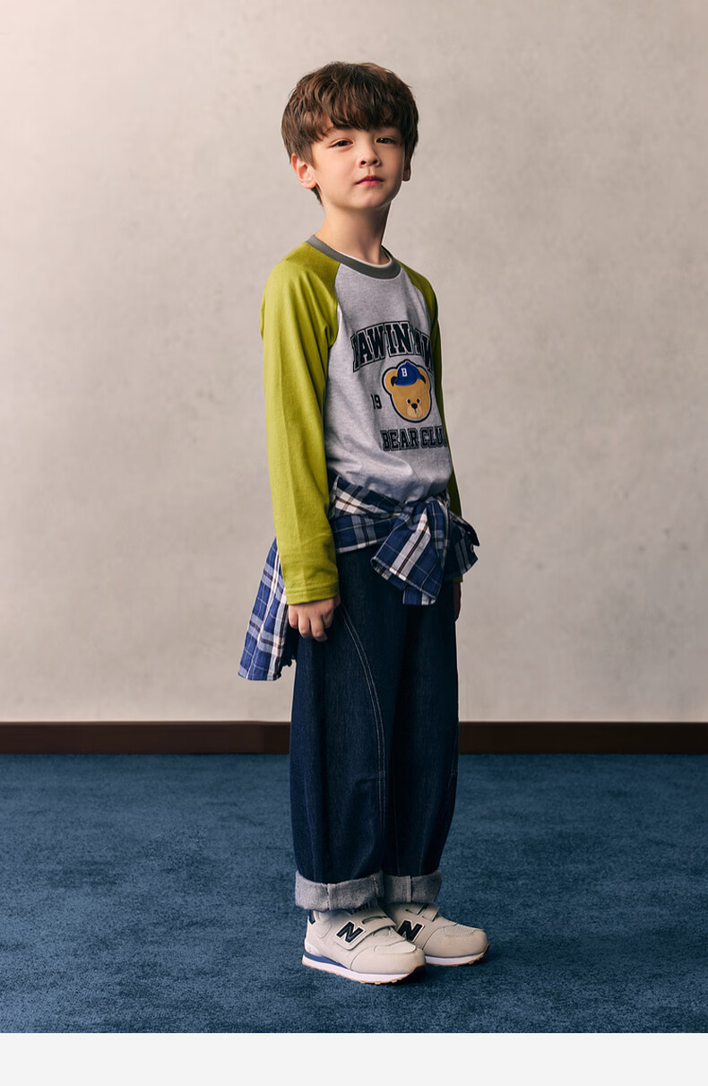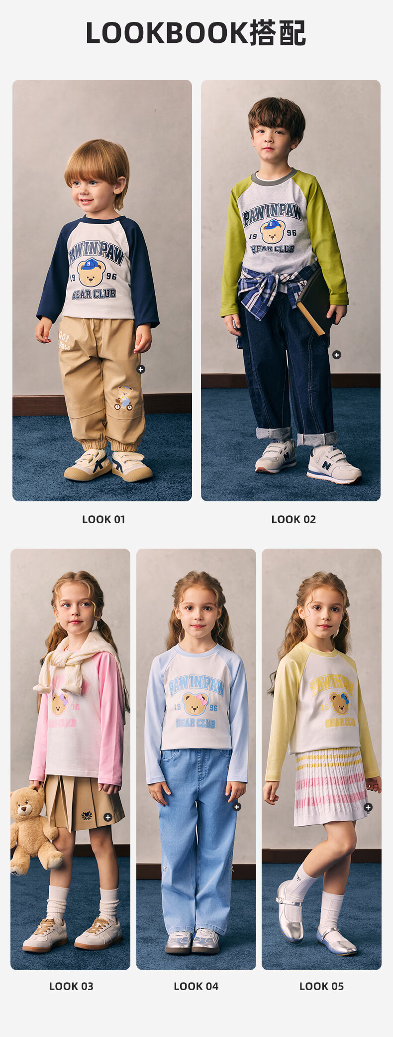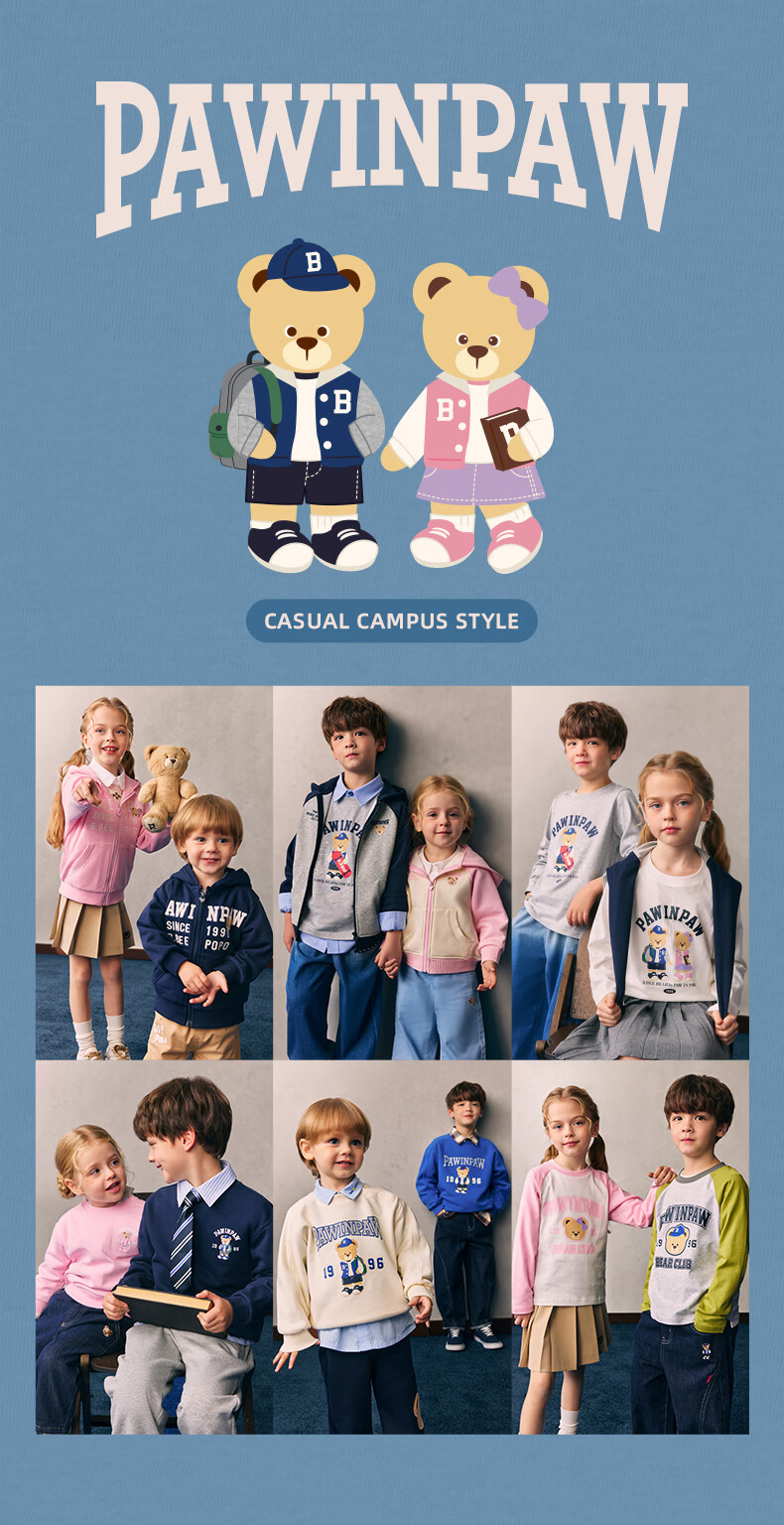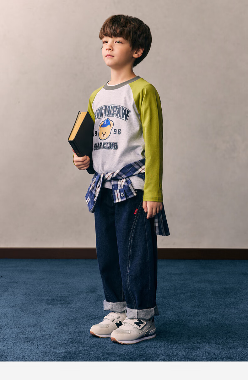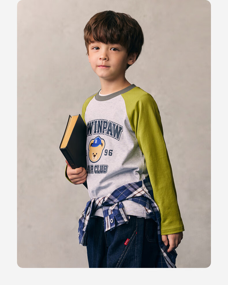 PawinPaw cartoon bear children's clothing 26 spring and summer new style for boys and girls round neck raglan sleeve T-shirt loose