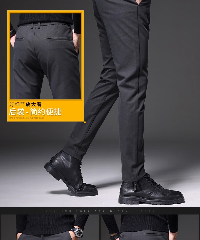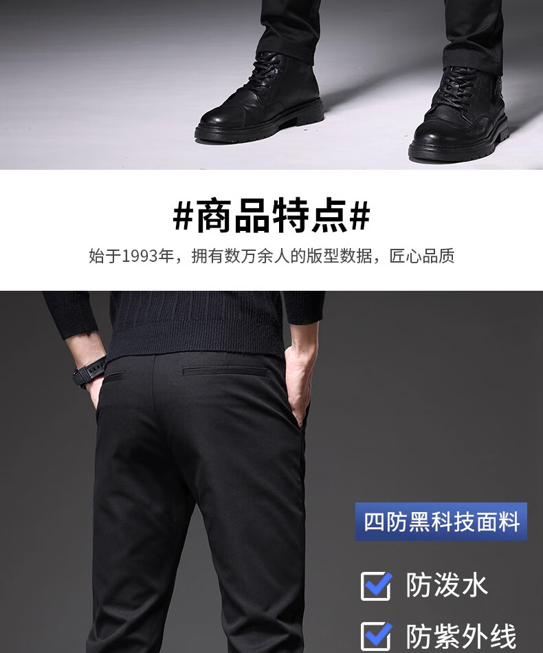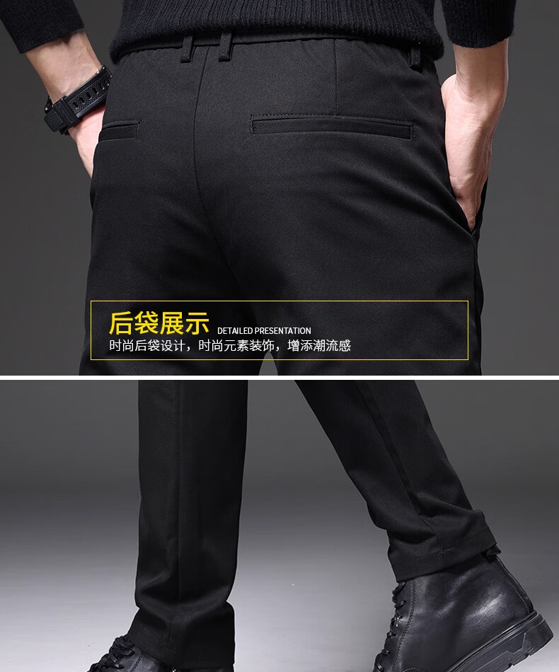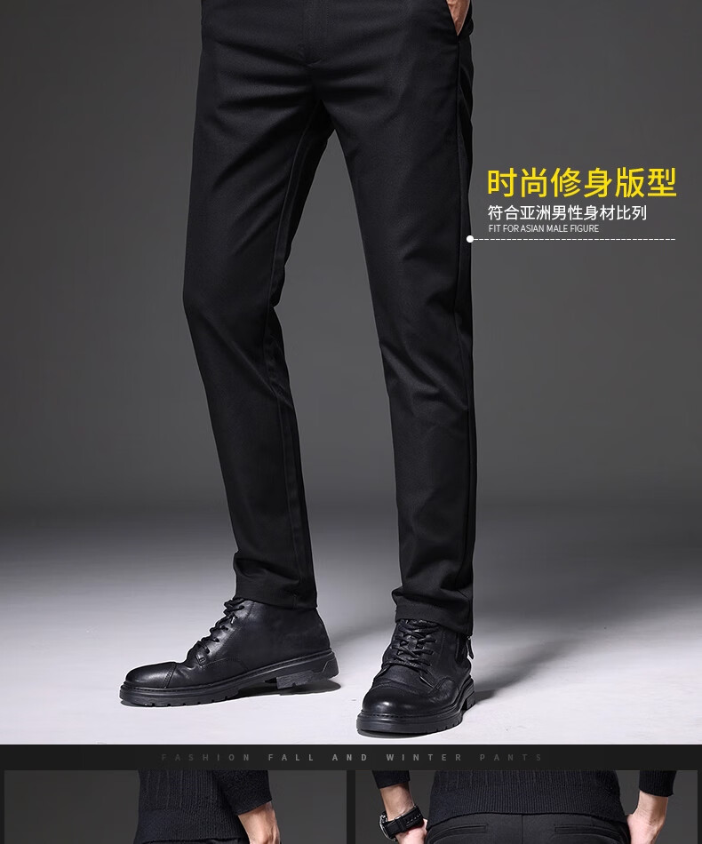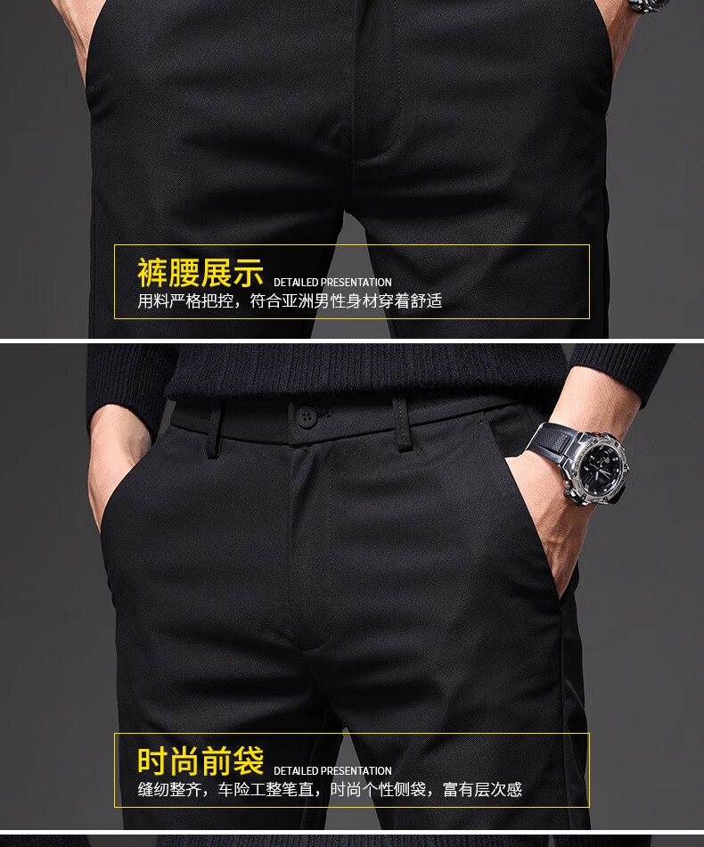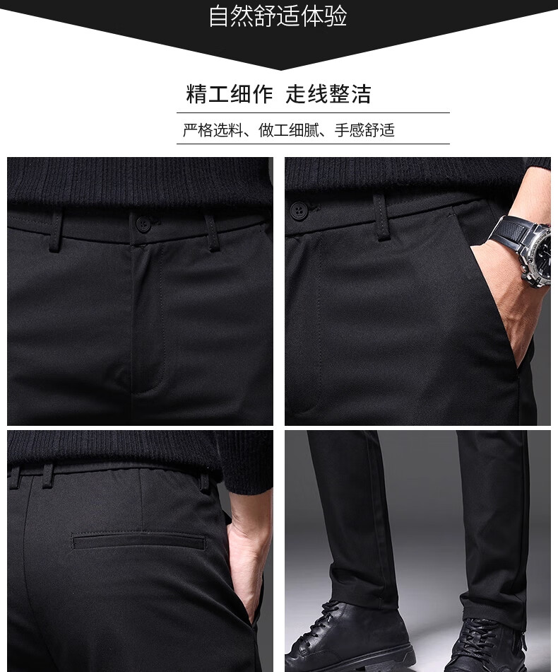 Romon four-way stretch casual pants for men anti-wrinkle slim straight business spring and summer pants for men black regular 33