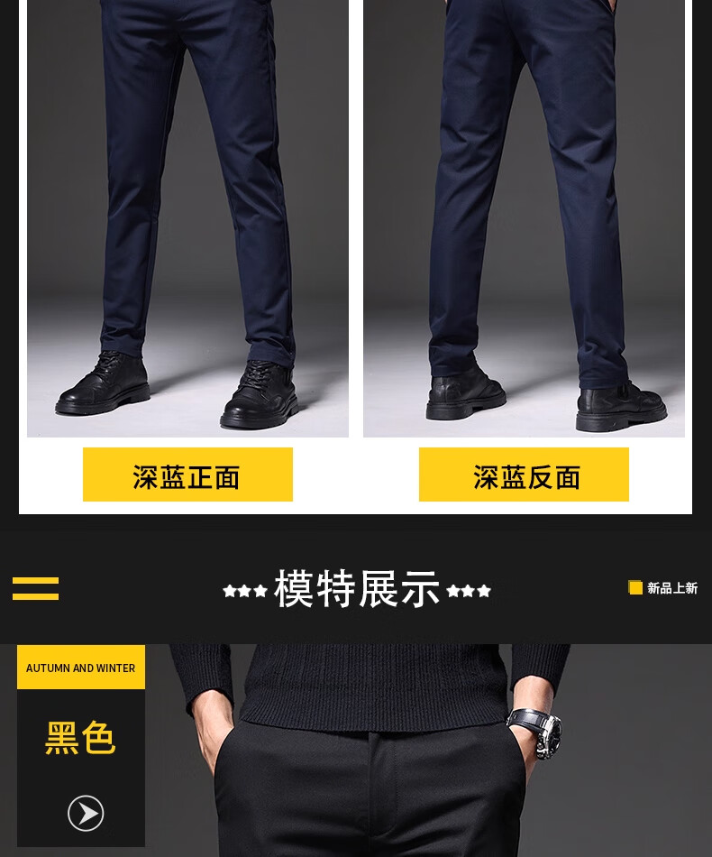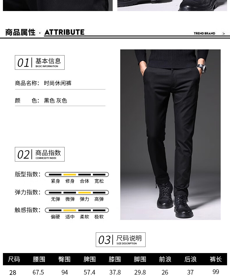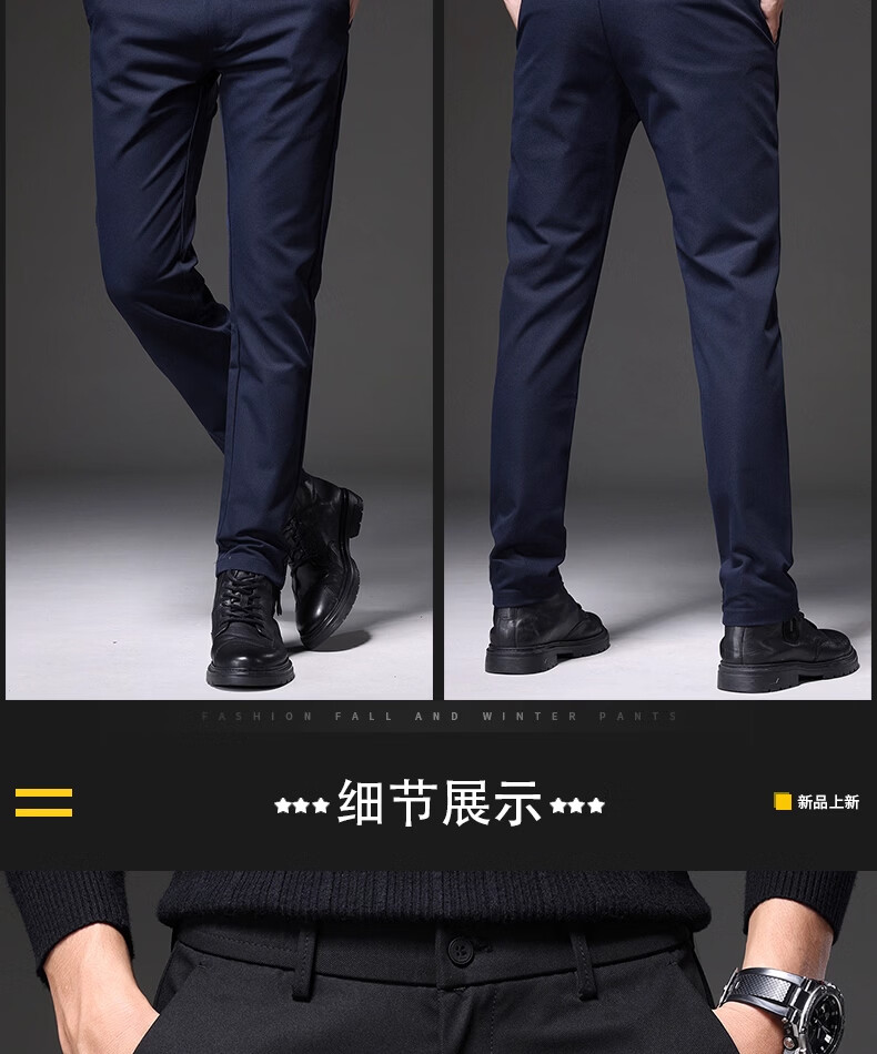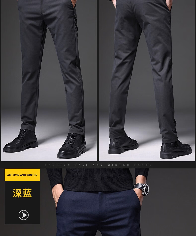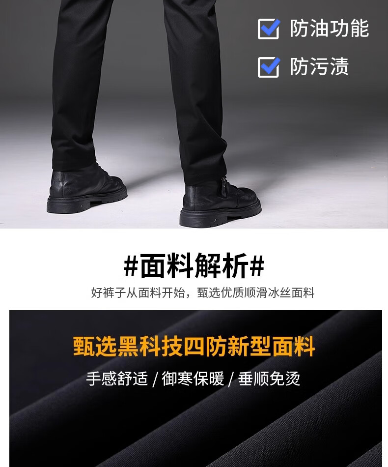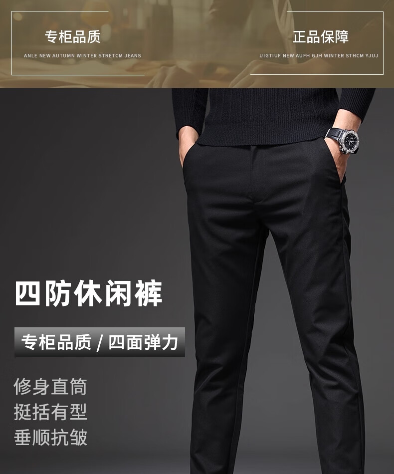 Romon four-way stretch casual pants for men anti-wrinkle slim straight business spring and summer pants for men black regular 33