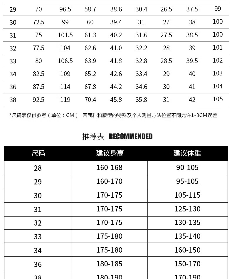 USA(inch) 28-30 30-32 32-34 34-38 38-42