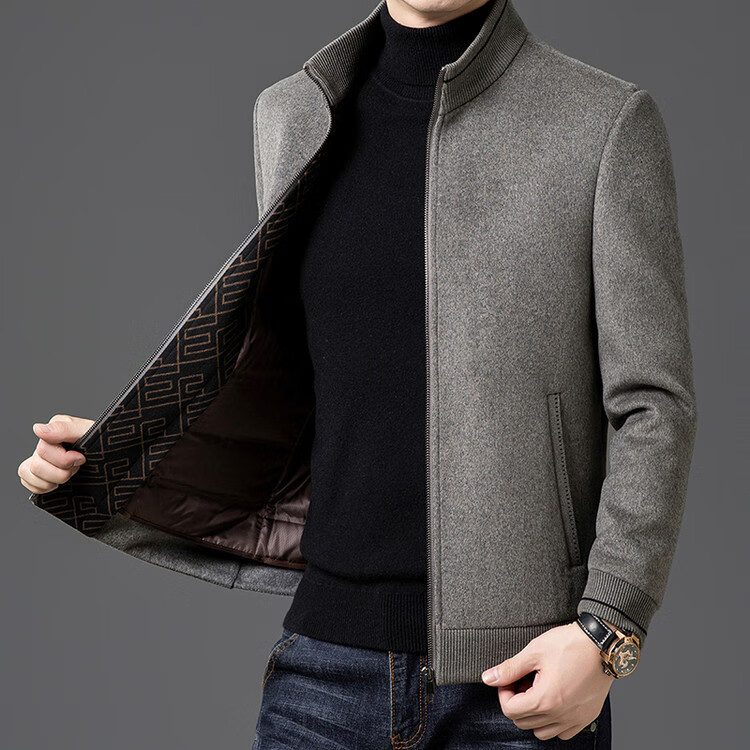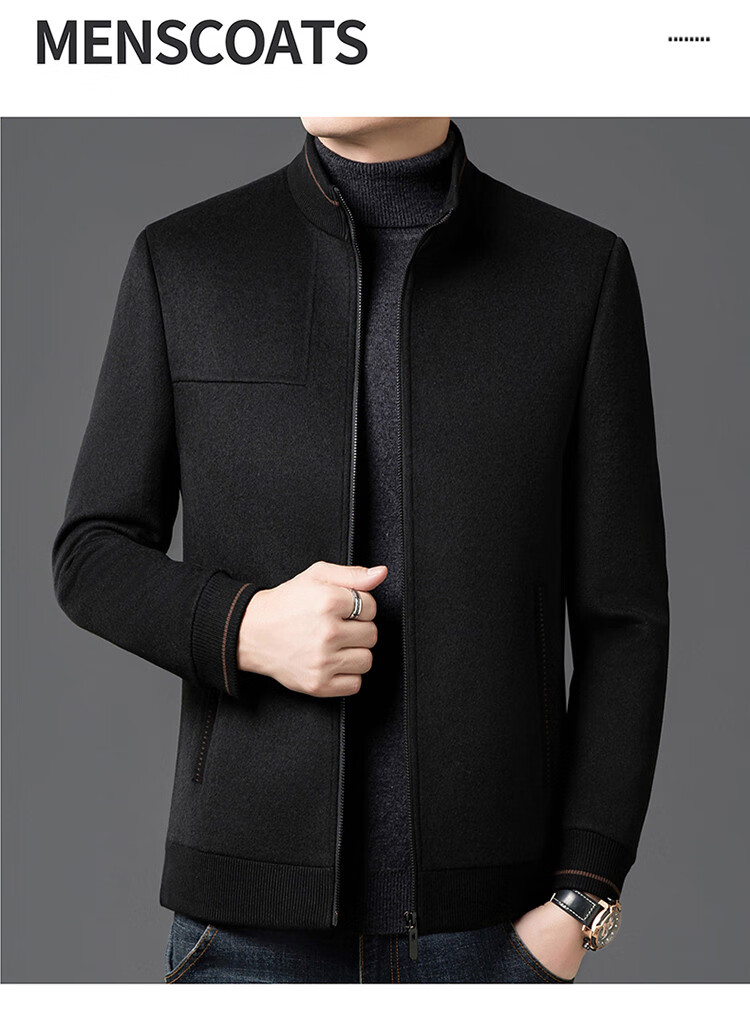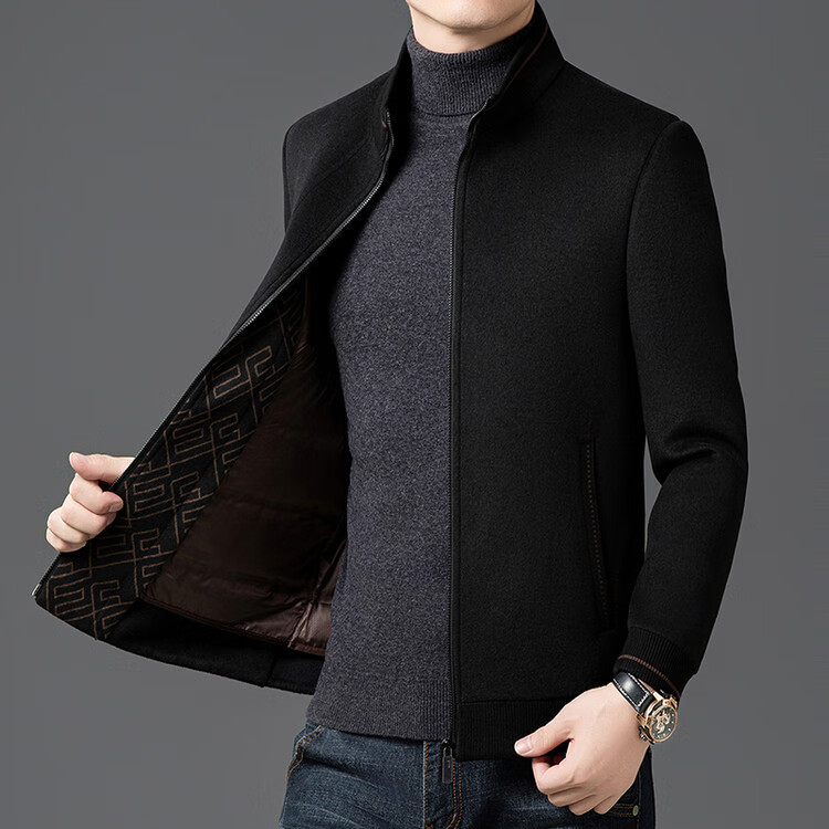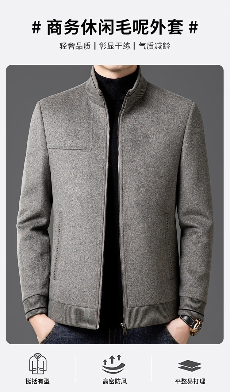 Hengyuanxiang men's wool double-sided wool short stand-collar jacket autumn and winter new high-end business dad middle-aged jacket