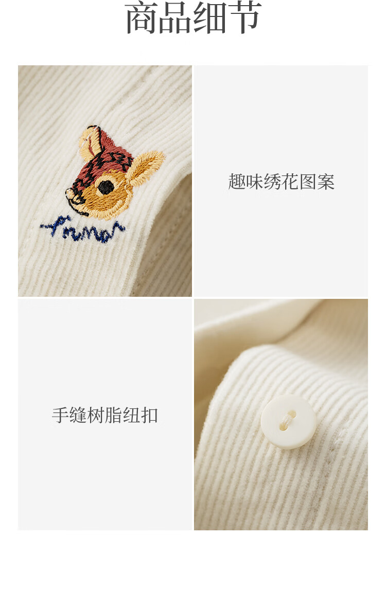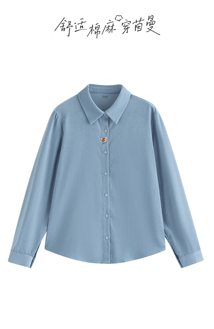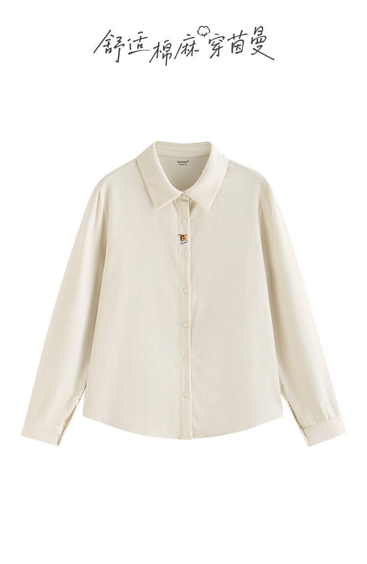 Inman Simple Commuting Long Sleeve Shirt Women's 2025 Autumn Embroidered Casual Corduroy Layer Shirt Beige M
